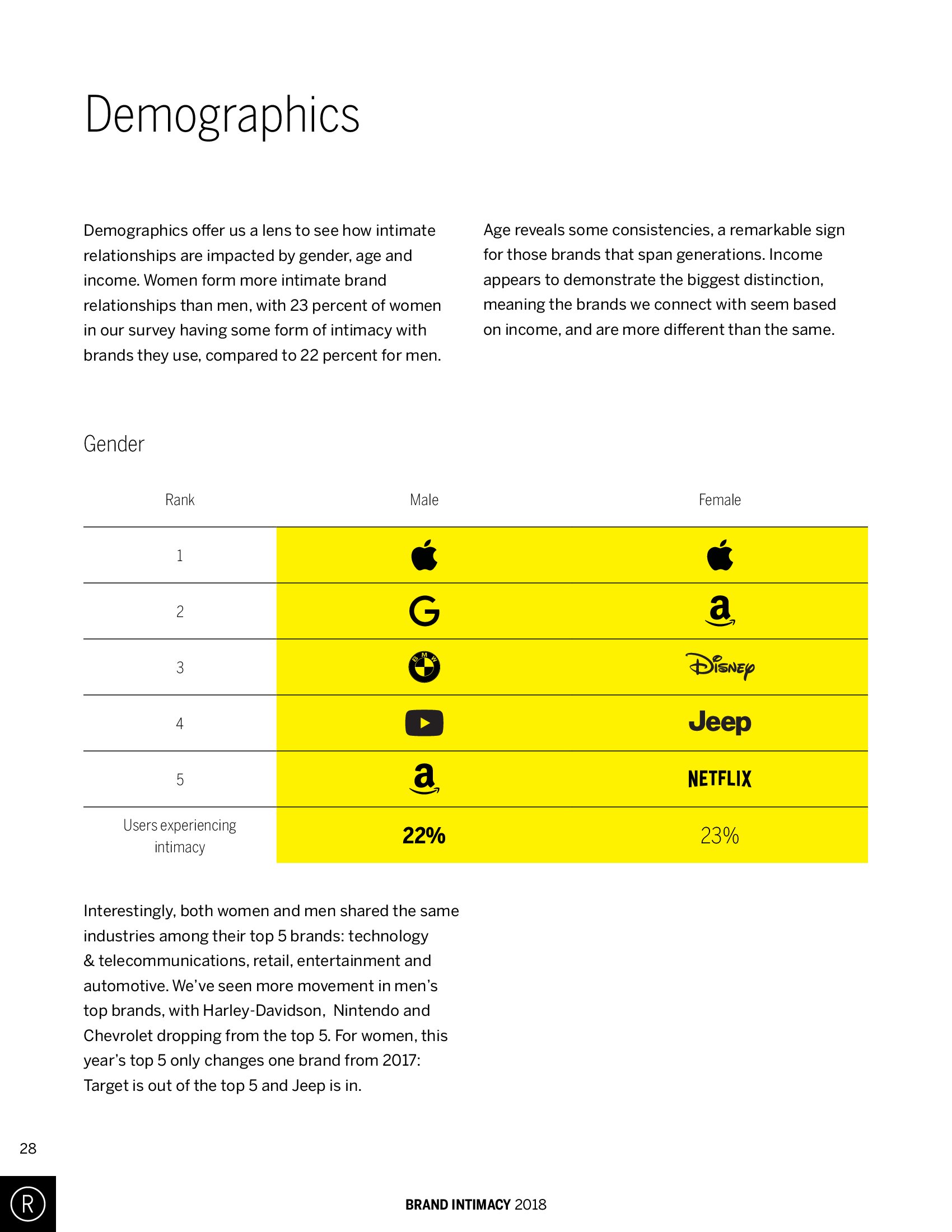 事实上,苹果不仅是整体排名最高的品牌,它在各个收入群体,以及男性和女性中的排名也是最高的。