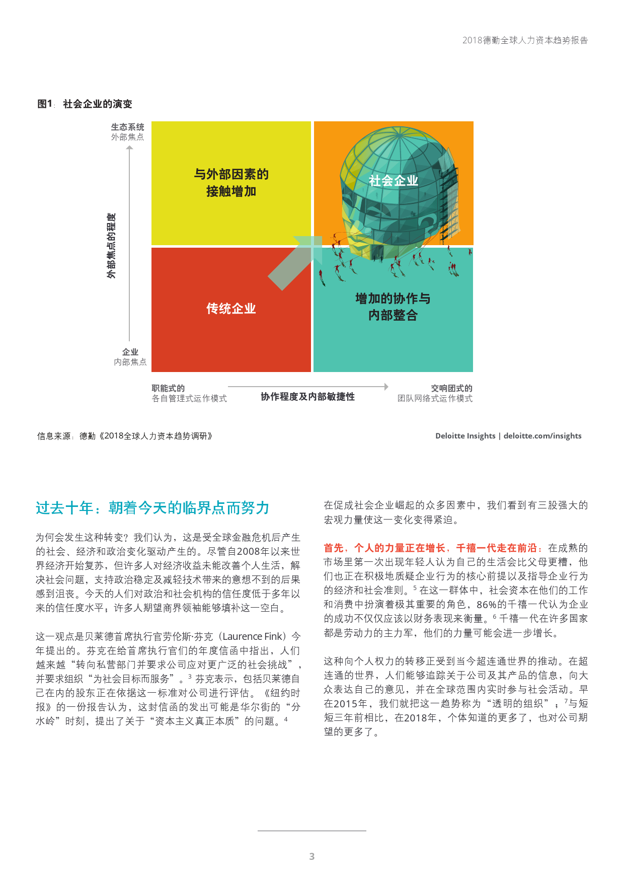 超过11,000名全球的商业领袖和人力资源领导者参与了今年的德勤人力资本趋势调查。他们的意见表明了对企业加强其在社会上扮演的变革驱动者的角色的势不可挡的需求。