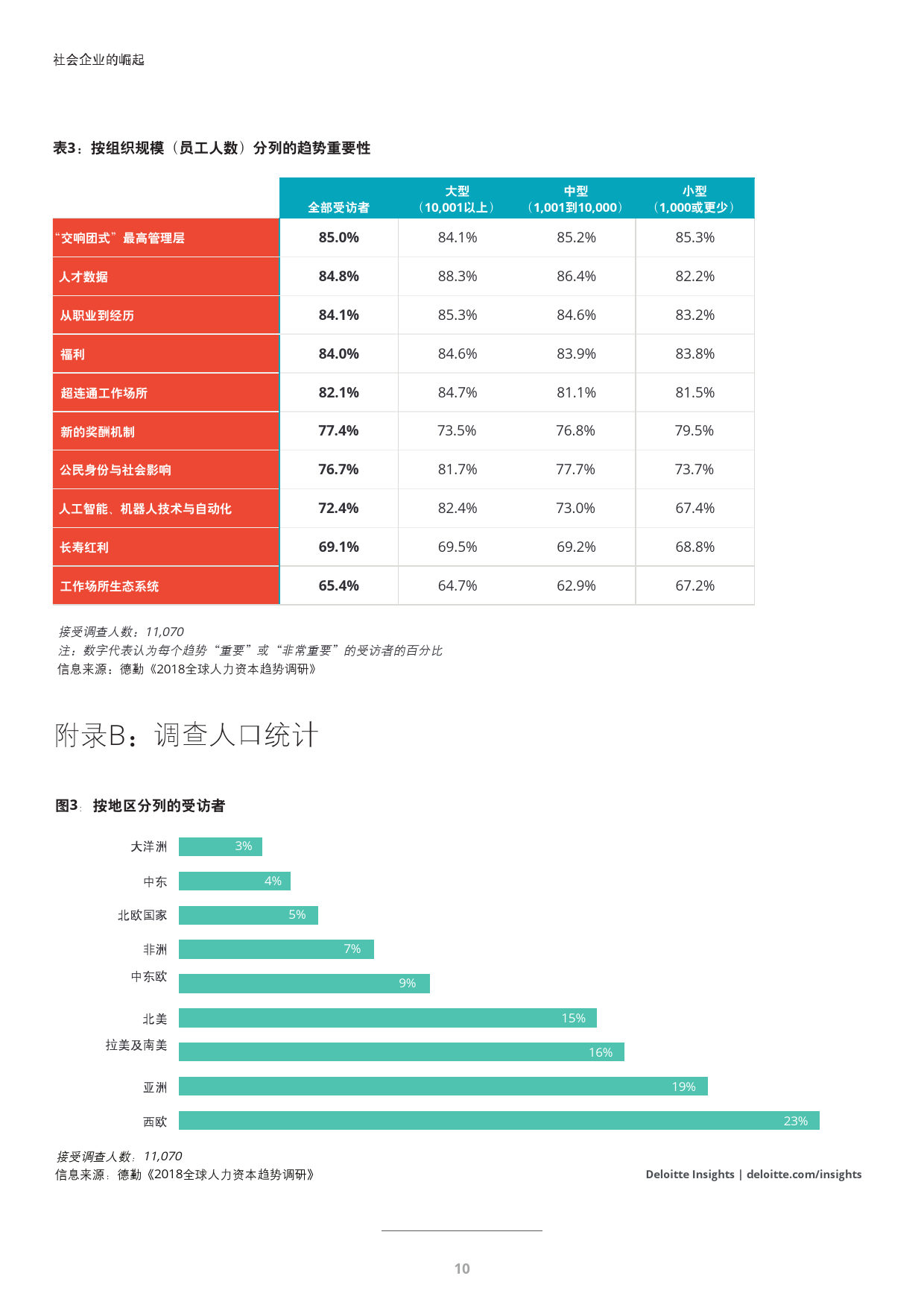 本年度全球人力资本趋势调研共有超过11,000名人力资源从业人员和企业领导参与,也是同类调查中规模最大的一次。今年报告围绕“社会企业的崛起”这一主题,探讨个人期望的提升与科技迅速发展正如何改变企业在人力资本方面的关注重点。