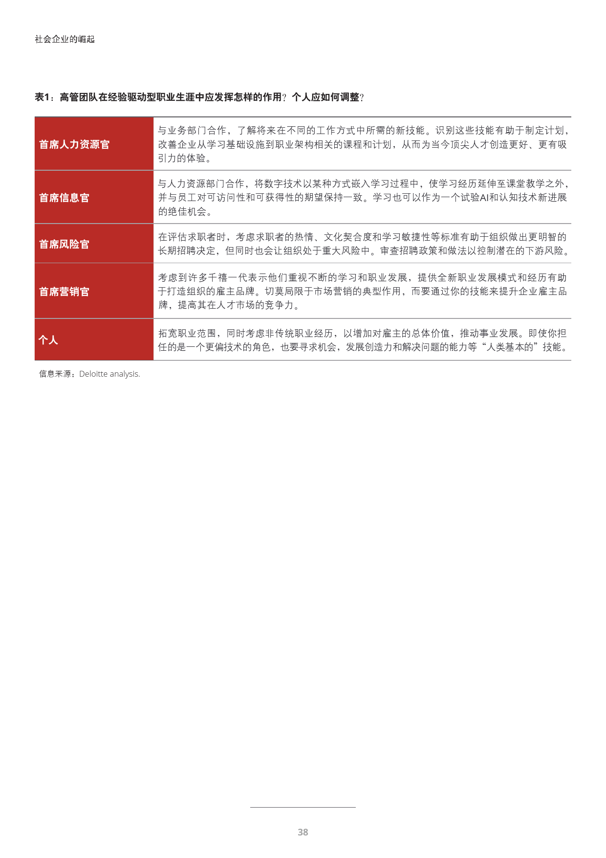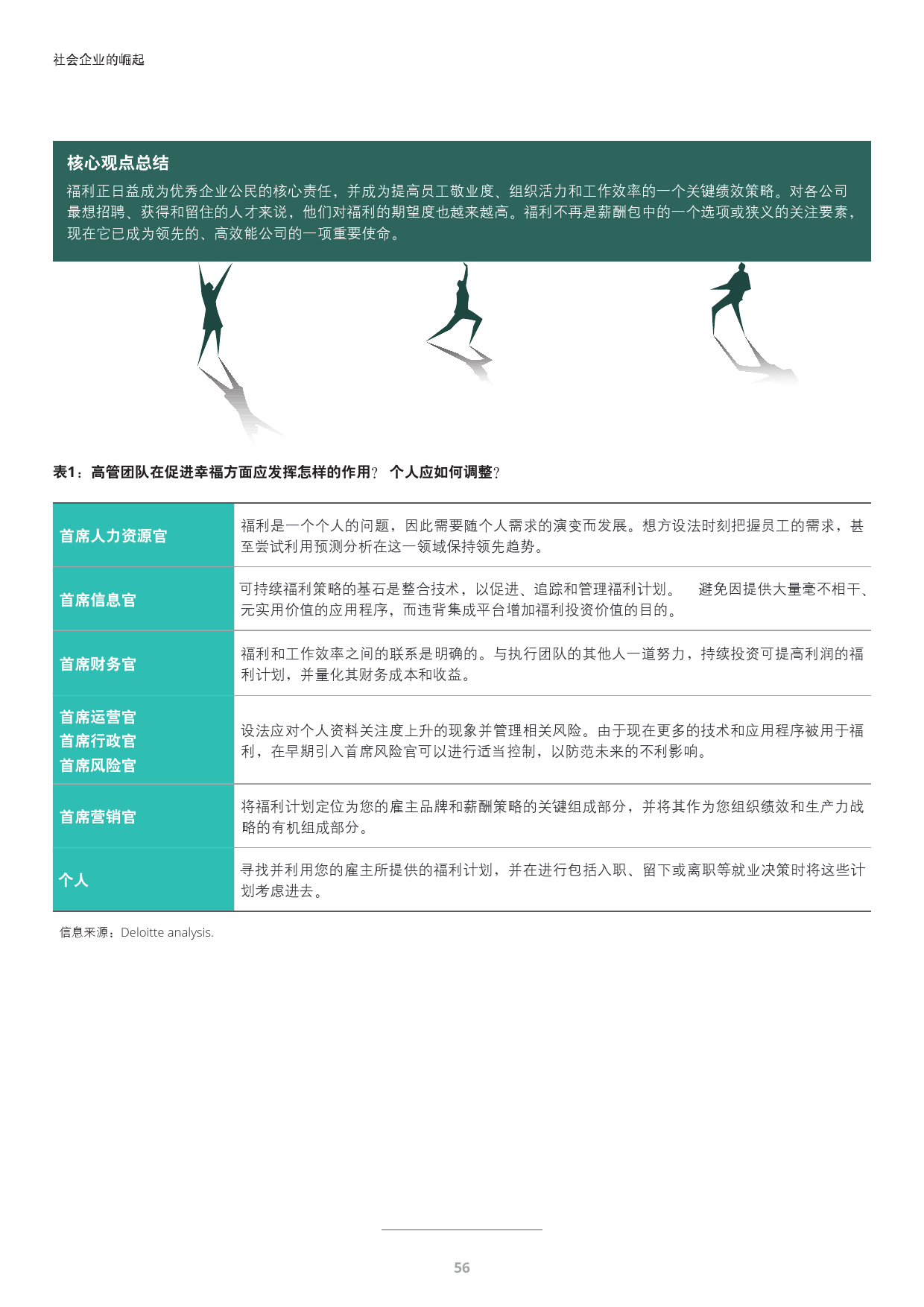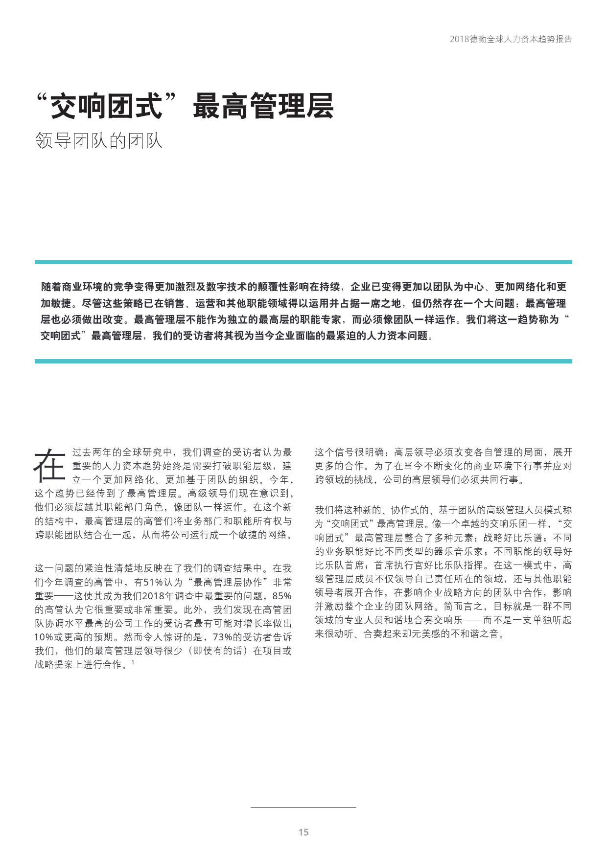 报告指出,企业在关注自动化、新技术需求、劳动力老龄化和劳动市场日益紧缩的同时,还须重新调整高管团队,以专注应对企业不断演变的社会角色,这是关乎企业成败的重大关键。在当下的新时代,人力资本与社会资本密不可分。这一现实要求组织于如何与当今时代开展业务,以及如何为未来的人力资本挑战做好准备两方面中,找到一个基本支点。