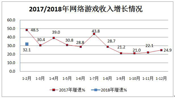 1-2月,信息服务收入规模达1251亿元,同比增长25.2%,占互联网业务收入比重为91.1%。其中,网络游戏(包括客户端游戏、手机游戏、网页游戏等)业务收入474亿元,同比增长32.1%。