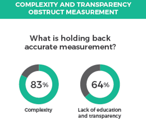 而复杂性(83%)和透明度(64%)则是阻碍准确测量的罪魁祸首。
