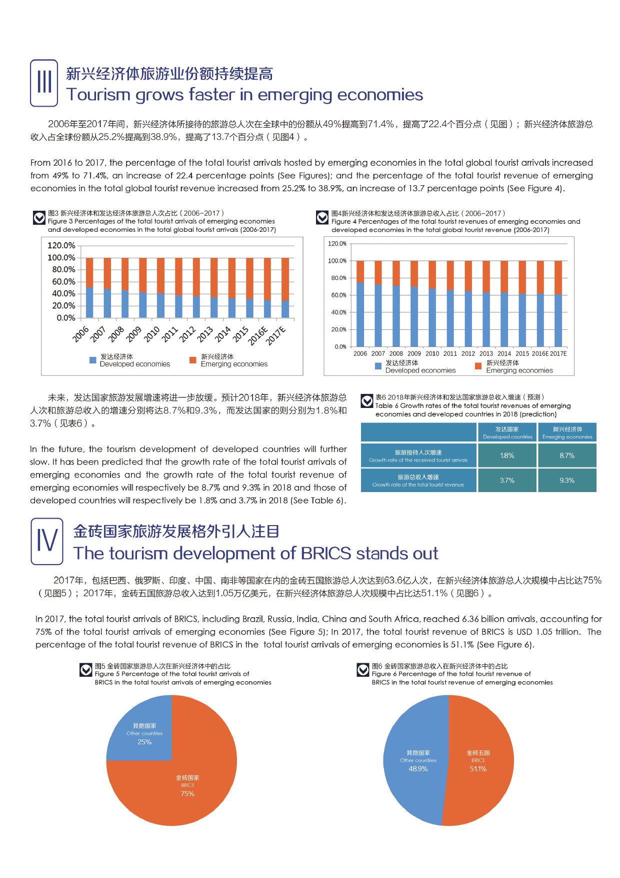 三、新兴经济体旅游业份额不断提高,旅游总收入占全球份额提高到38.9%,提高了13.7个百分点;