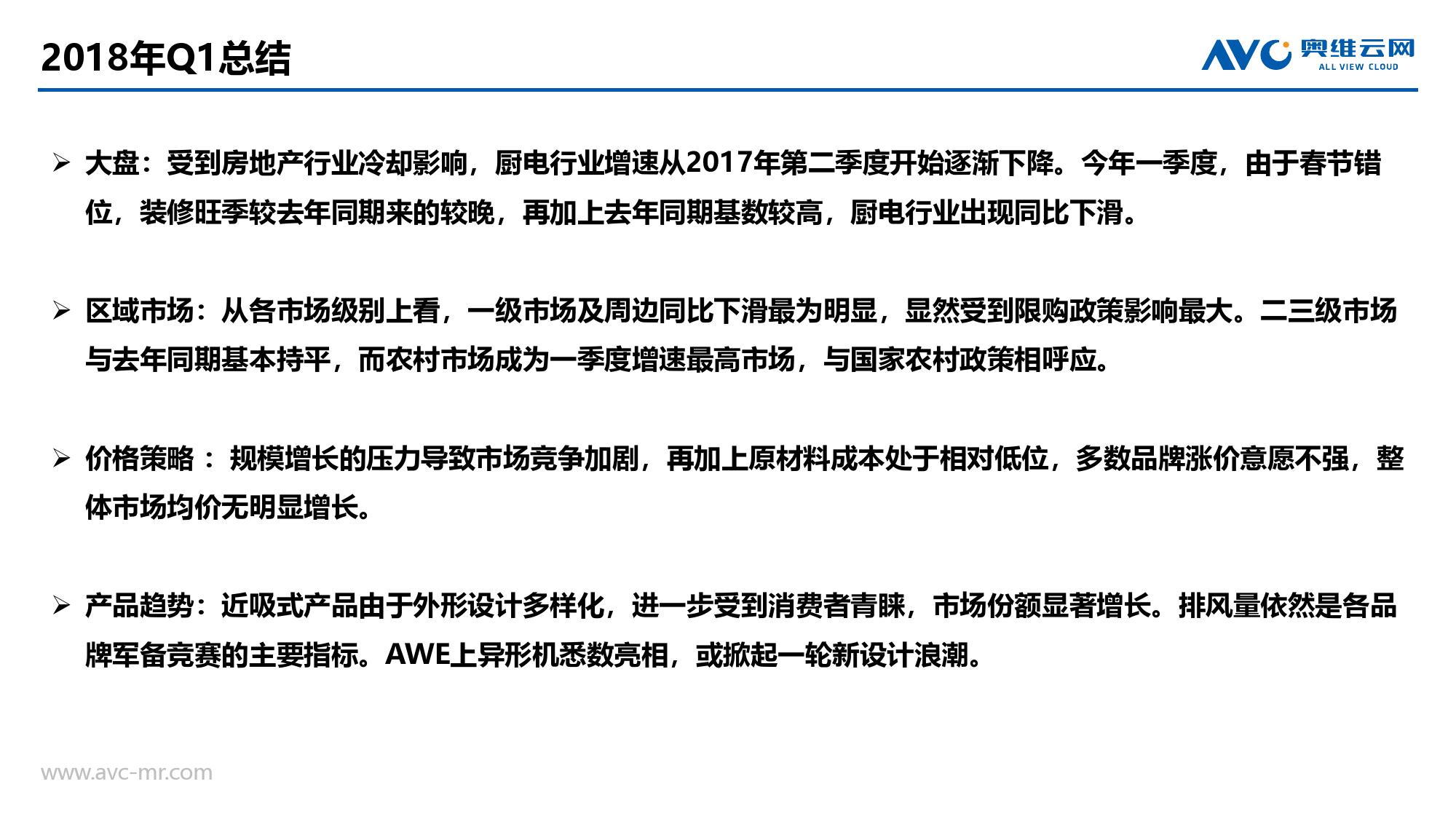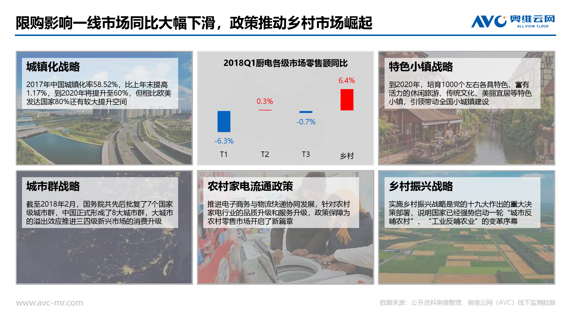 区域市场:从各市场级别上看,一级市场及周边同比下滑最为明显,显然受到限购政策影响最大。二三级市场与去年同期基本持平,而农村市场成为一季度增速最高市场,与国家农村政策相呼应。