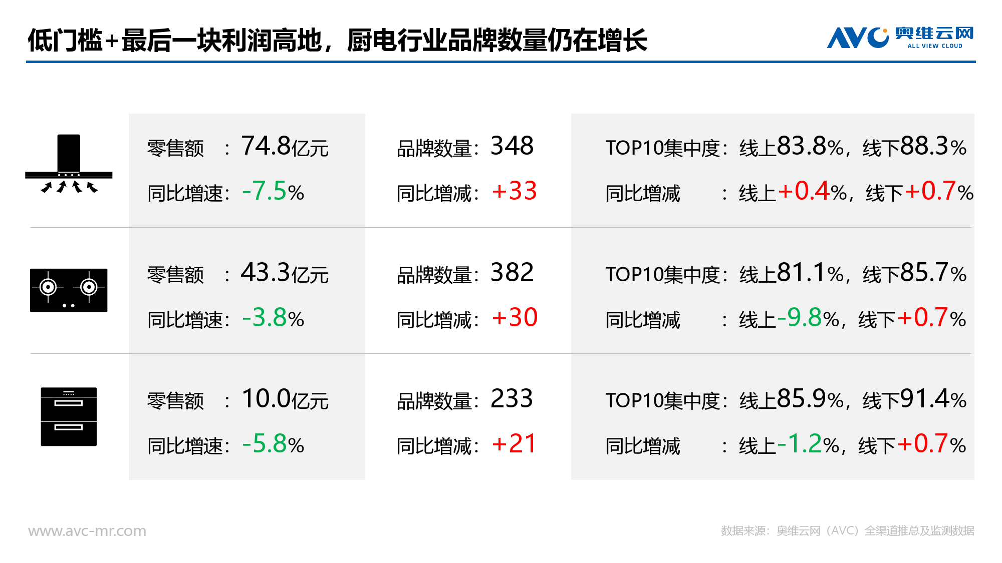 大盘:受到房地产行业冷却影响,厨电行业增速从2017年第二季度开始逐渐下降。今年一季度,由于春节错位,装修旺季较去年同期来的较晚,再加上去年同期基数较高,厨电行业出现同比下滑。