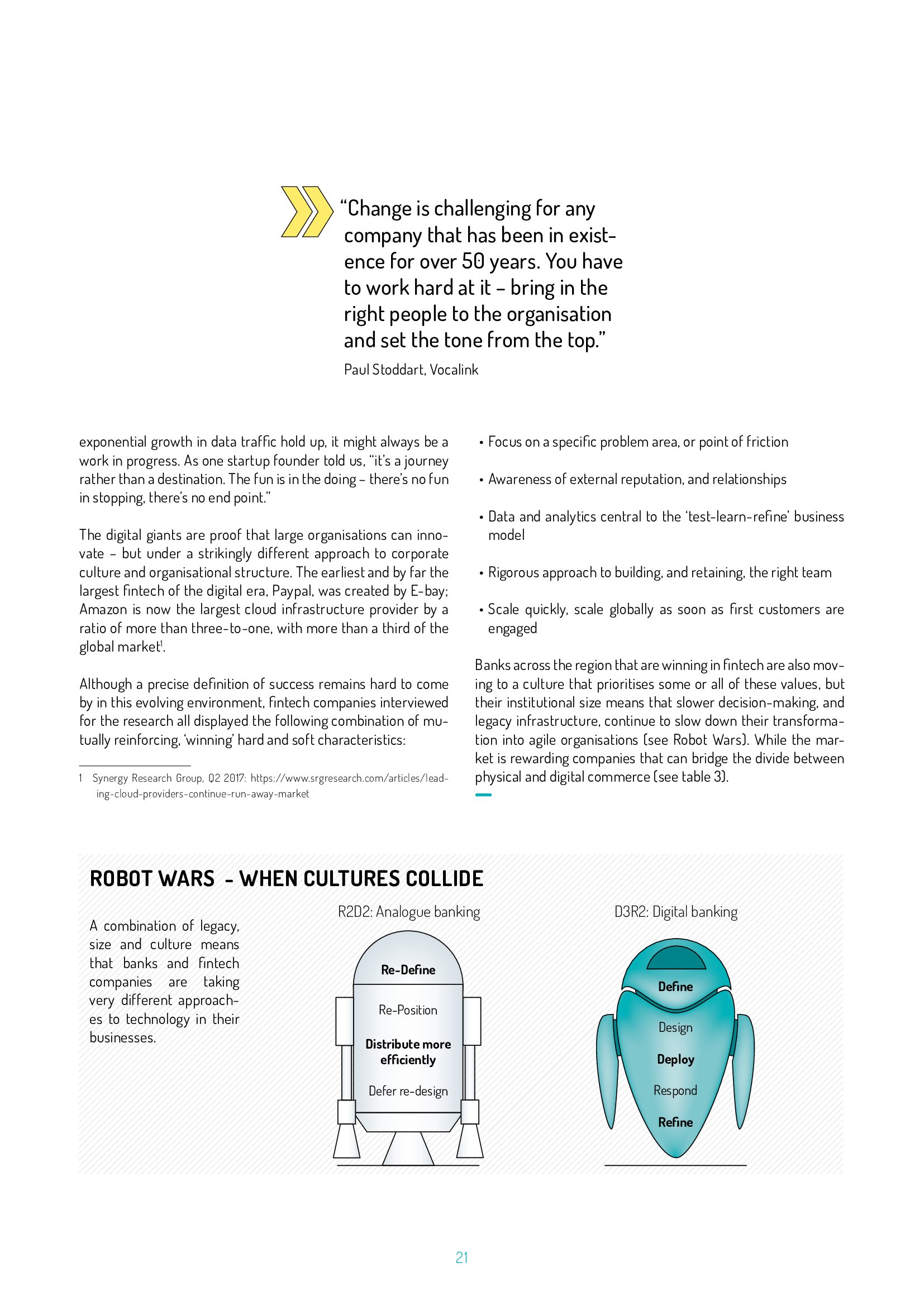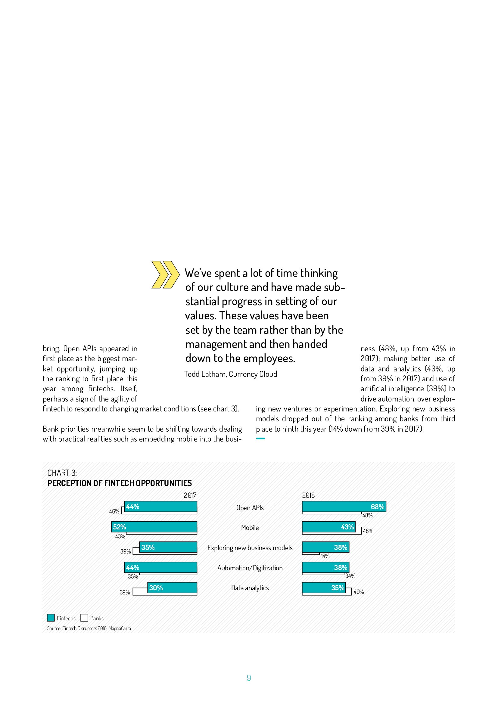 调查结果显示,这一旅程尚未完成。事实上,科技行业文化永远在进步,这种文化可能永远不会真正结束。这同时产生了欢庆和担忧。金融科技公司庆祝并巩固其成功的同时,银行业则在革新方面停滞不前。