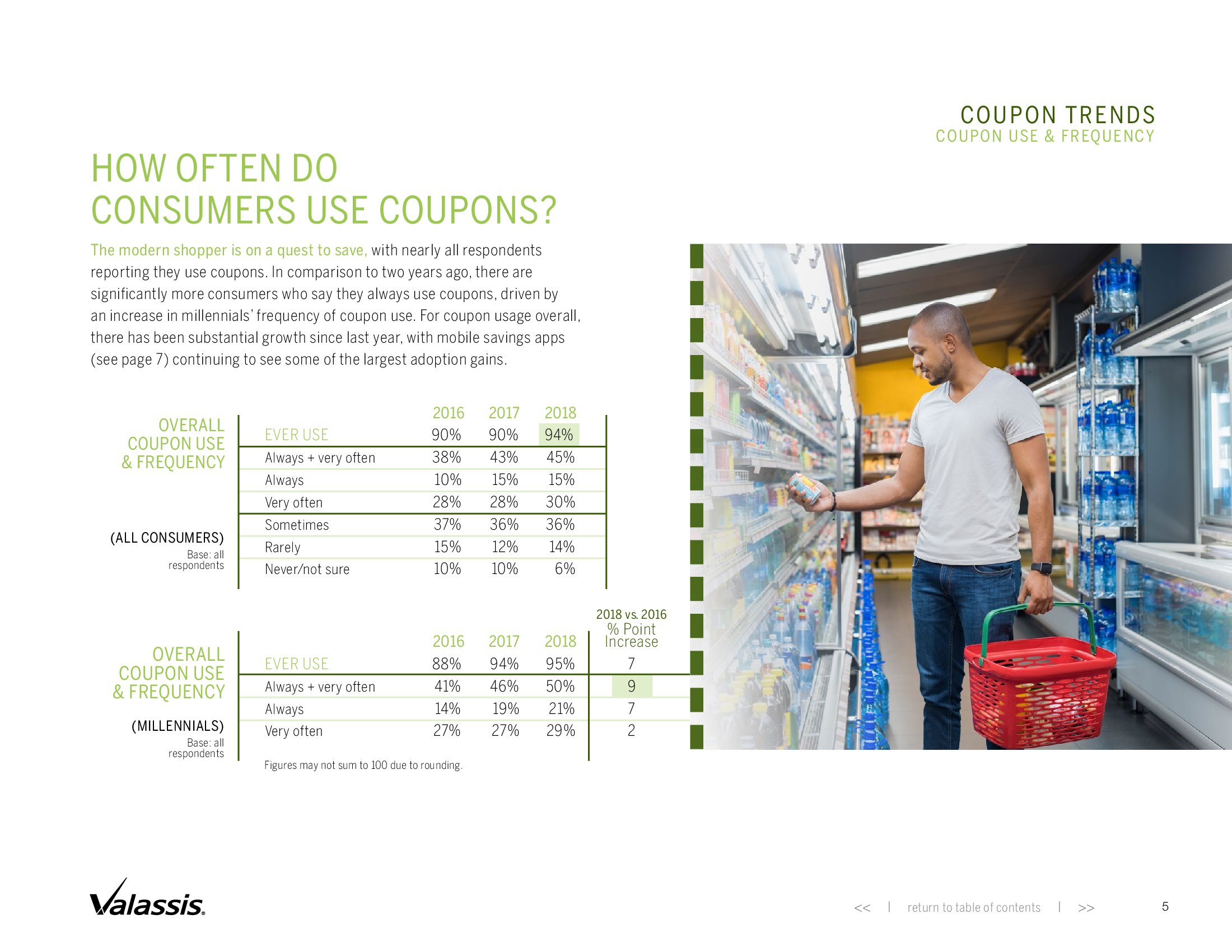 自2016年以来,总是或经常使用优惠券的千禧一代的比例增长9个百分点,达到50%;