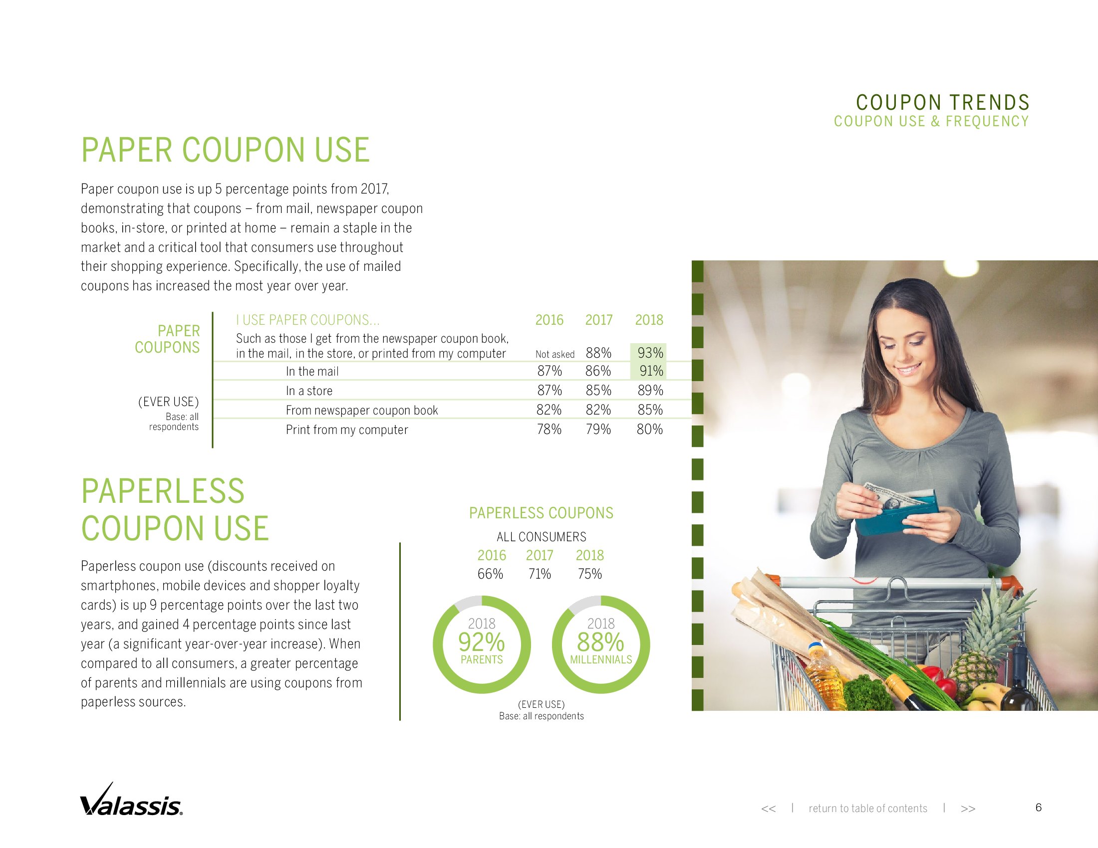 消费者对纸质优惠券的偏好还反映在使用率更高。93%的受访者使用某种形式的纸质优惠券,高于去年的88%。