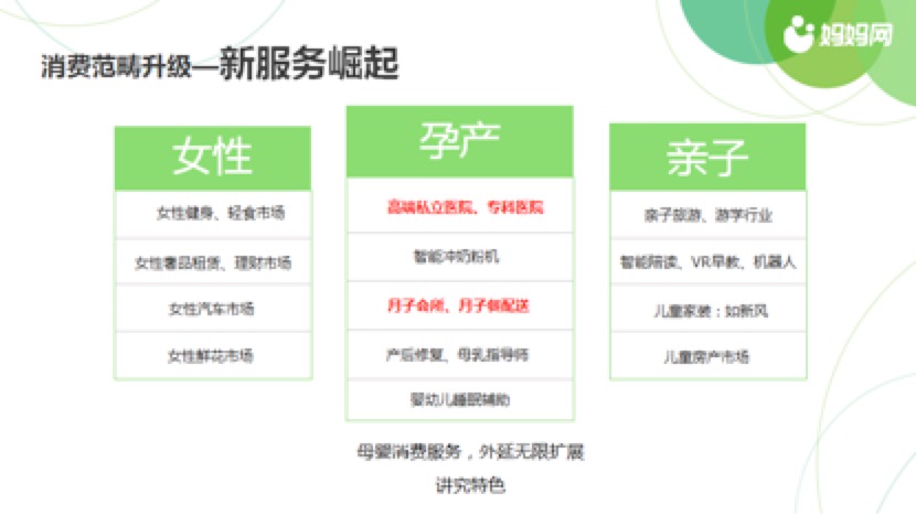 而伴随消费升级,母婴服务型消费类别也在不断扩充。深访发现,妈妈们接触过或消费过的本地服务,已经从原先少数的“经典项目”开始扩展到健身机构、高端私立医院、月子会所、产后修复机构、亲子旅游、儿童家装等新类别。虽然市场环境和消费升级给新兴母婴服务带来了巨大商机,但同时也带来了新的挑战。要在激烈的竞争中突围,能否打造出自身服务和品牌的“差异化”至关重要。