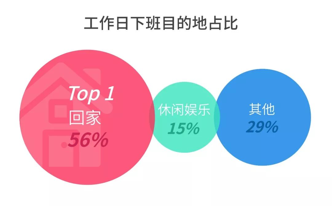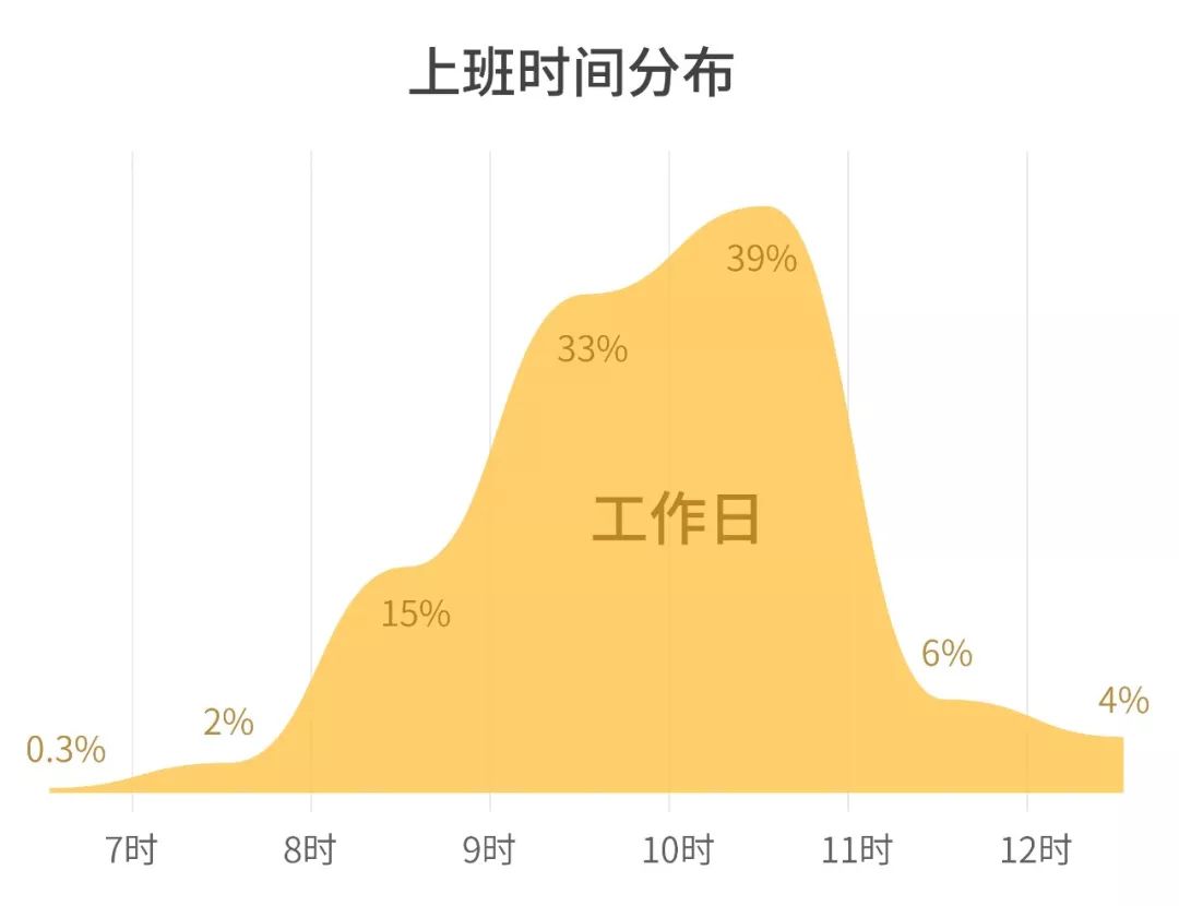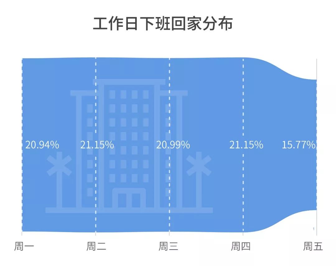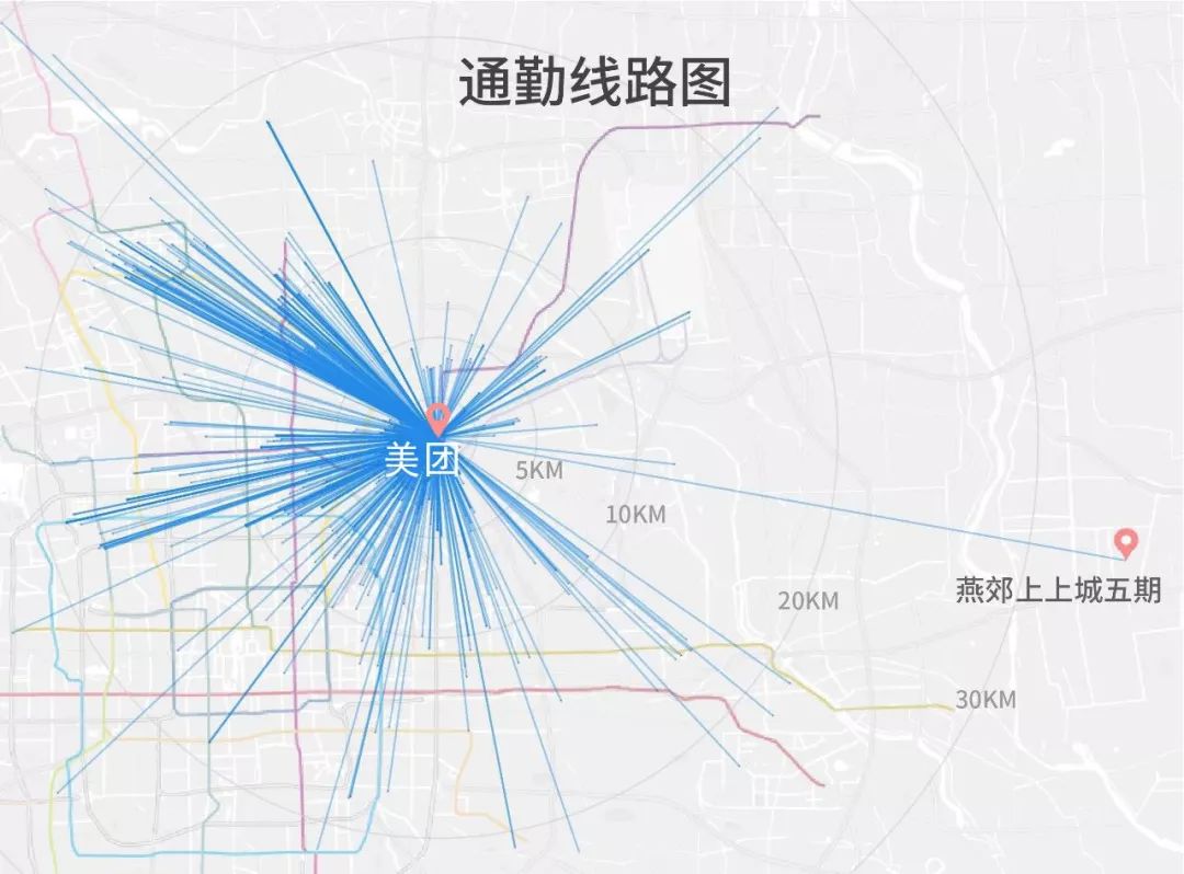 滴滴大数据告诉你,美团员工有多忙 美团成立已8年,从2010年3月创办的团购网站,成长为吃喝玩乐全都有的美团点评。总部位于北京朝阳区望京东路,当你去往机场,或在五环上从北转向东时,就能遥遥看到了。 在美团的员工们每天都是怎样工作与通勤的?通过滴滴大数据,我们发现如下特点:上班早,下班晚,住得近,娱乐少。 上班时间:早九点 晚九点 美团员工的上班时间集中于9-10点,占比39%,8-9点打车上班的人占33%,不过也有人姗姗来迟,11点后才出发。 在工作日,美团员工下班时间集中在21-22点,21点后下班占比达50%,夜高峰超出晚高峰;在周末,加班员工19-20点下班人数最多,达27%,周末好时光,加班不用熬夜。 通勤距离:低于北京平均值 在上班距离上,从瀑布图中可以看到,10公里以下的中短途出行为主,最远距离超40km,反差较大,平均通勤距离7km,小于北京市的平均通勤距离19.2km。从职住距离来看,美团员工幸福指数颇高。 根据出行OD点,美团员工出发地遍布北京城,住在望京内部的人数居多,同时向西北至回龙观、中关村,向北至天通苑,向南至南五环,向东至通州、燕郊。 将下班后出行的时间与空间结合起来,可以发现,住得远的员工反而下班更晚,23:00后还有不少人才回到回龙观、天通苑、通州。 下班去哪儿:少吃喝,少玩乐,回家 用普通的一个星期来分析,美团员工周五回家比例最少,结束了辛苦的一周,可以吃喝玩乐放松放松,周二周四下班直接回家比例最高,刚刚度过美好的周末,上班特别有劲头。 下班后大家都去哪儿呢,滴滴大数据发现一半的人直接回家,只有15%去了商场KTV电影院等休闲娱乐场所。 以上,差不多就是美团员工在北京打车的全貌了。也许上班早,下班晚,住得近,娱乐少,已成为很多互联网公司的常态。但是,无论工作有多忙,都要劳逸结合,注意休息与健康哦。每天坐好一点,你的出行有滴滴陪伴。 来自:50KM 更多阅读:Nature:携带相同基因组的癌细胞或许会表现出不同的行为!途虎养车:2018中国汽车用户线上养护行为报告自如研究院:2021年10城毕业生租房报告国际顶刊《PNAS》:爱发朋友圈的人,更容易长寿在中国,只抓一个权健是不够的世界各城市60平米房屋成本2025年世界城市化前景:成果摘要OIV:2024年全球葡萄与葡萄酒产业现状UNESCO:2025非洲基础教育完成率与奠基性学习聚焦报告中国睡眠健康研究白皮书:2025年成年人平均睡眠6.85小时ACSI:美国客户满意度指数2025年Q3稳定76.9,各行业用户体验现成交趋势同理心经济学:为什么人际互动是未来商业的核心?FAO:2025年10月全球食品价格指数进一步回落FAO:2025年世界粮食与农业状况IWSR:2025年Z世代饮酒年龄(LDA)饮酒率与饮酒行为趋势洞察