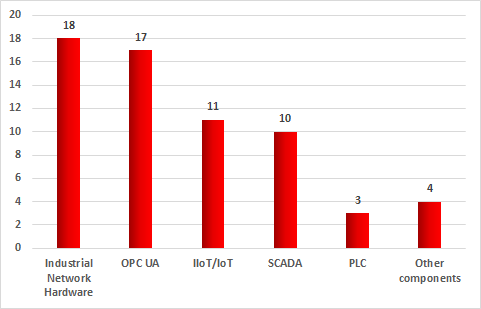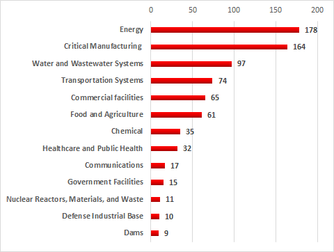 从行业来看,漏洞最多的是能源行业(178个),其次是各企业的制造流程(164)、供水(97)和运输(74)。