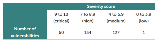 按照漏洞的严重程度,超过半数是7分或更高(194个),相当于高风险或临界风险水平。