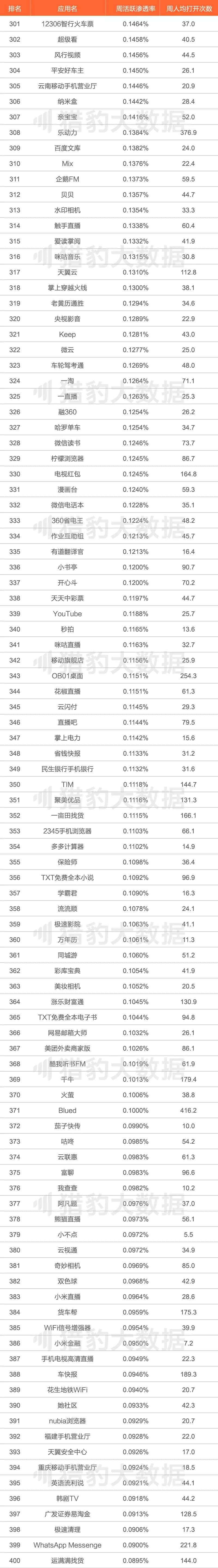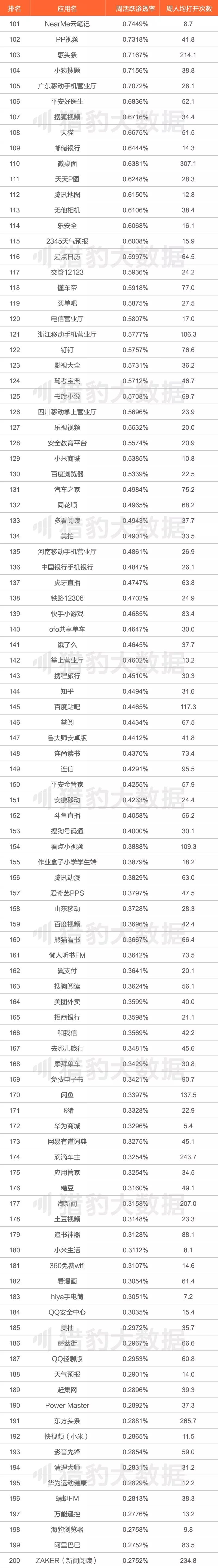 - 随着流量增长的难度越来越大,头部产品首当其冲面对压力。尤其是头部社交产品、头部新闻产品及头部O2O产品在周活数据上增长乏力,都在加速拓展边界以完善布局,保持竞争力。