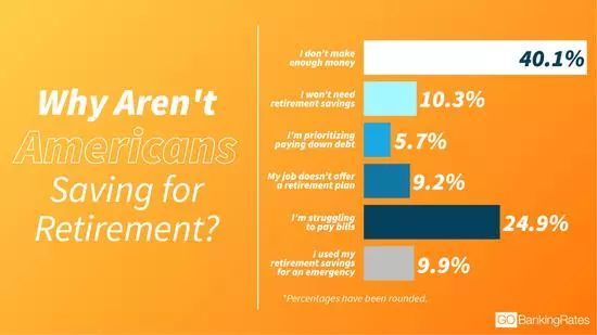 GoBankingRates说,大多数人之所以不把更多的钱藏起来,首先是因为他们挣的钱不够储蓄,其次是因为他们已经在艰难地支付账单。今年2月,这家个人理财网站对1000多名成年人进行了在线调查。