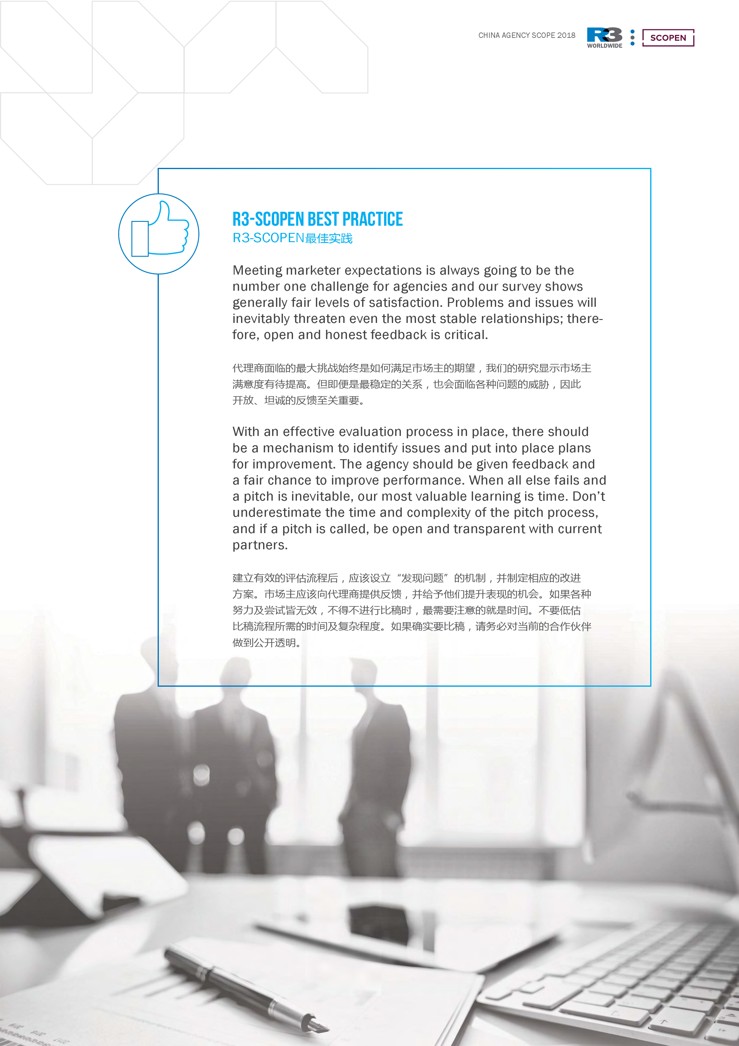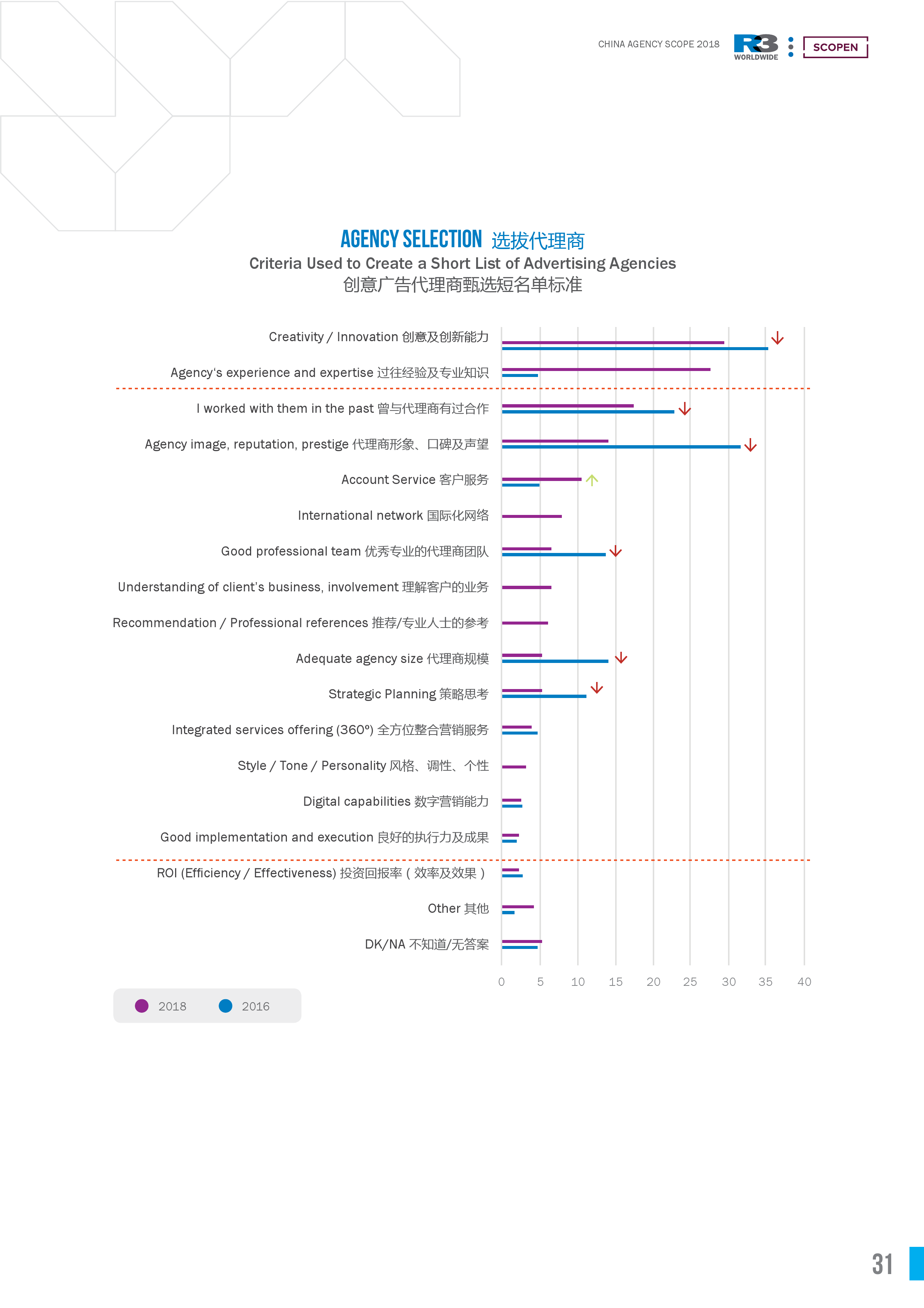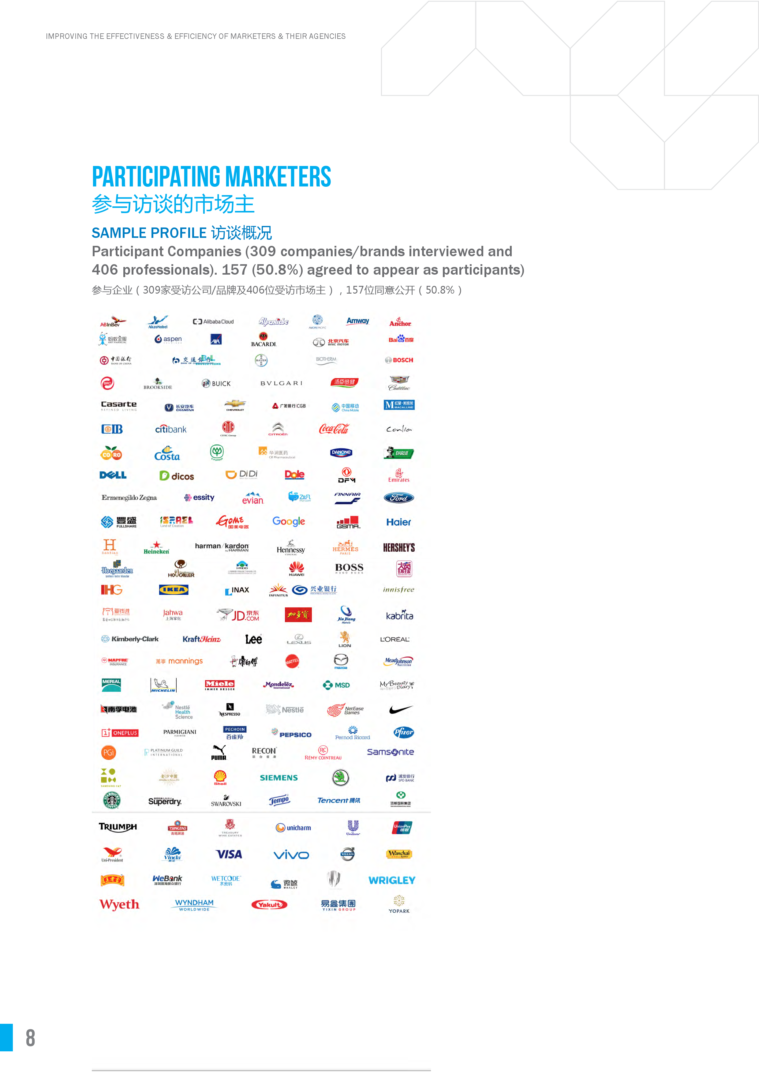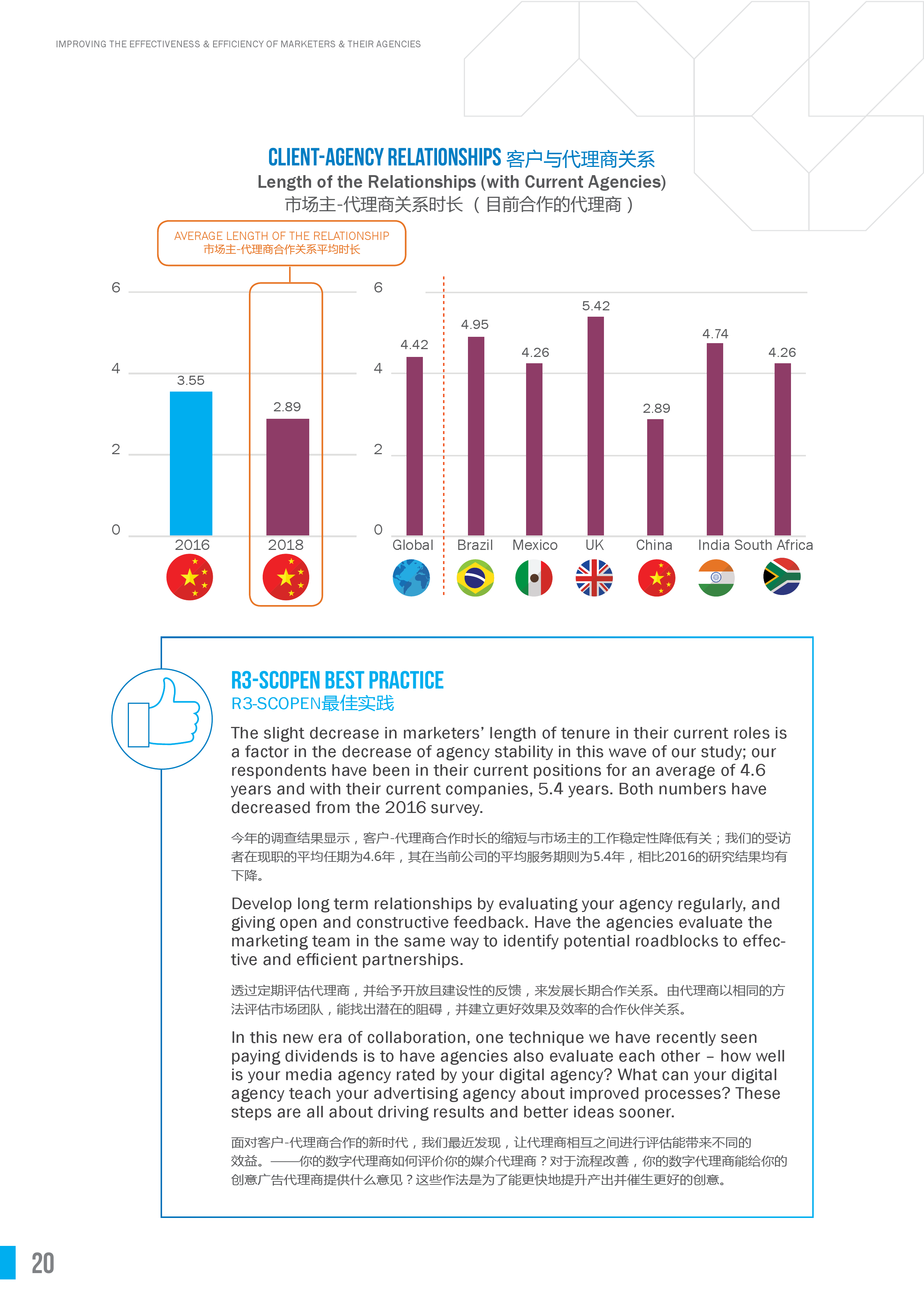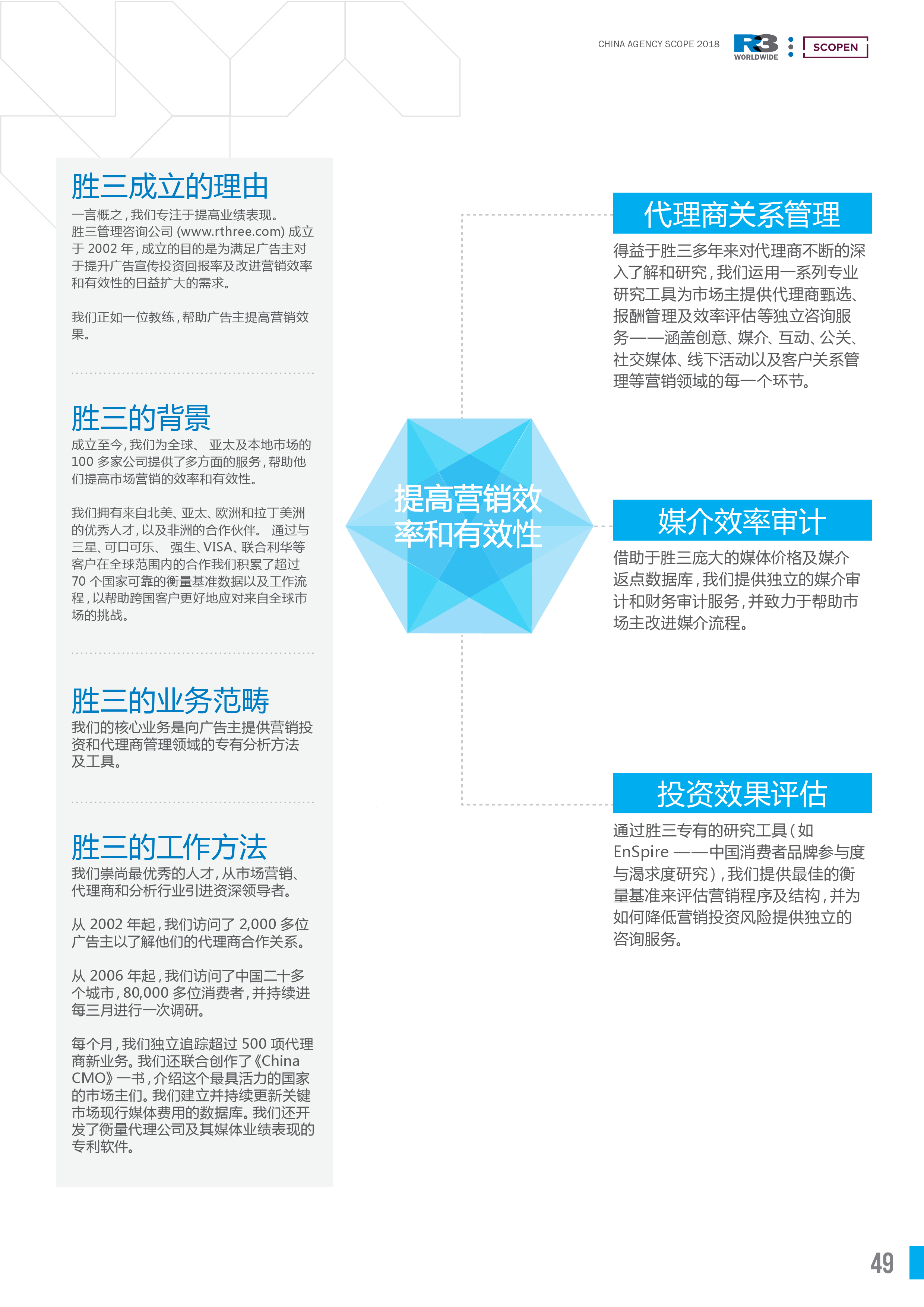 胜三-SCOPEN《2018年中国营销趋势研究》重点关注营销行业的发展趋势,针对中国代理商的看法及表现评估,共采访了406位营销决策者,他们在中国市场负责营销、传播和广告方面的工作,分别来自于306家不同公司,管理着746个客户-代理商关系。本文将着重说明十大主要趋势,详细报告则包含更多细节。我们还总结了最佳实践的建议,旨在帮助市场主及其代理商抓住这些趋势,得到进一步的提升。