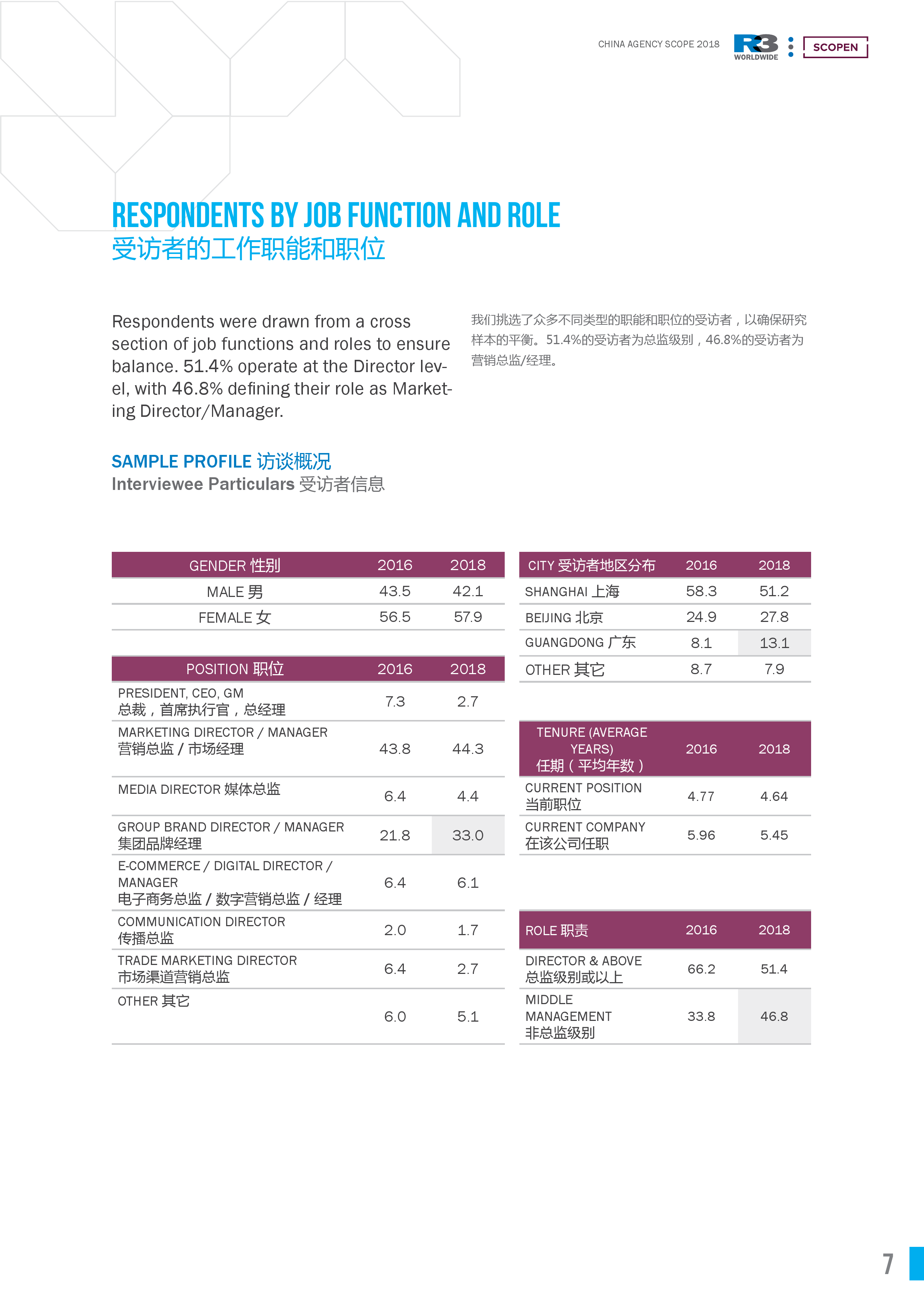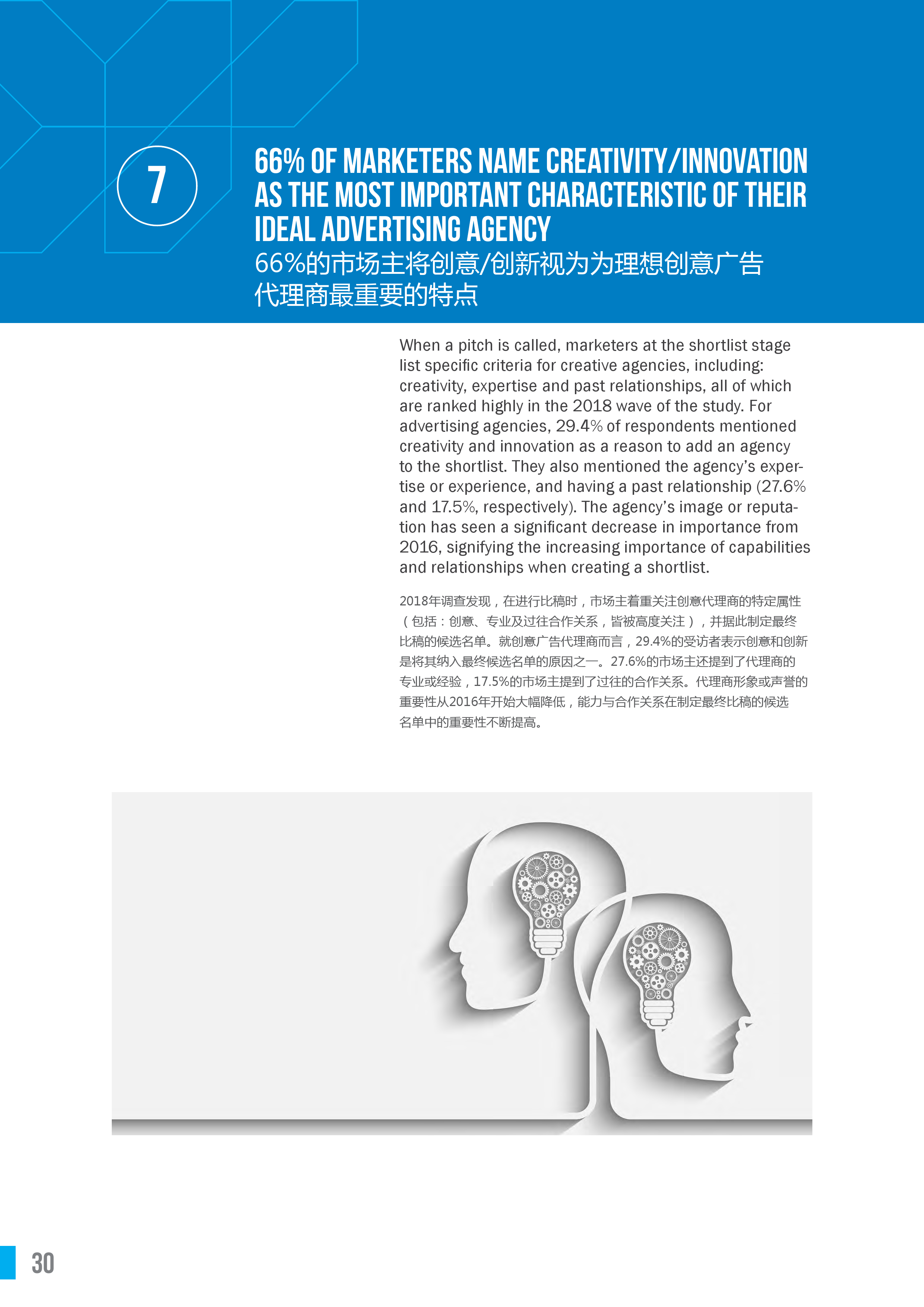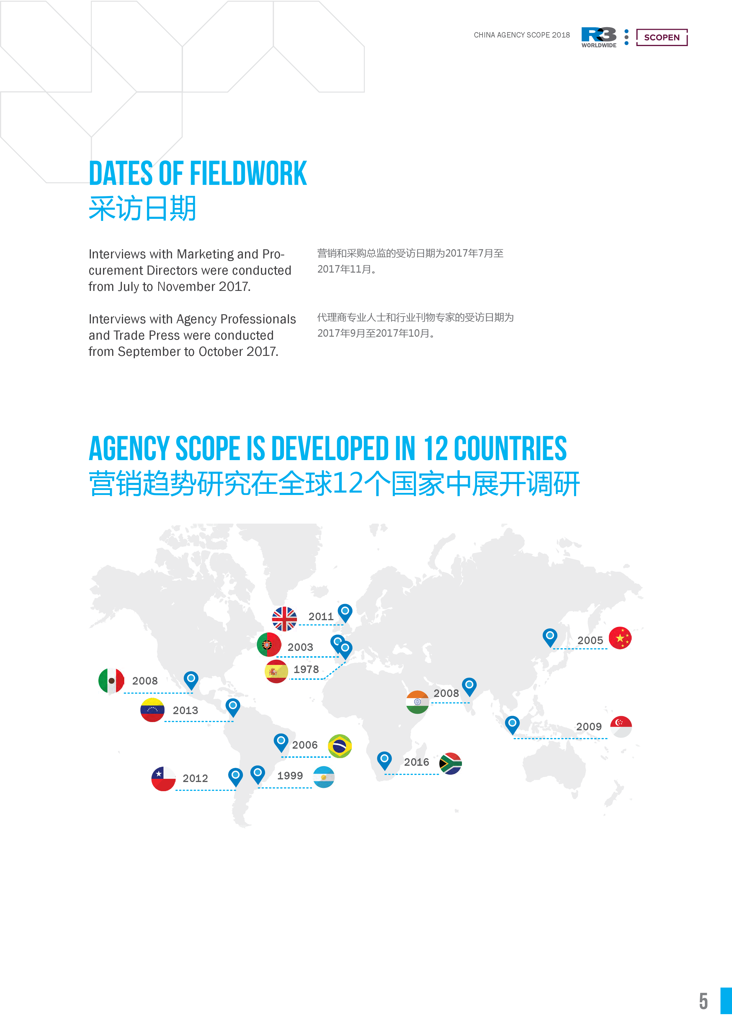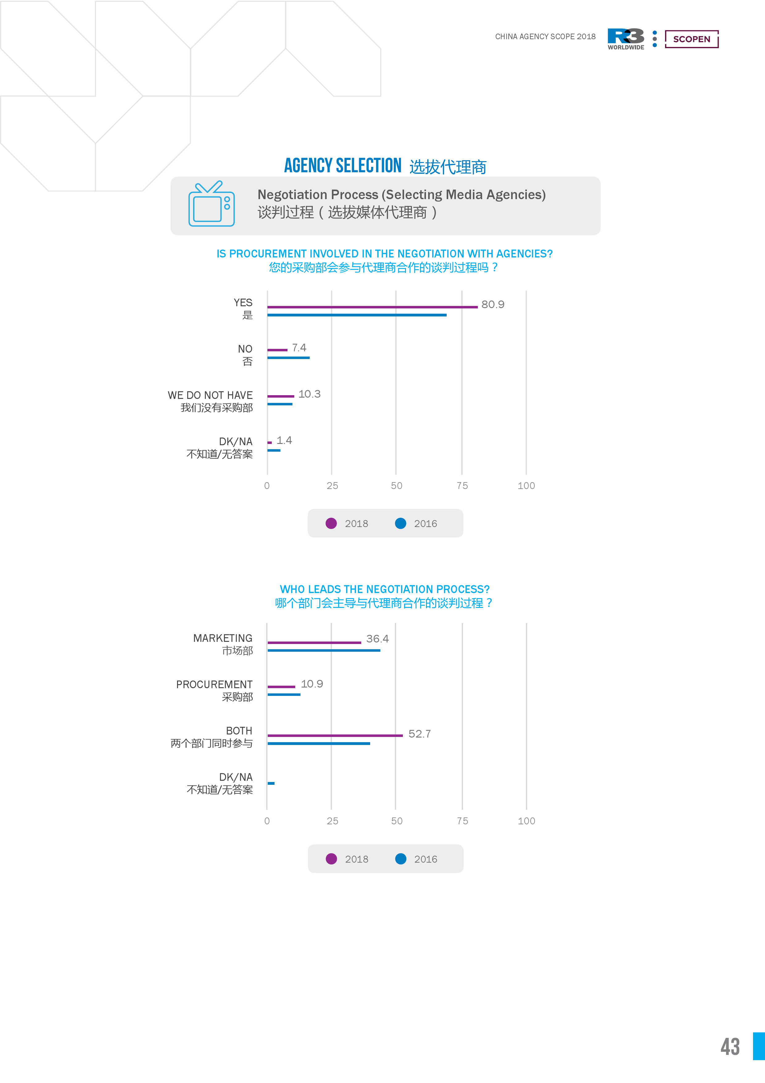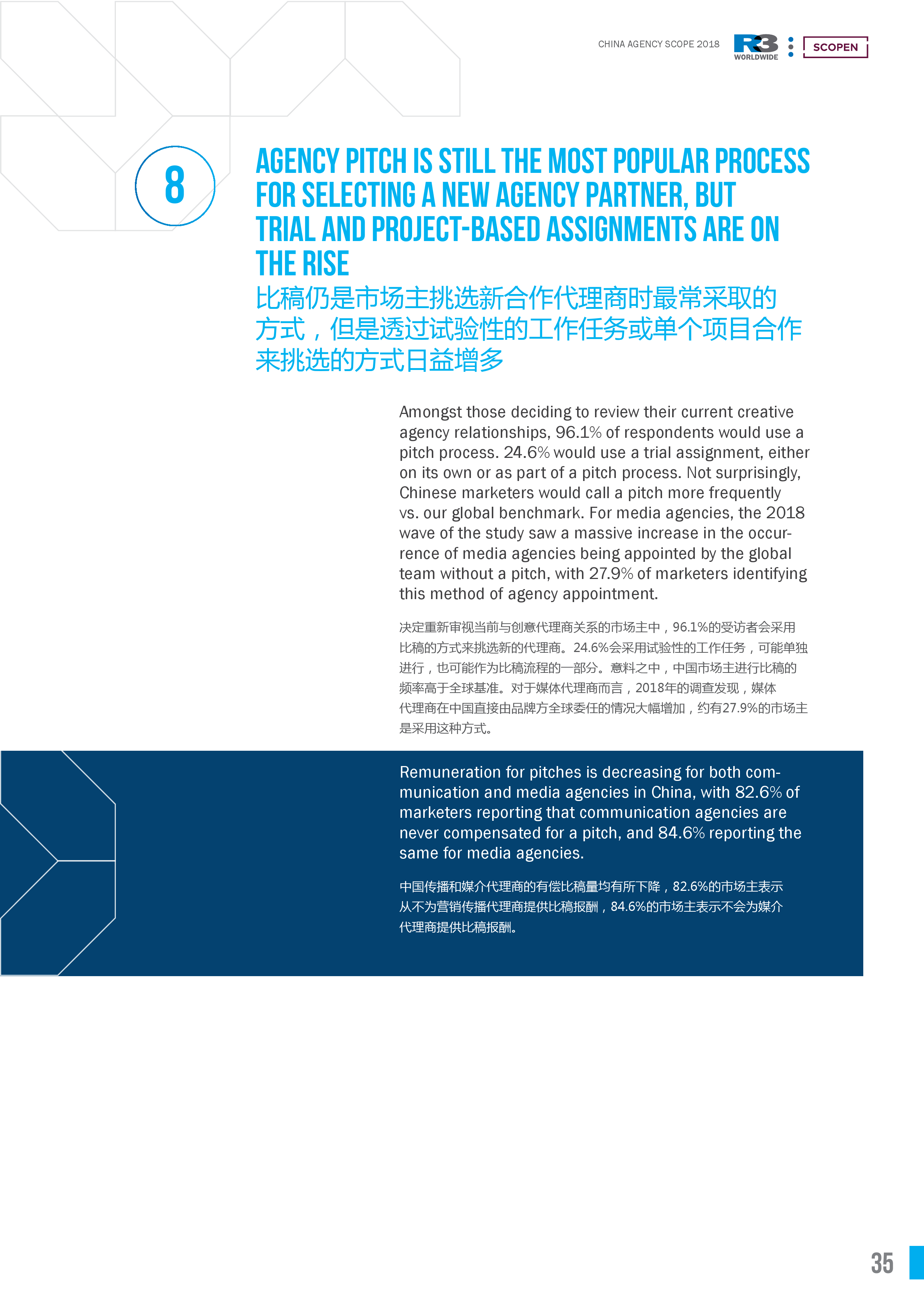 胜三-SCOPEN《2018年中国营销趋势研究》重点关注营销行业的发展趋势,针对中国代理商的看法及表现评估,共采访了406位营销决策者,他们在中国市场负责营销、传播和广告方面的工作,分别来自于306家不同公司,管理着746个客户-代理商关系。本文将着重说明十大主要趋势,详细报告则包含更多细节。我们还总结了最佳实践的建议,旨在帮助市场主及其代理商抓住这些趋势,得到进一步的提升。