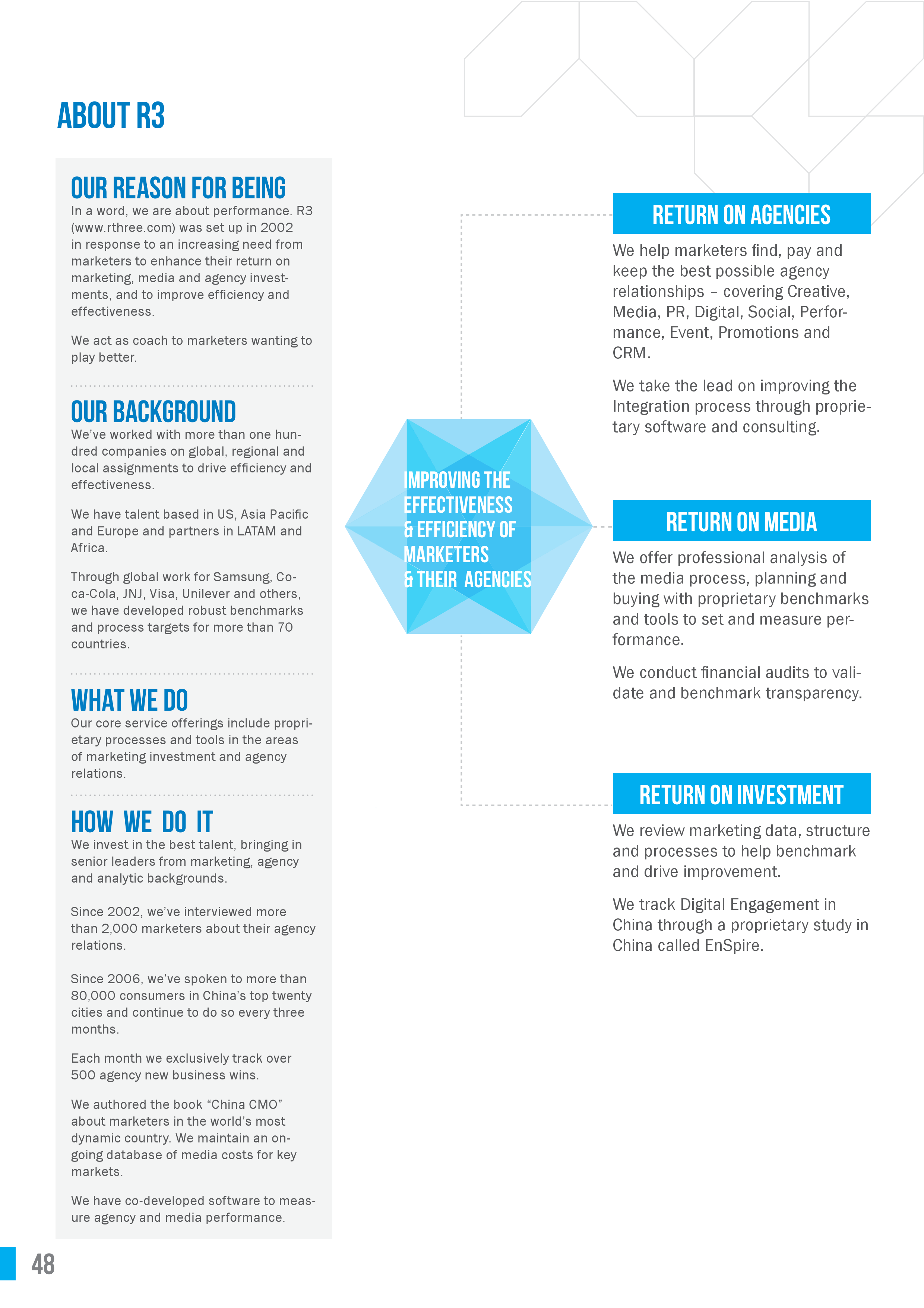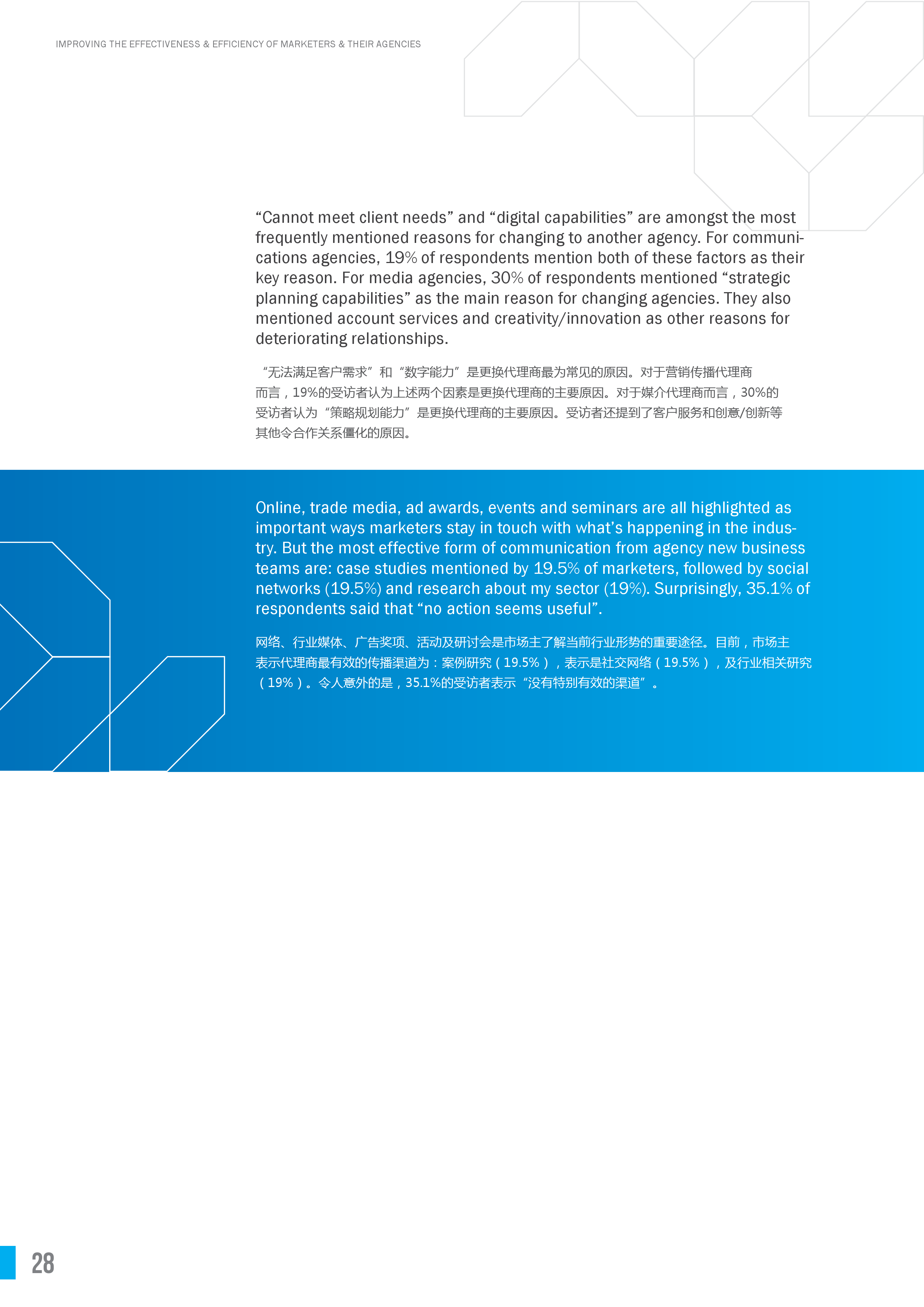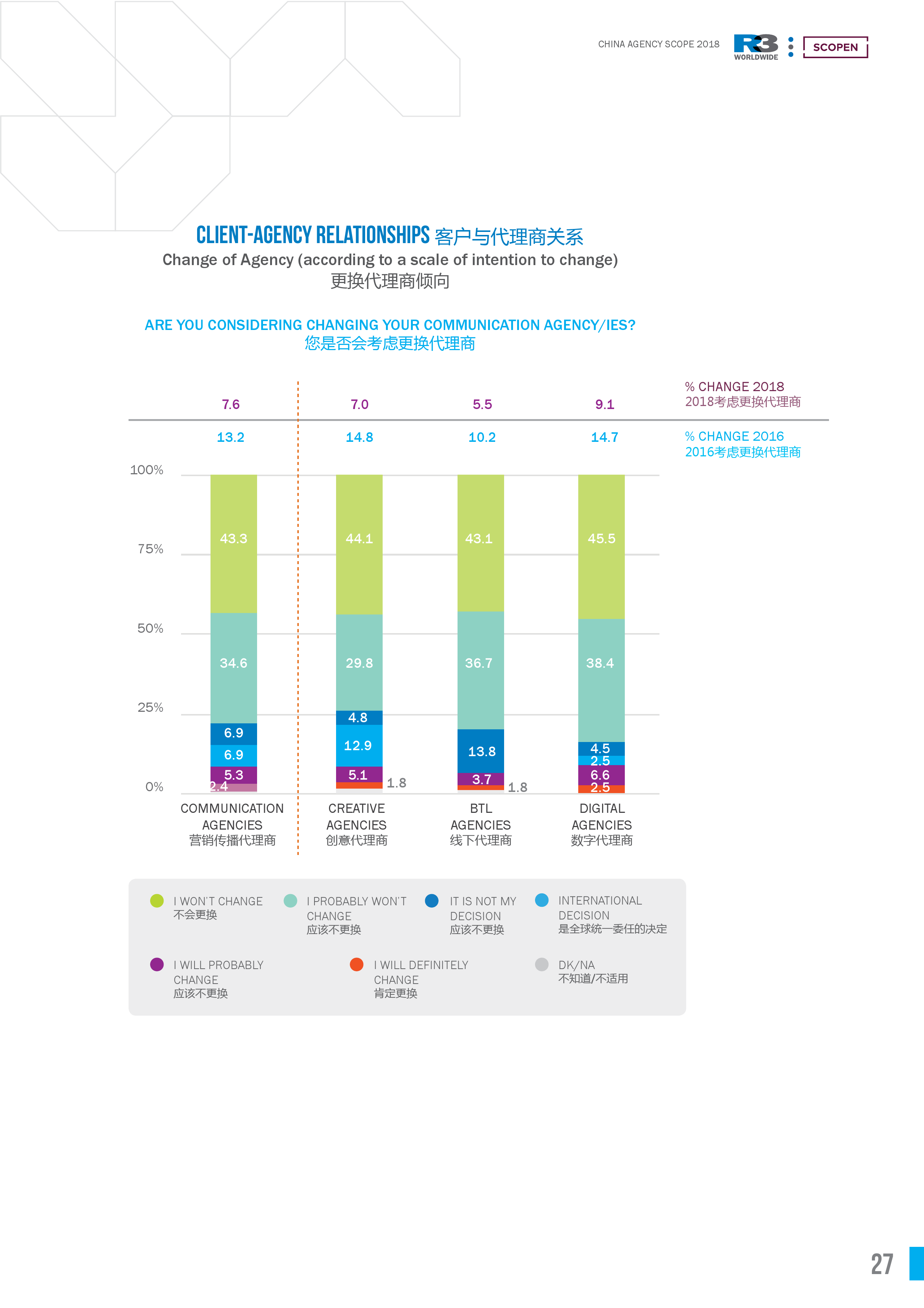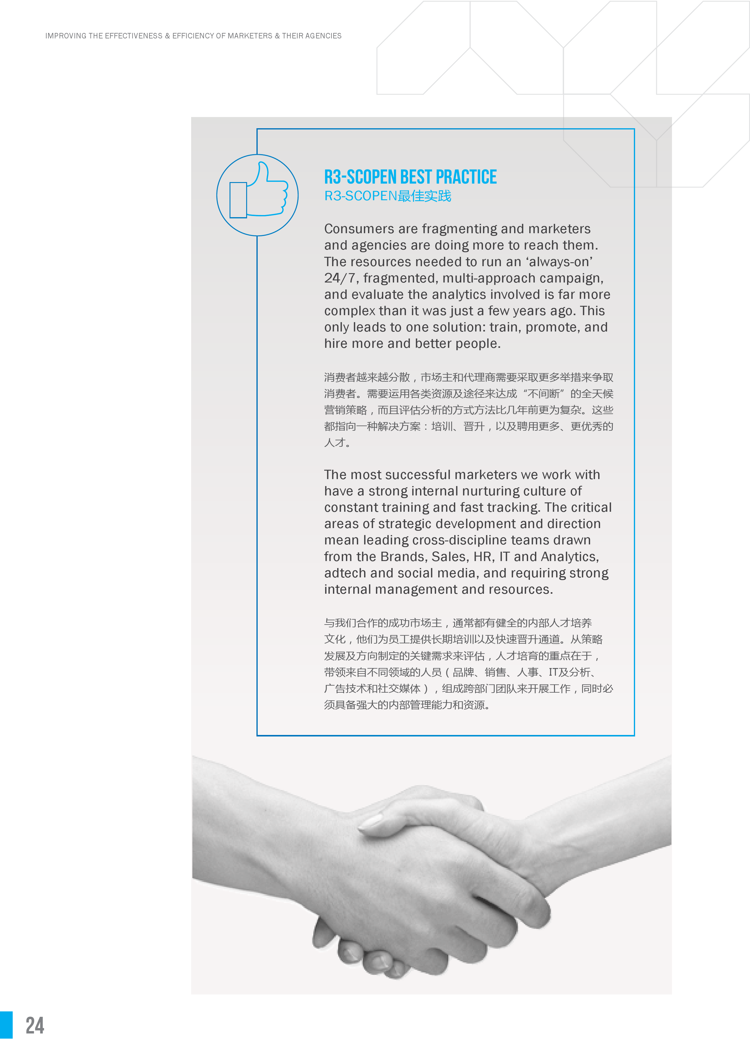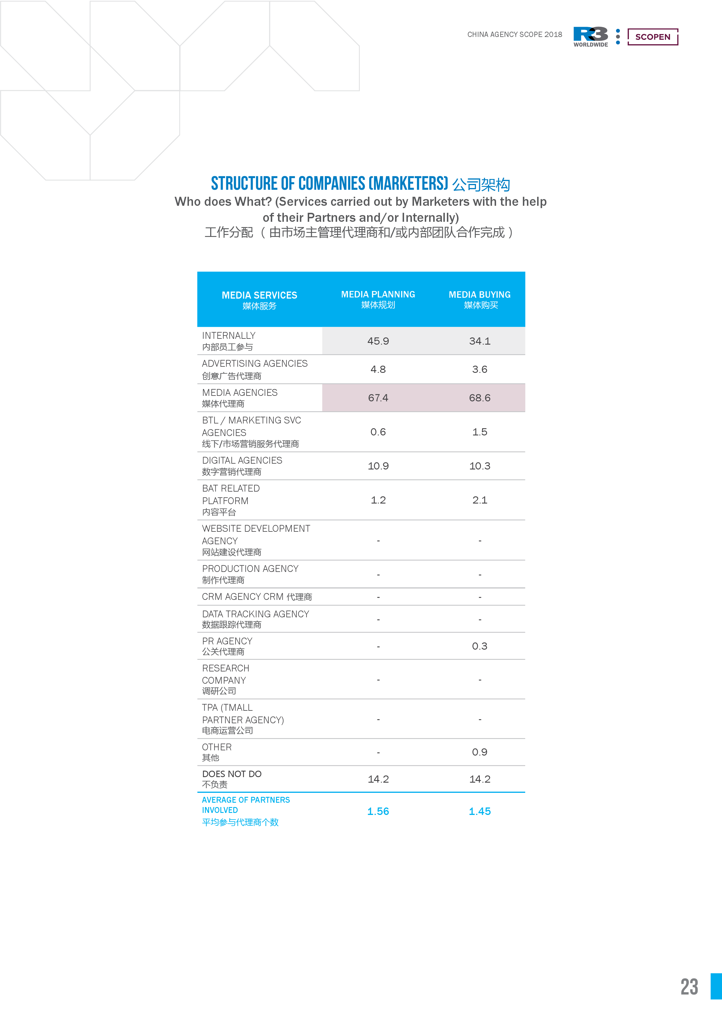 胜三-SCOPEN《2018年中国营销趋势研究》重点关注营销行业的发展趋势,针对中国代理商的看法及表现评估,共采访了406位营销决策者,他们在中国市场负责营销、传播和广告方面的工作,分别来自于306家不同公司,管理着746个客户-代理商关系。本文将着重说明十大主要趋势,详细报告则包含更多细节。我们还总结了最佳实践的建议,旨在帮助市场主及其代理商抓住这些趋势,得到进一步的提升。