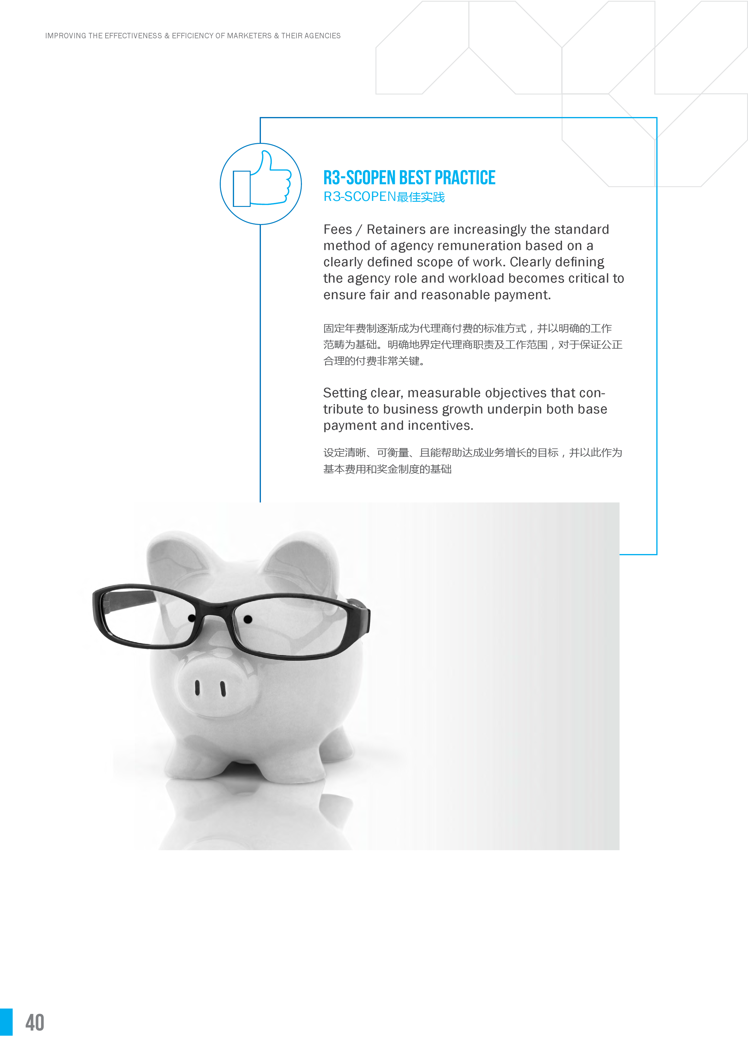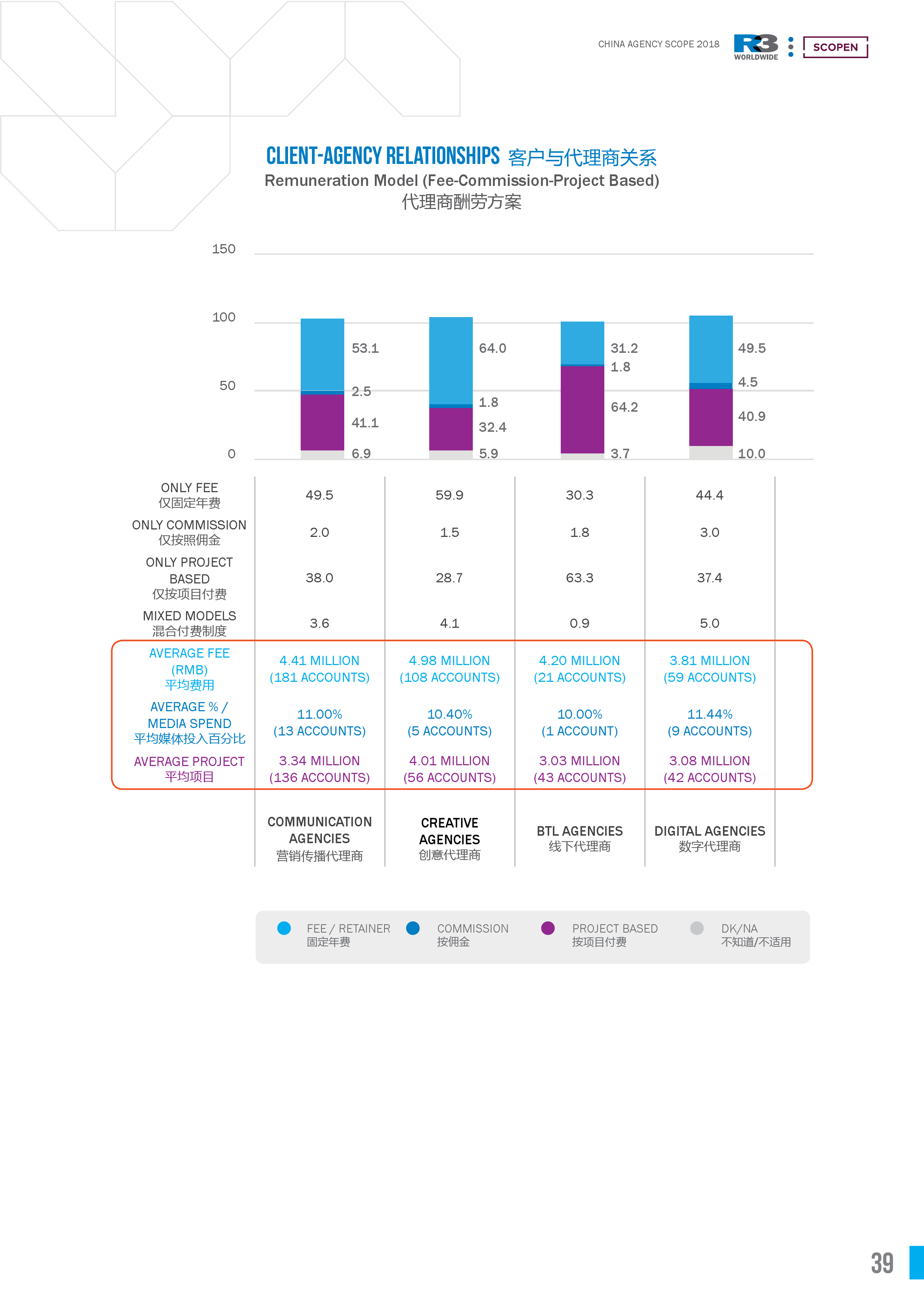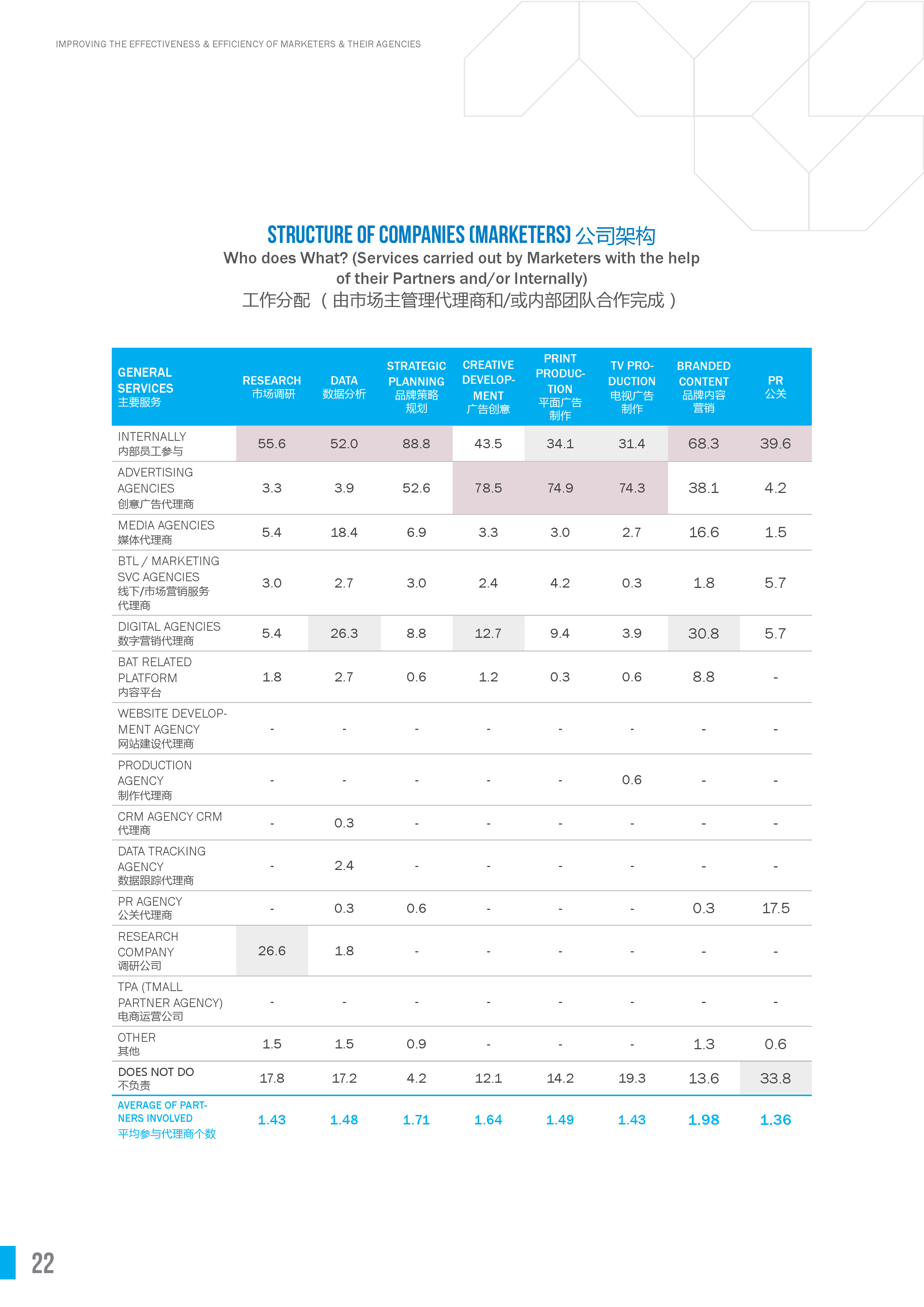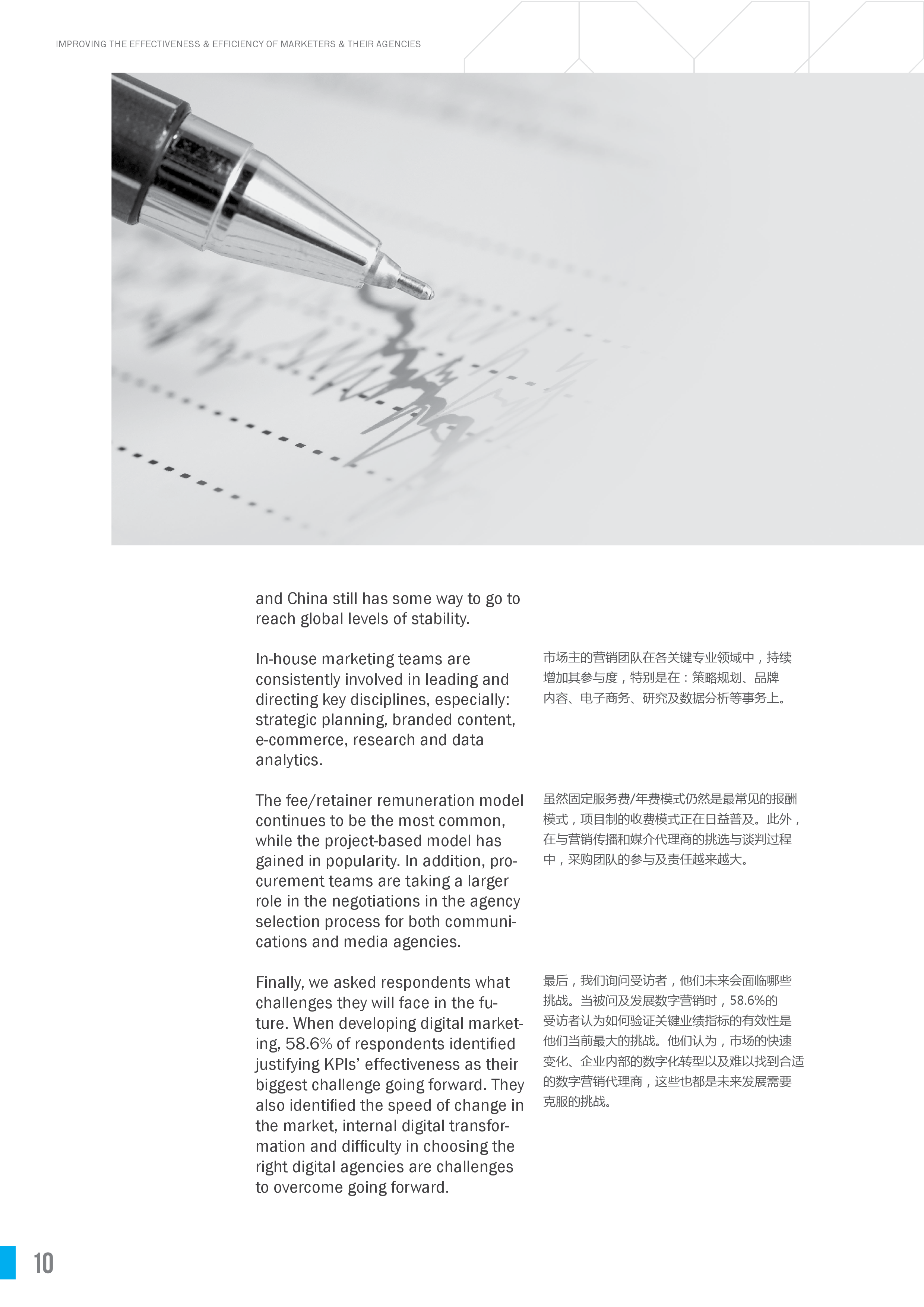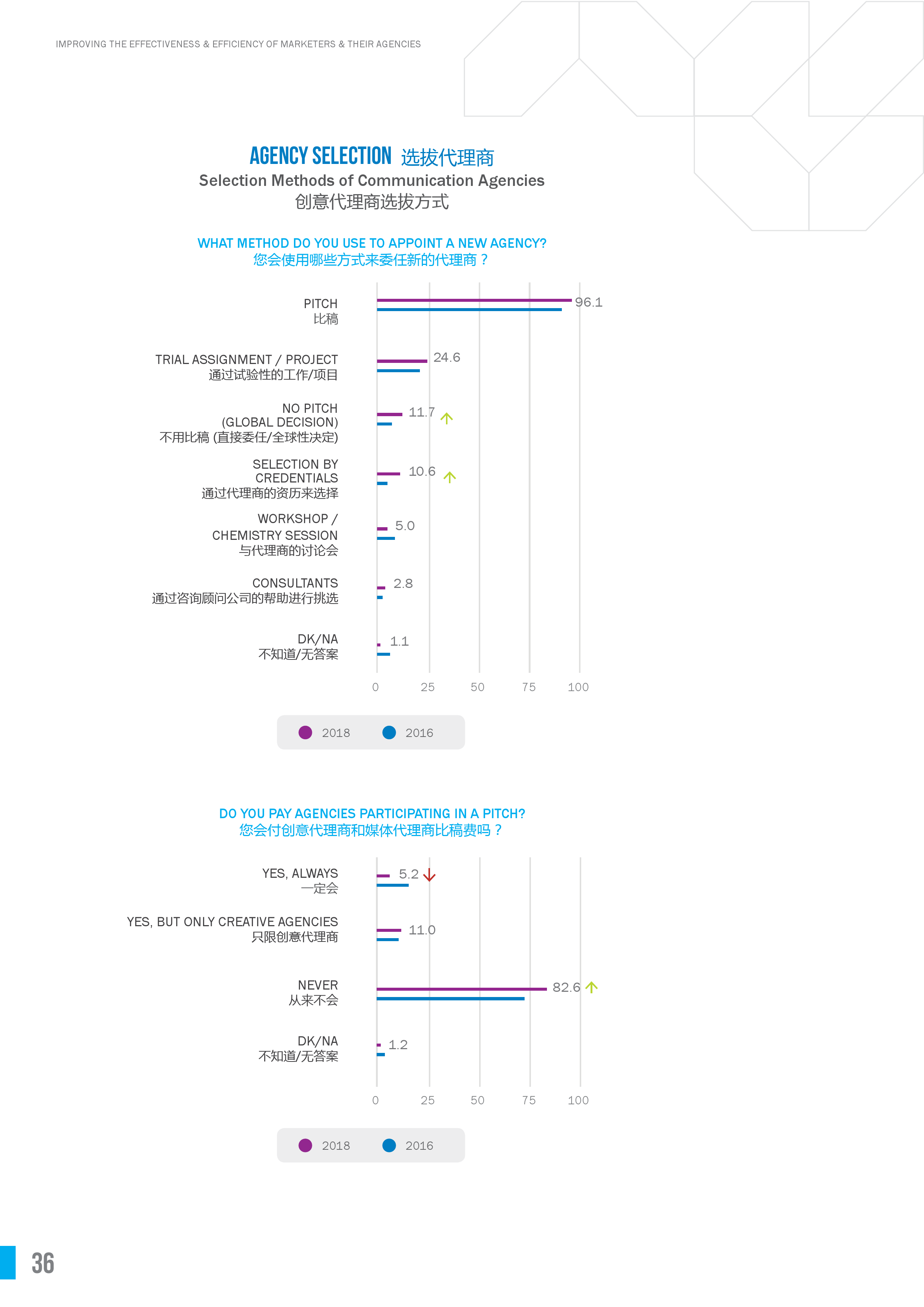 市场主的营销团队在各关键专业领域中,持续增加其参与度,特别是在:策略规划、品牌内容、电子商务、研究及数据分析等事务上。报告发现,虽然固定服务费/年费模式仍然是最常见的报酬模式,项目制的收费模式正在日益普及。此外,在与营销传播和媒介代理商的挑选与谈判过程中,采购团队的参与及责任越来越大。