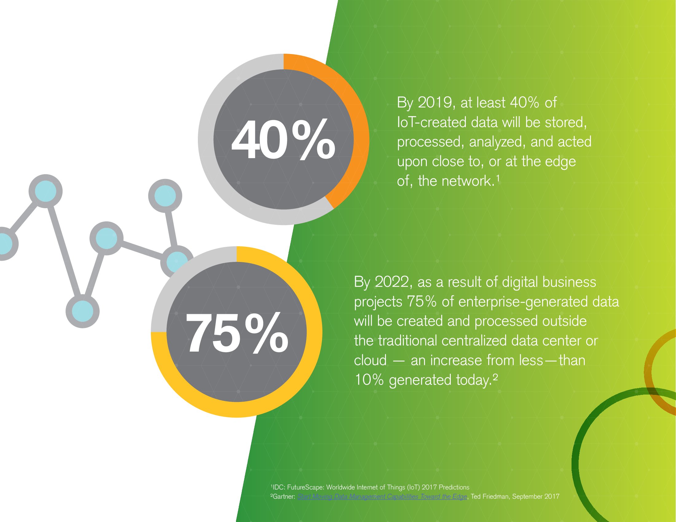 - 数据变得前卫。到2019年,物联网创建的数据中至少有40%将被存储、处理、分析,并在网络边缘进行操作。到2022年,企业生成的数据中75%将在传统的集中式数据中心或云之外创建和处理,现在的指数不到10%。