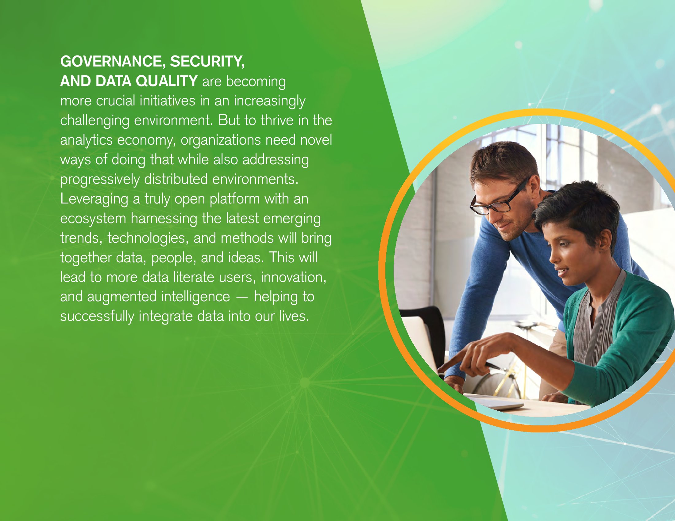 在日益具有挑战性的环境中,管理、安全和数据质量正变得越来越重要。为了在分析经济中茁壮成长,企业需要采取新颖的方式来实现这一目标,同时还要应对逐步分布的环境。
