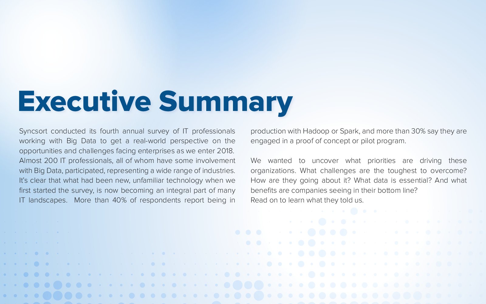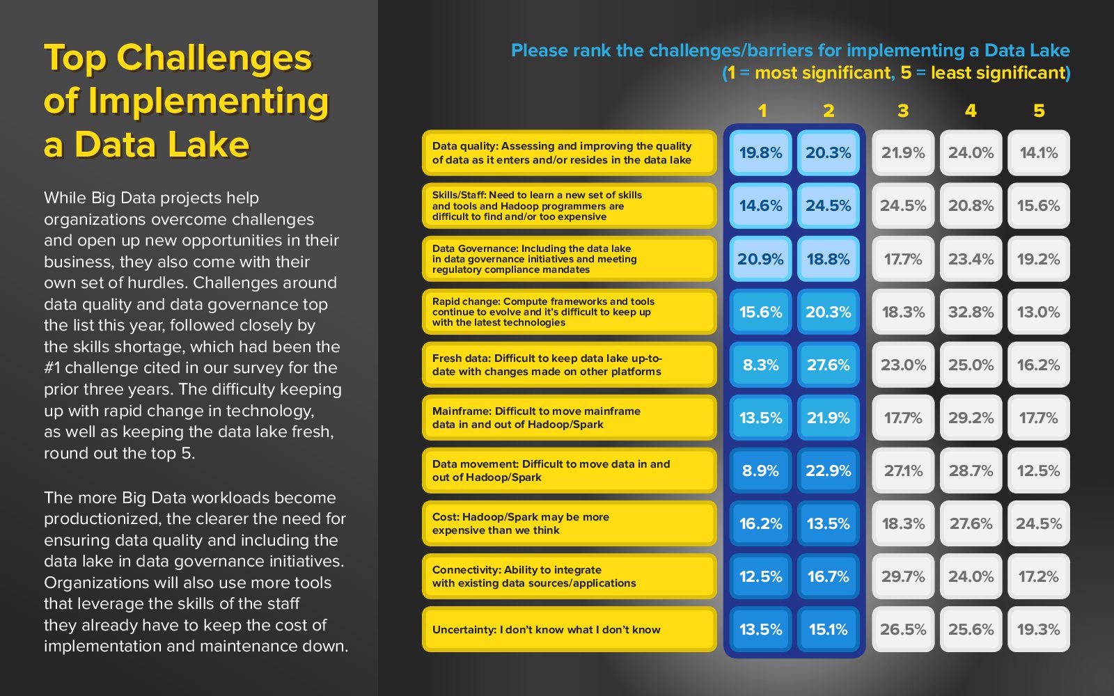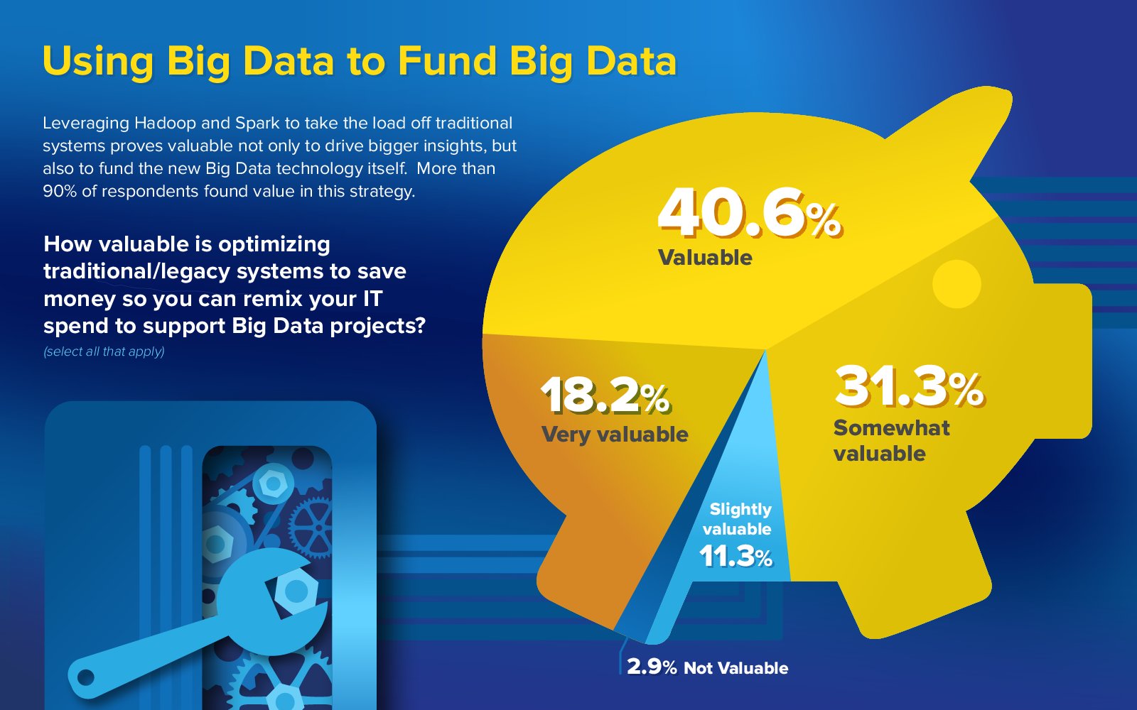 Syncsort发布了“2018年大数据趋势报告”,分析了今年大数据领域的五大趋势。目前,超过40%的IT专业人士正在使用Hadoop或Spark,超过30%的受访者参与概念验证或试点计划。