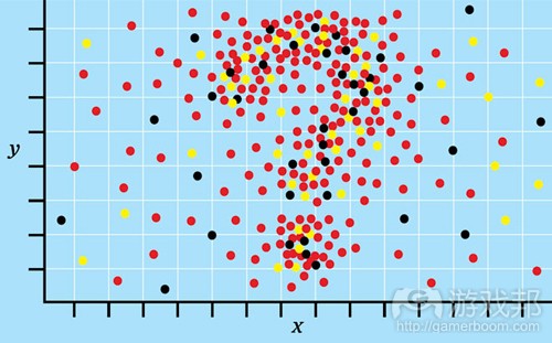 这时候你可能不会感到满足,因为标准偏差值过高了,超过平均值的40%。如此看来你的关卡中存在着过多变量。同时这里也存在着一些可利用的潜在元素,并且技能型玩家能够发挥其优势而造福自己。或者,你也可以严厉惩罚那些缺少技能的玩家。而作为游戏设计师,你最终需要做的便是判断这些结果(居于高度变量)是否符合预期要求。