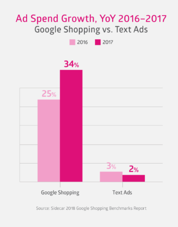 根据Sidecar发布的最新调查,美国零售商正在优先考虑Google Shopping的文字广告。根据对300多家美国零售商活动的分析,Google搜索网络的广告支出增长了20%,Google Shopping广告增长率(34%)远远高于文字广告(2%) 。