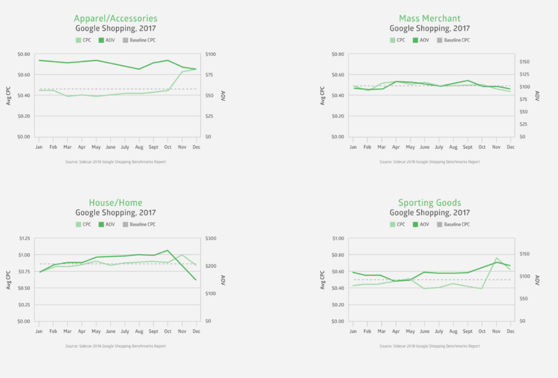 平均订单价值(AOV):汽车(222美元)、住宅/家(205美元)和珠宝(200美元);