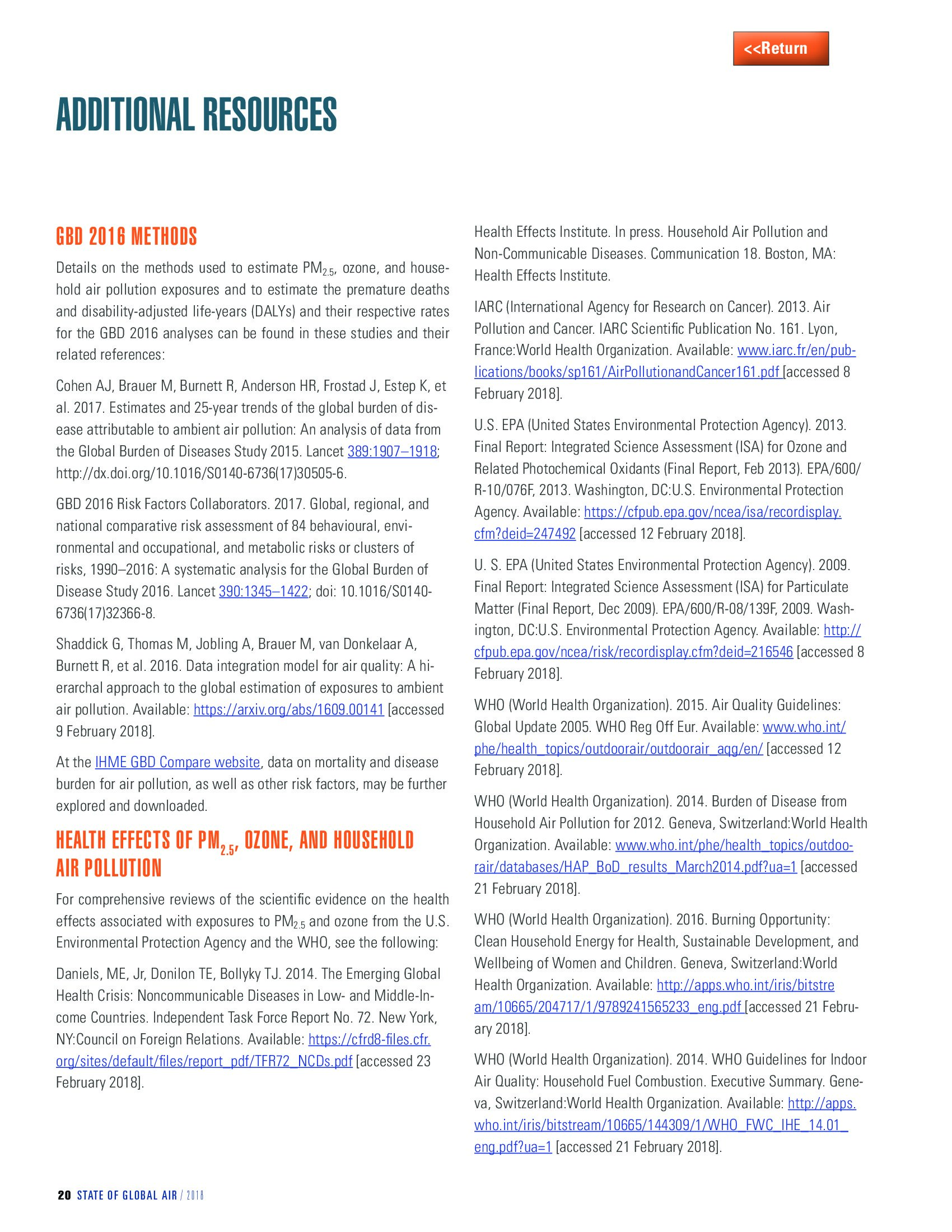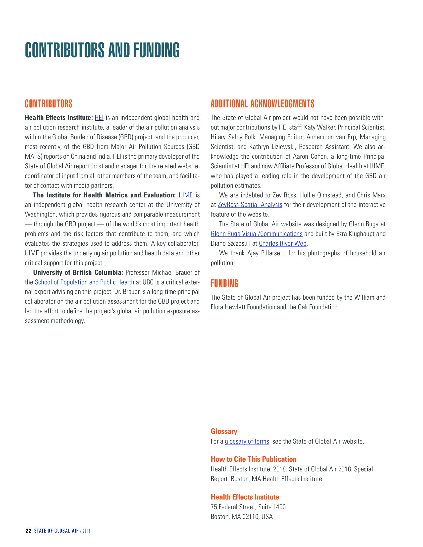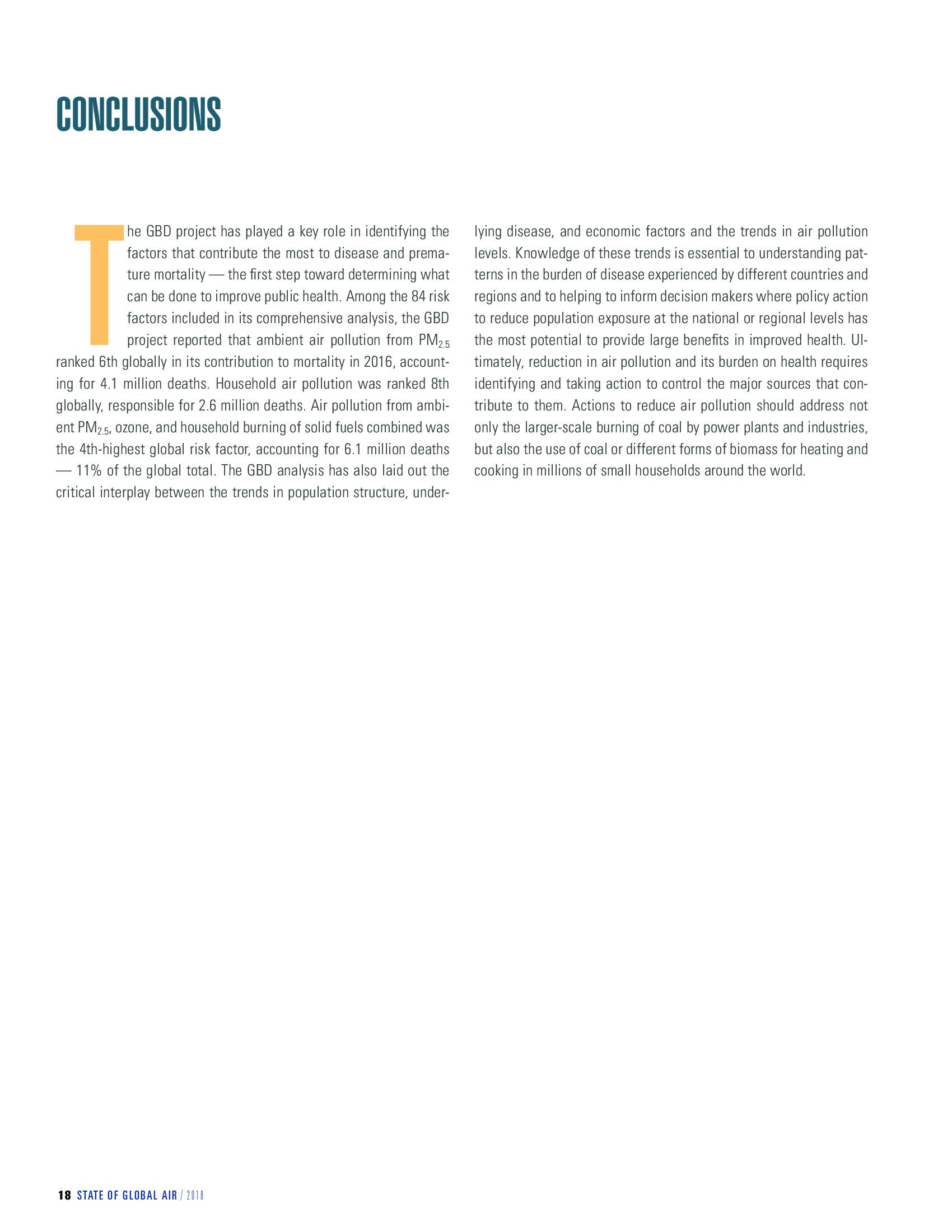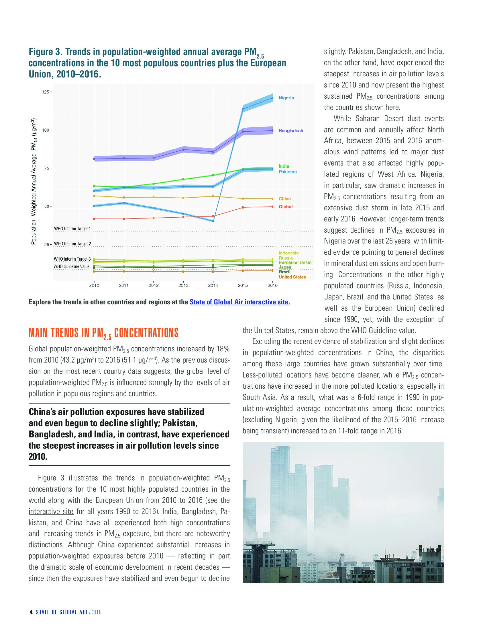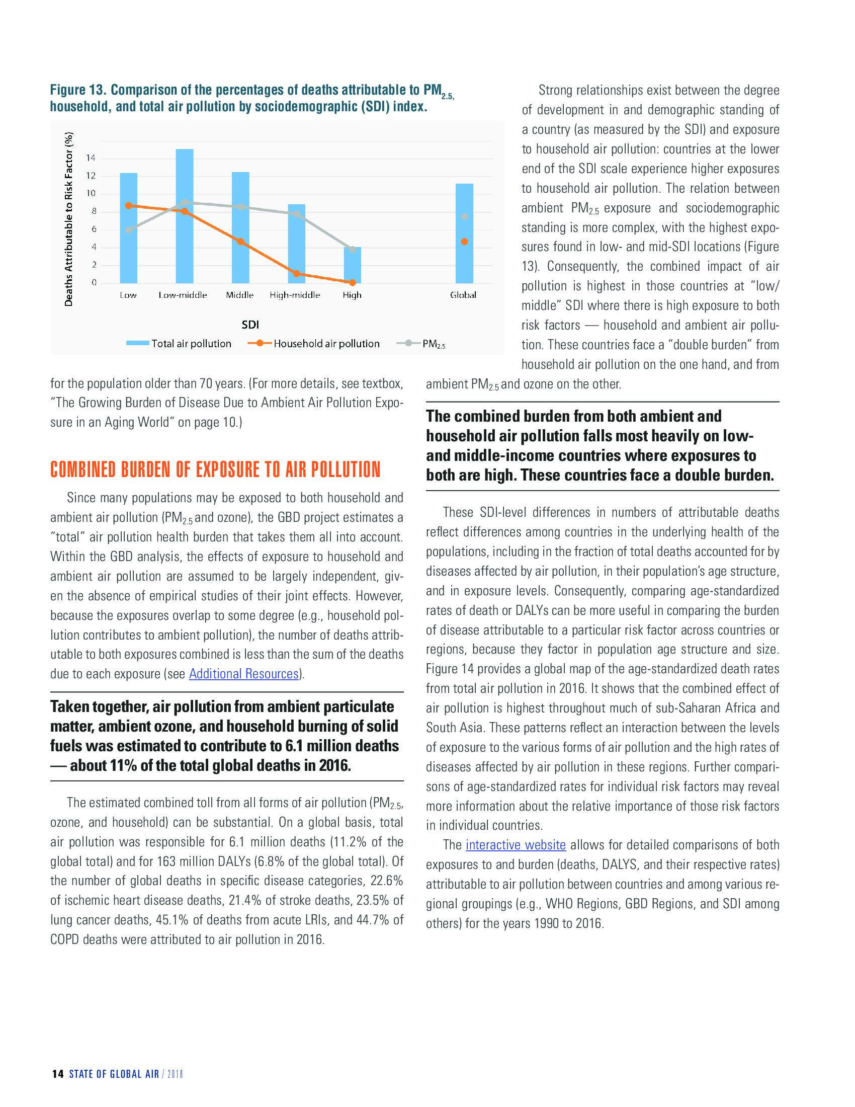 来自全球各地的调查已经证明,空气污染会影响人类的健康,例如导致哮喘或其他呼吸系统疾病,影响及时就医,心脏和肺部疾病导致的早亡等。IHME的报告“2018全球空气状况”介绍了全球空气污染最新情况,并分析了空气污染可能对人类健康产生的更广泛的影响。