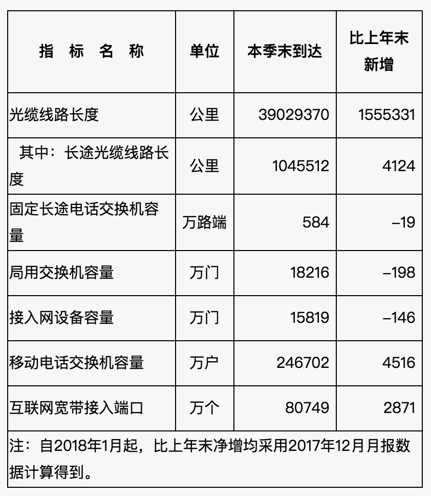 工信部:2018年Q1通信业主要通信能力 更多阅读:工信部:2016年Q1通信业主要通信能力工信部:2015年Q4中国通信业主要通信能力工信部:2018年第2季度通信业主要通信能力工信部:2015年3月份通信业经济运行情况工信部:2018年2月通信业主要指标完成情况工信部:2020年前三季度通信业经济运行数据情况工信部:2020年第四季度通信业主要通信能力工信部:2015年5月份通信业经济运行情况工信部:2015年5月份中国通信业经济数据运行情况工信部:2015年11月通信业主要指标完成情况工信部:2016年8月通信业主要指标完成情况工信部:2020年通信业统计数据公报工信部:2016年11月份通信业经济运行情况工信部:2014年2月份通信业经济运行情况工信部:2020年1-11月通信业经济运行数据情况