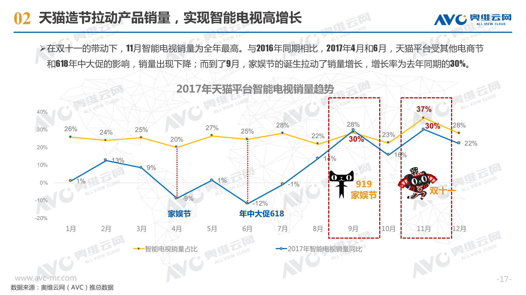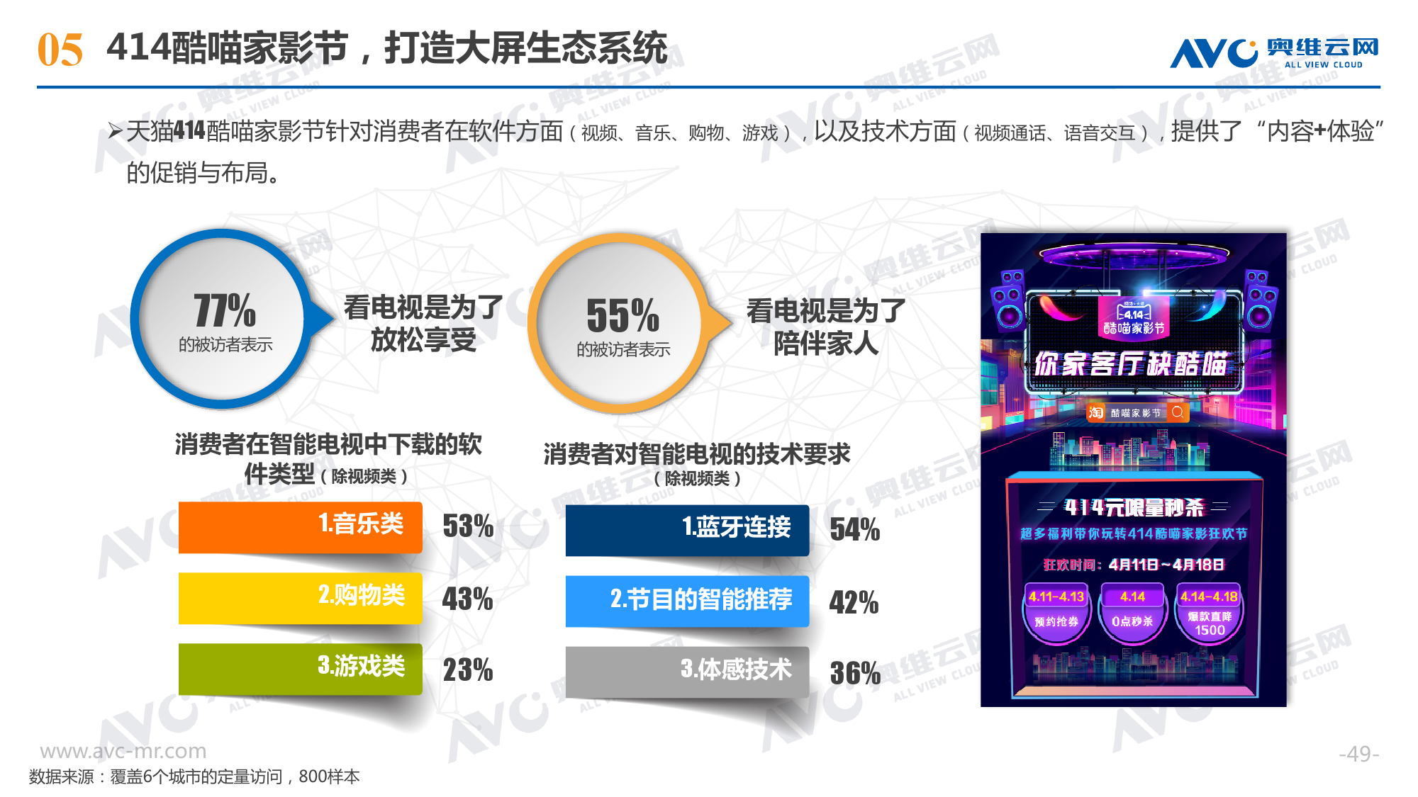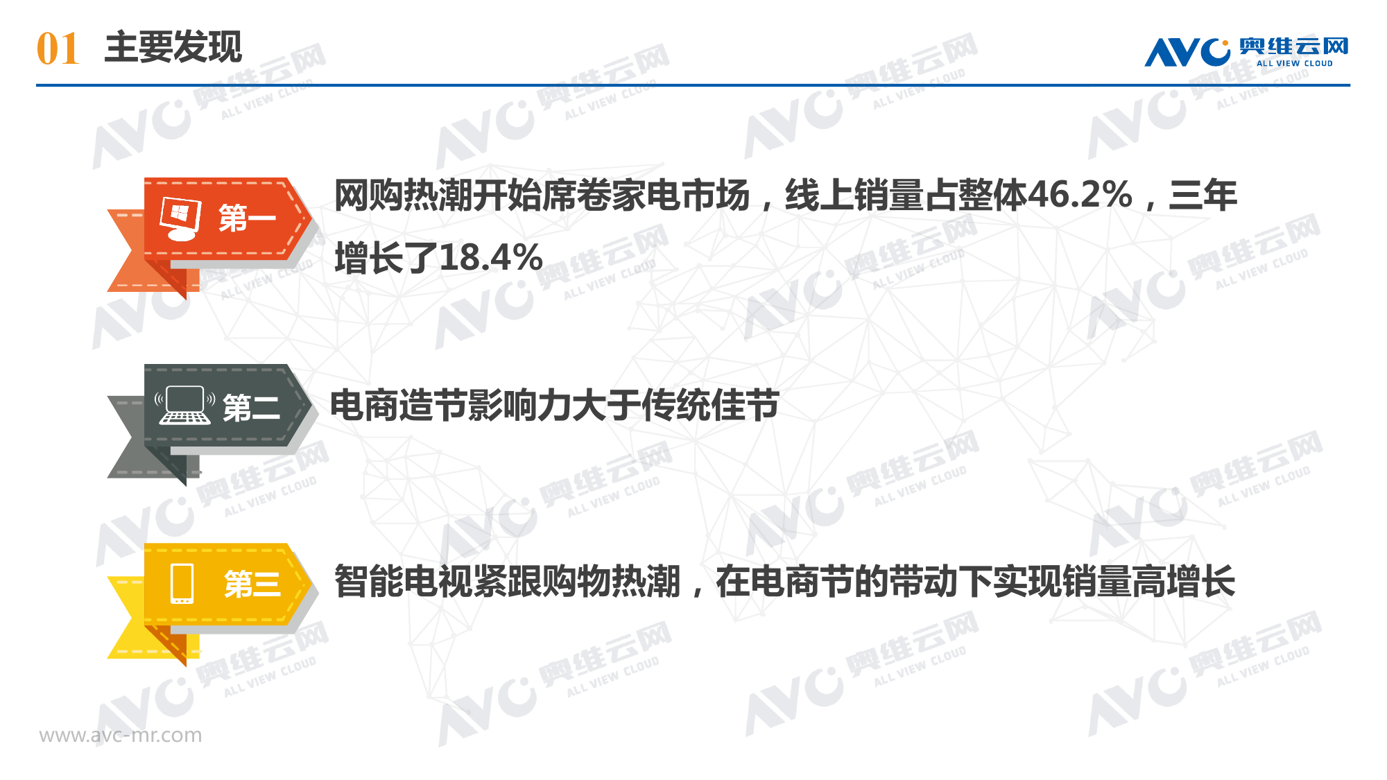 发现三:各大电商的造节活动拉动智能电视的线上销量。其中,天猫“414酷喵家影节”期间产品总销量比平时翻三倍