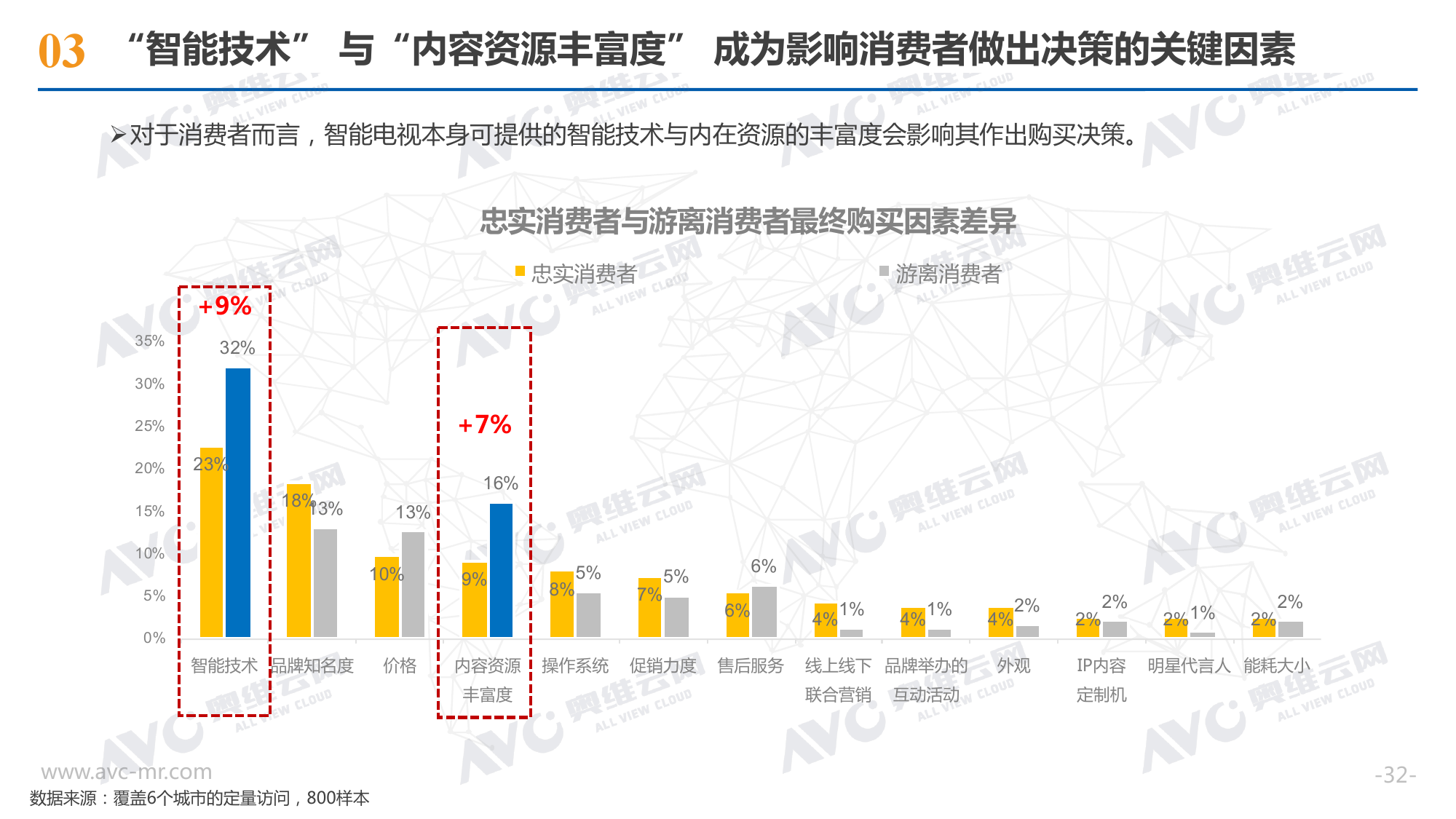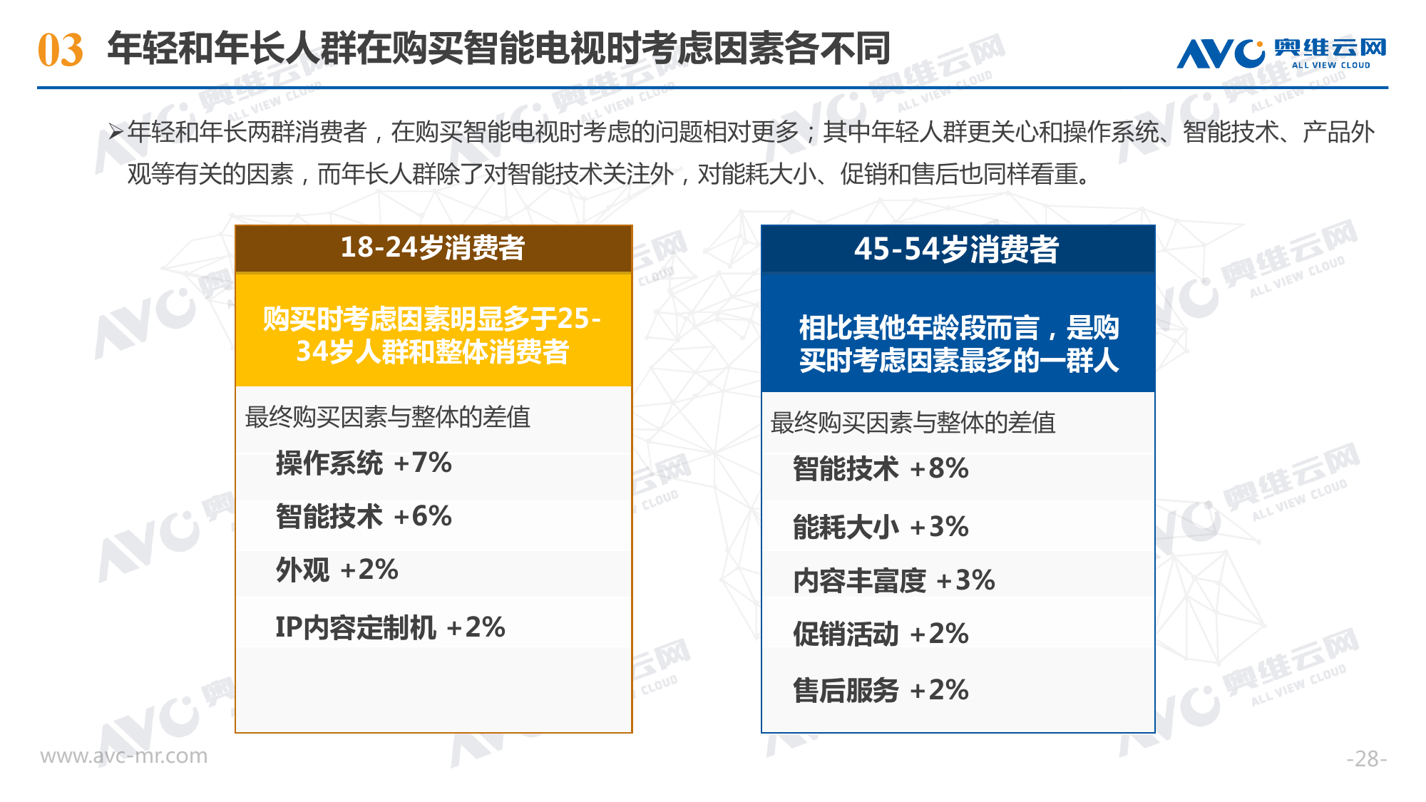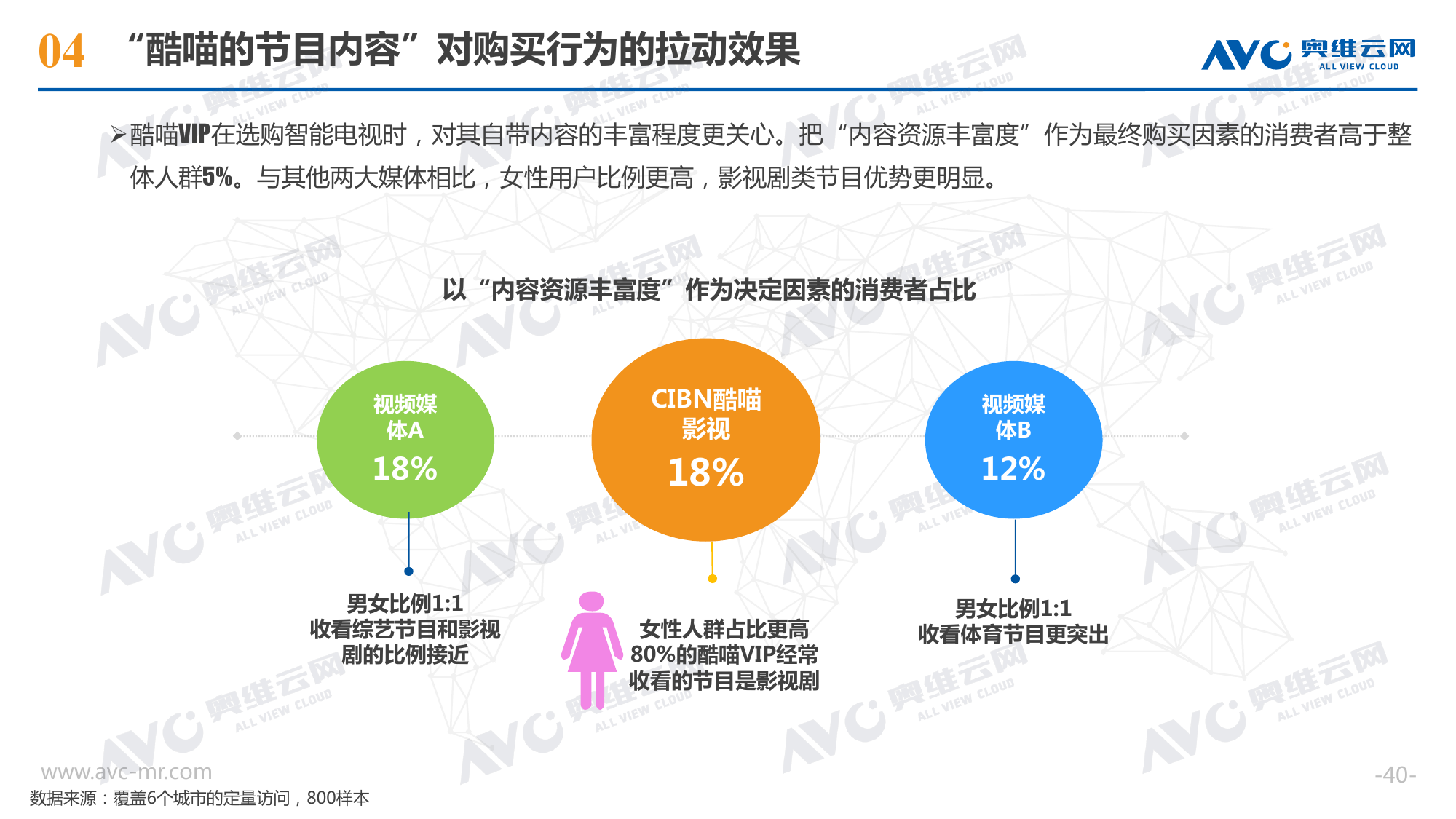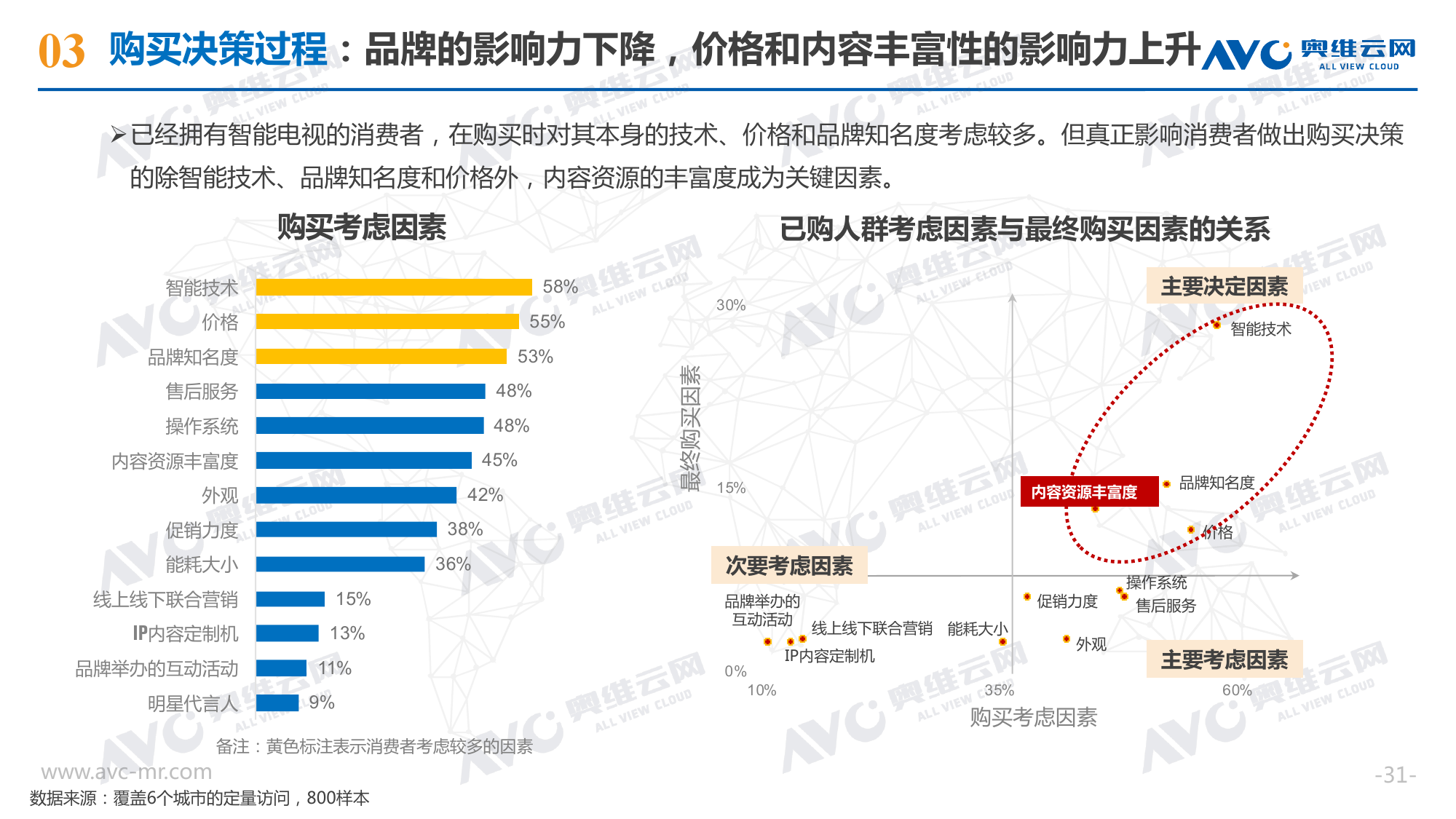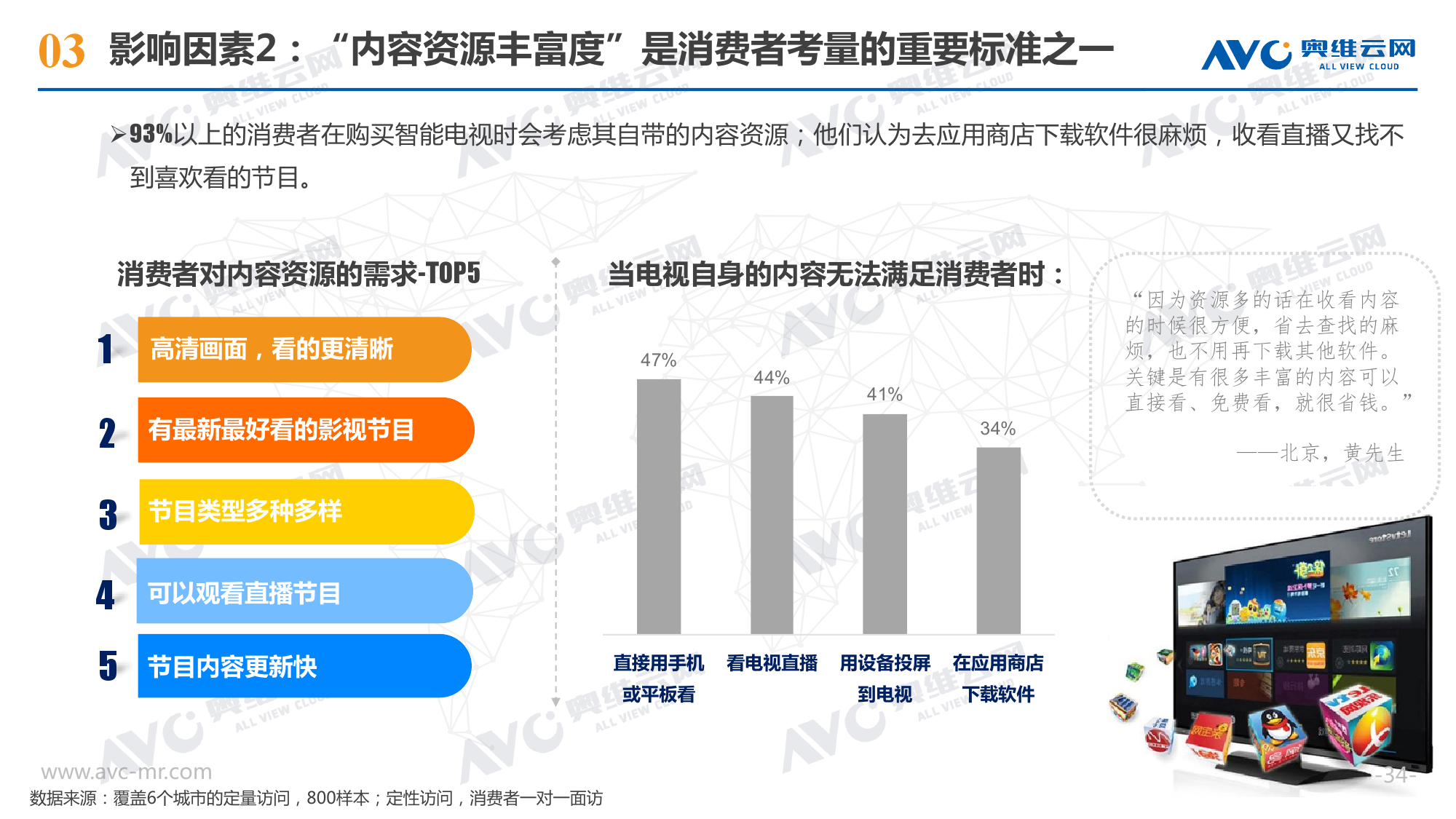 发现八:“内容资源丰富度”成为消费者考量的重要标准之一,有93%以上的消费者在购买智能电视时会考虑其自带的内容资源
