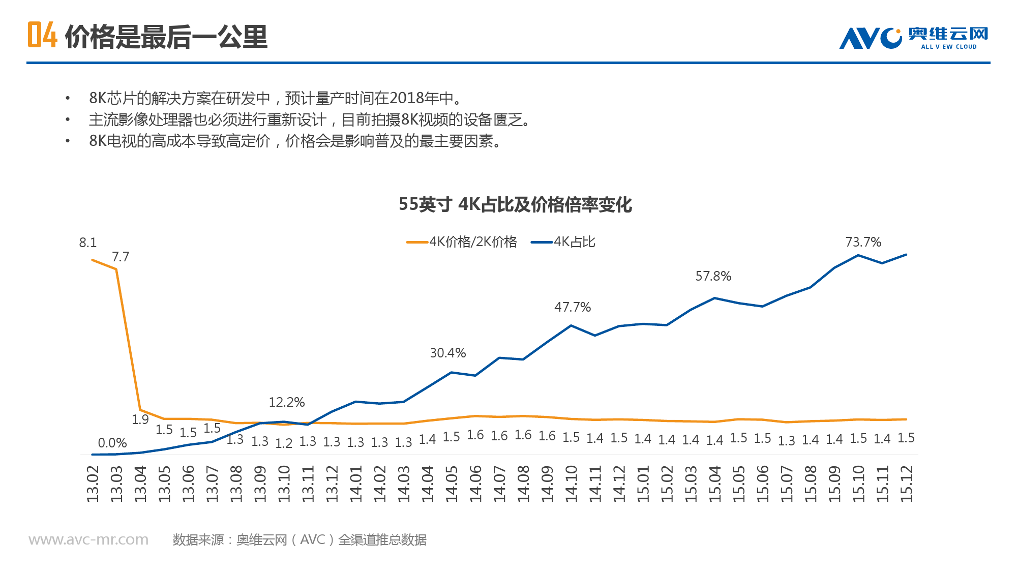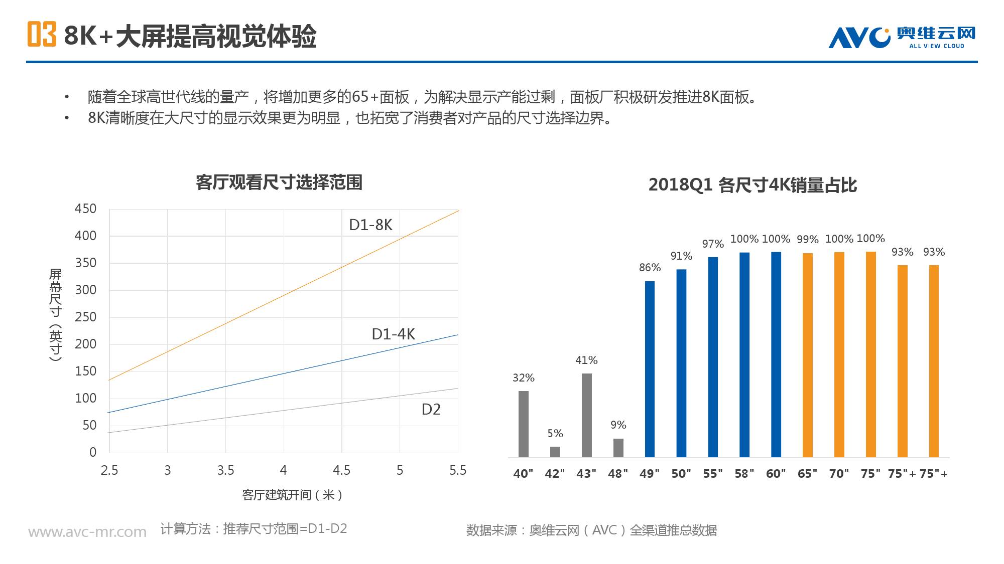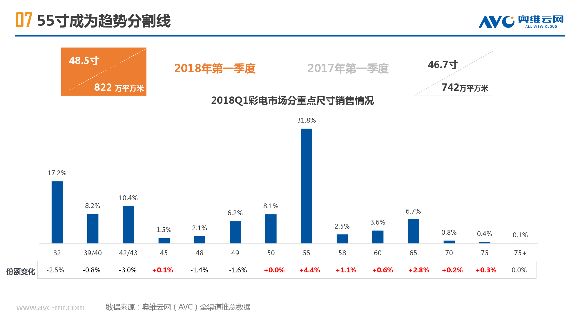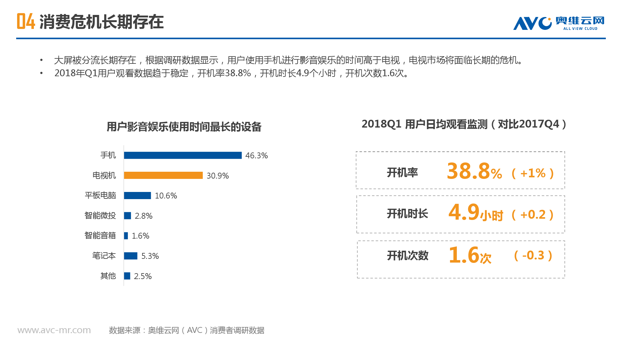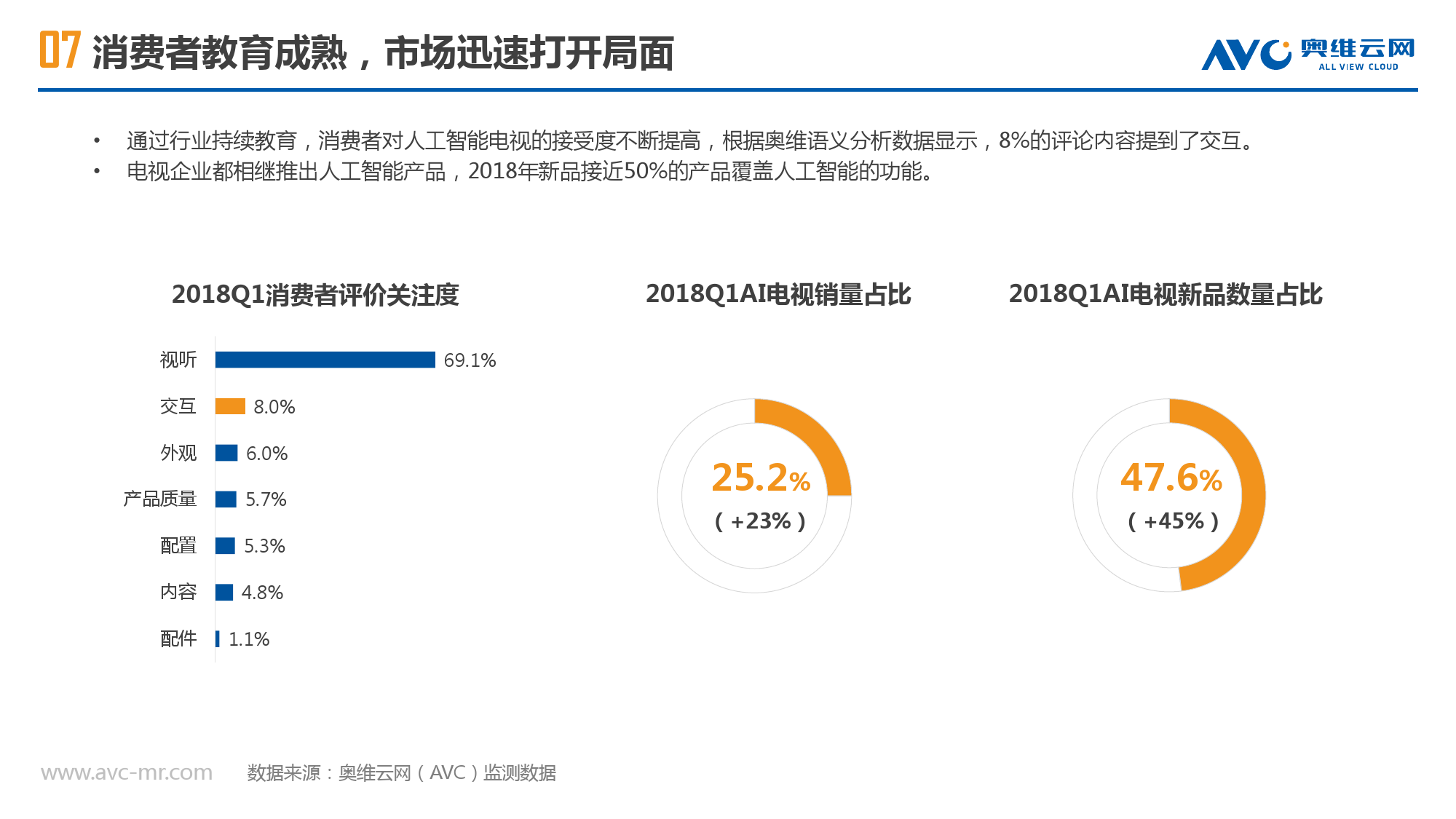 奥维云网(AVC)分析认为,2018年第一季度彩电市场表现特点有: