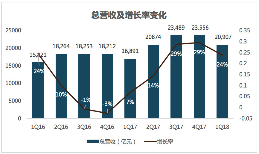 百度披露了1Q18的业绩,营收表现抢眼,同比增长31%至209亿元;运营利润增长128%至46亿元;搜索+信息流业务双引擎推动用户快速增长,百度APP日活跃用户达到1.37亿,同比增长18%,用户使用时长同比增长30%。