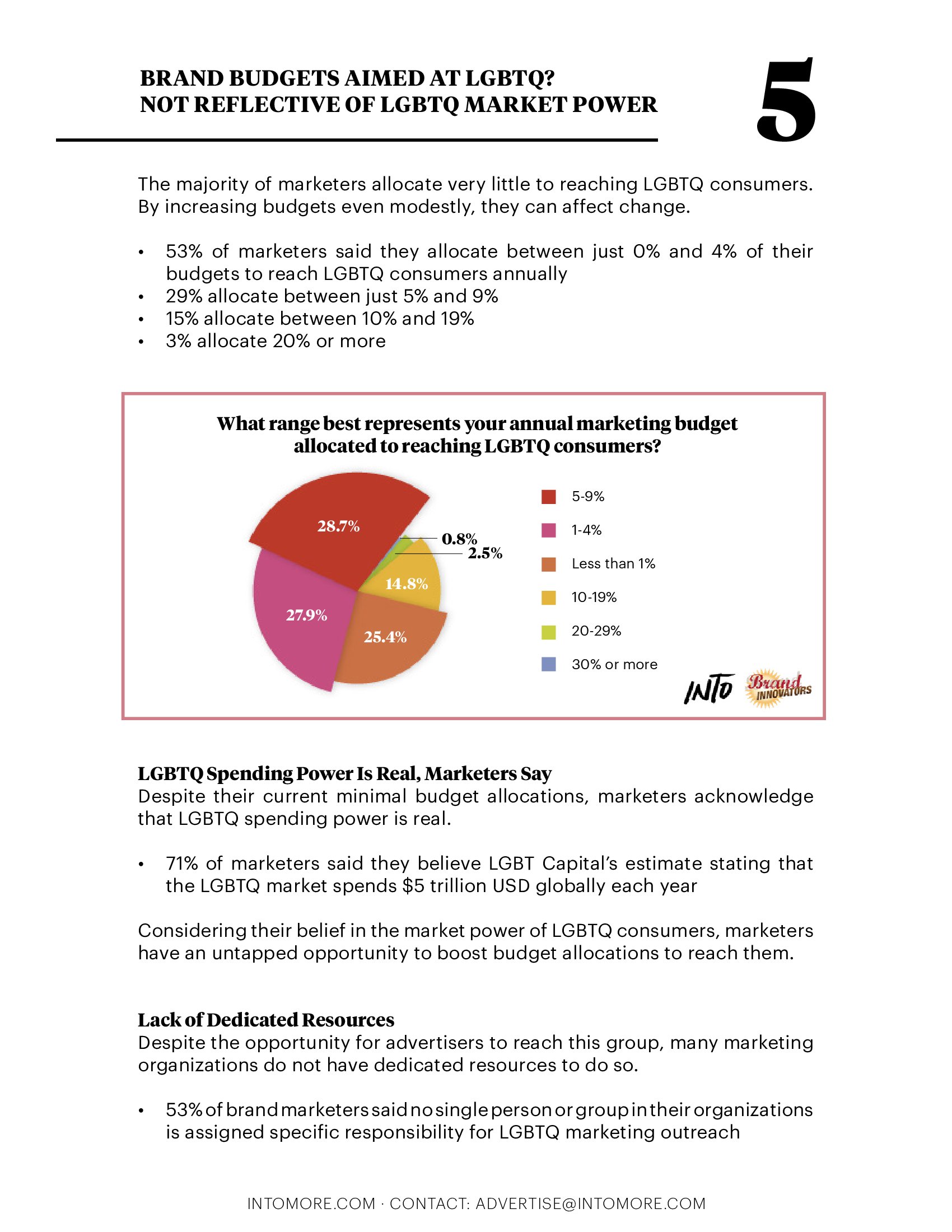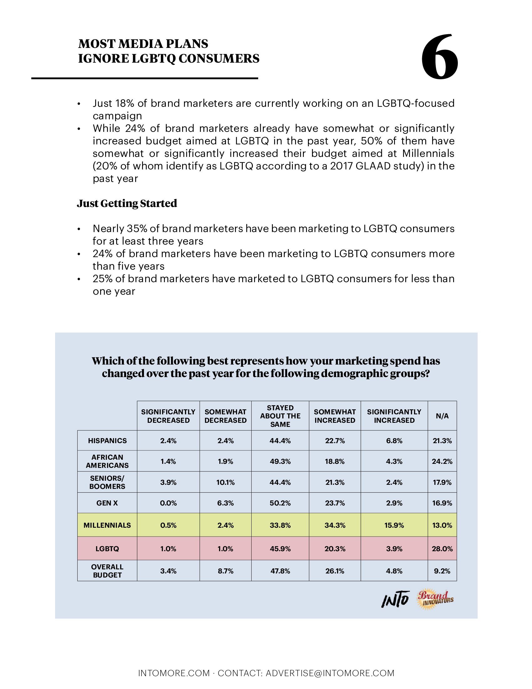 INTO和Brand Innovators发布了最新的“LGBTQ营销报告”。零售营销商正在增加针对年轻一代的支出,反映了他们优先考虑青年人。大约一半的营销人员增加了针对千禧一代的营销支出,不到1/4的受访者增加了针对婴儿潮一代和老年人方面的支出。