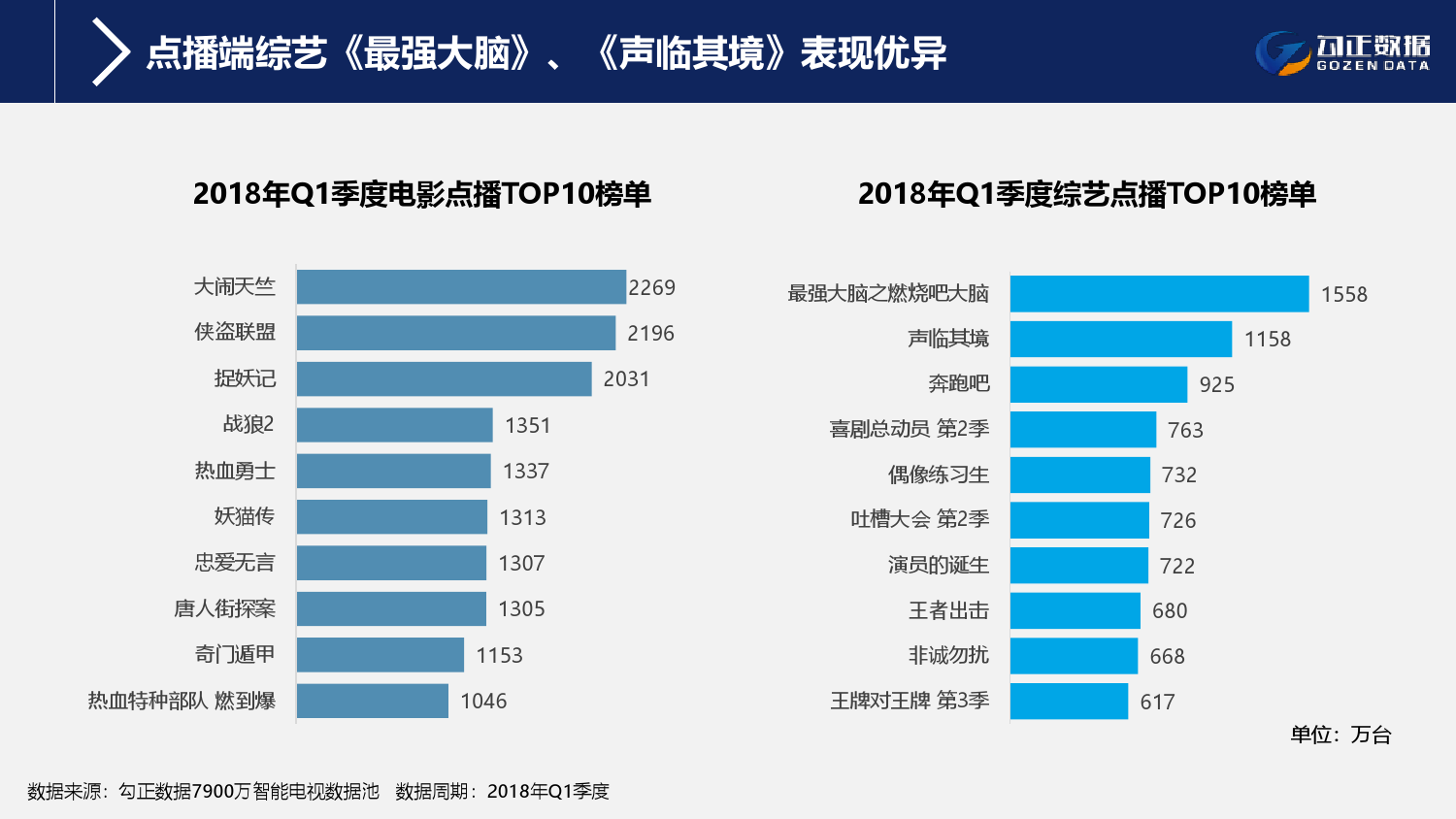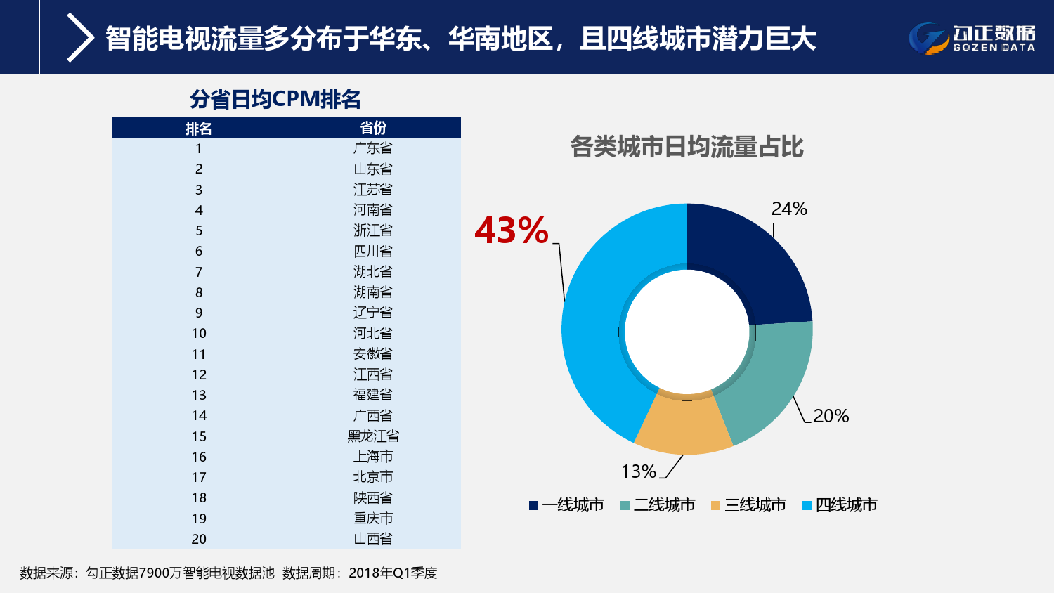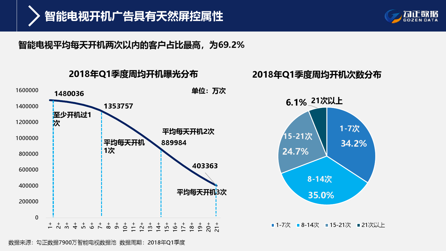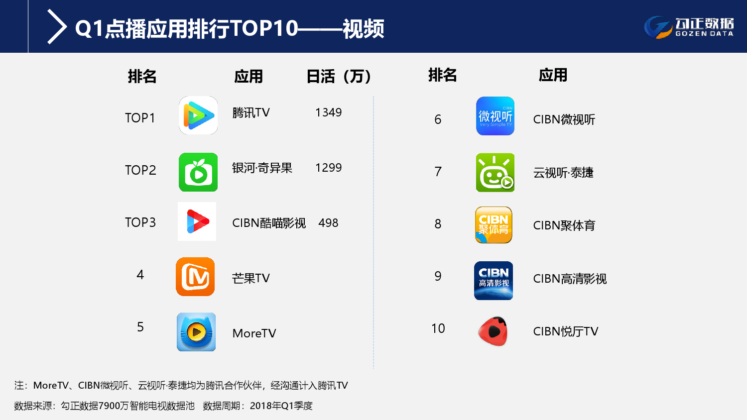 1、智能电视终端规模持续稳步增长,用户使用行为持续活跃且粘性增长;截至2018年Q1季度,智能电视保有量2.1亿台,激活量攀升至1.6亿台,增长11%;智能电视月到达率91%,用户日均使用时长311分钟,其中重度用户占比42.7%;