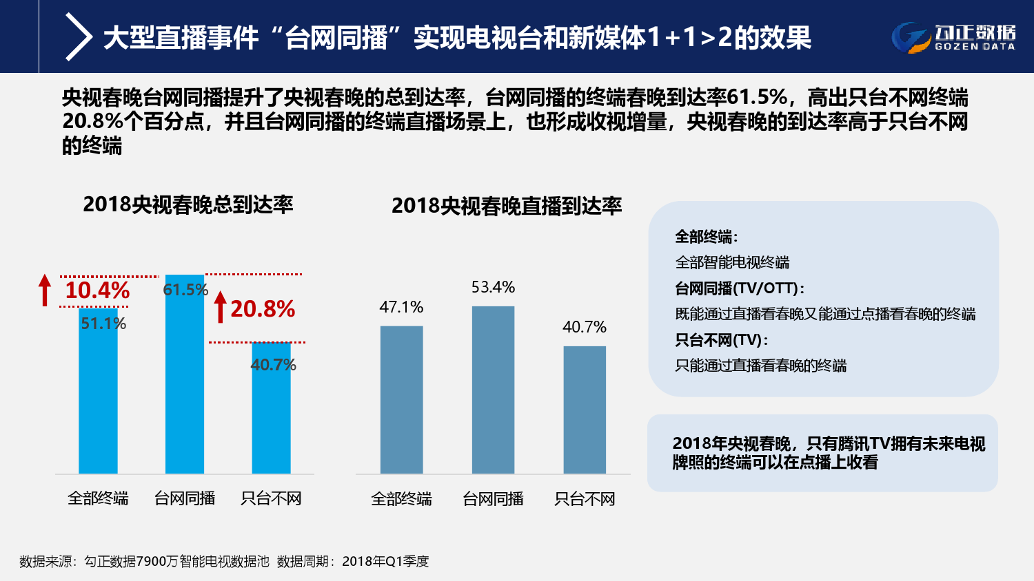 3、大型直播事件“台网同播”创造新的收视增长点,为电视台和新媒体带来1+1>2的效果;