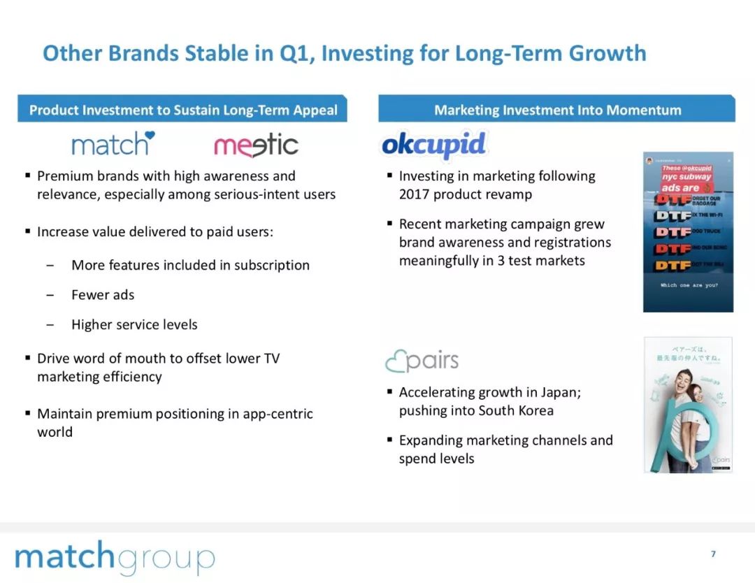 其他产品表现平稳,持续投入以驱动长期增长。Match和Meatic两款高婚恋意愿的产品工作重点是提升产品体验以保持长期吸引力;okcupid则投入市场活动以配合2017年的产品改进。同时加快Paris在日本的增长,并将产品扩大至韩国市场。