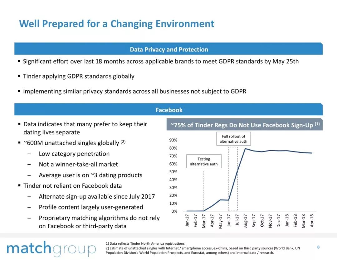 面对Facebook高调进军约会市场的举动,公司认为并不足惧。数据显示多数用户希望把约会生活分开,单身约会市场的全球规模高达6亿仍未被触达,市场渗透率很低,不是赢家通吃的市场,平均每个用户会使用3个约会软件。Tinder已经不再依赖Facebook登陆,资料也主要来自用户自己生产。