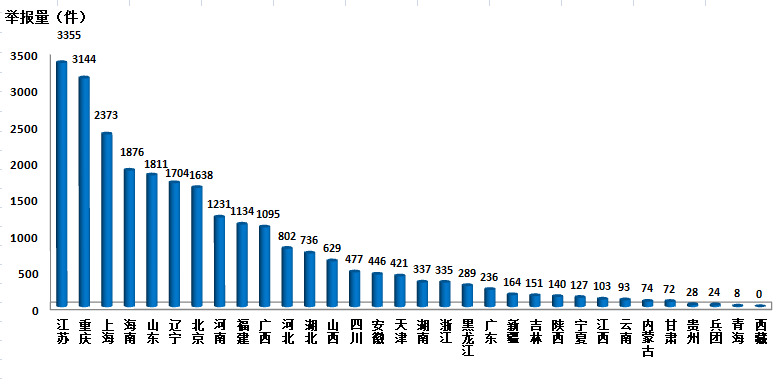 其中,电话举报环比增幅显著、同比略有下降。3月,平台共录入电话举报25054件,相比上月增加15931件,环比增长174.6%;相比去年同期减少2270件,同比降低8.3%。其中数据录入比较完整的省(直辖市)有:重庆、上海、海南、江苏、辽宁、北京等,城市有:无锡、苏州、南通、沈阳、青岛、厦门等。