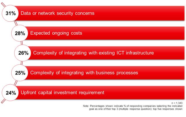 前期和持续成本也成为一个重要的担忧所在。许多企业对于“物联网部署规模扩大对成本造成的影响,以及供应商对于成本节约和效率提升承诺的可复制性程度究竟如何”并不清楚。在某些情况下,这反映了商业模式转变造成的影响。