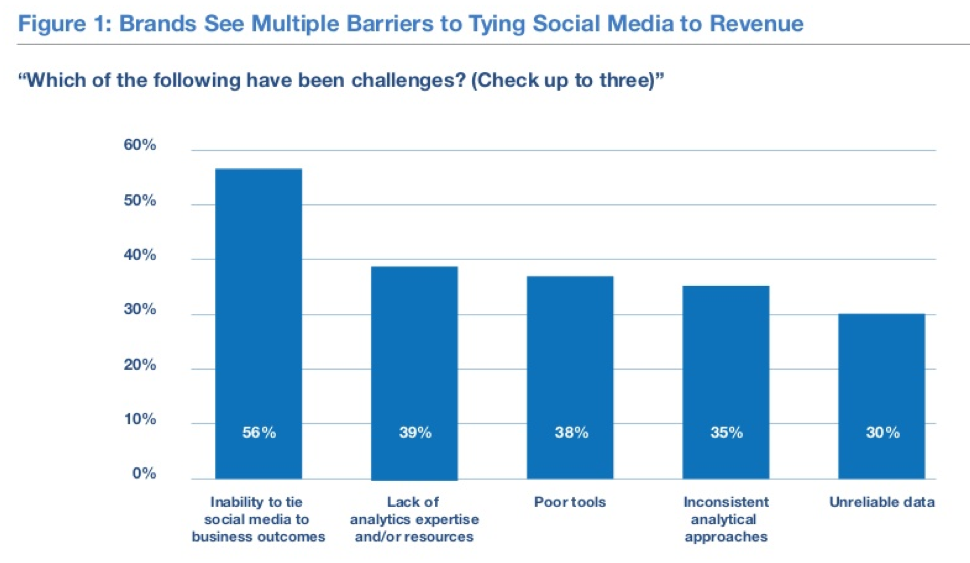 - 不能将社会化媒体营销投入和相应的商业产出关联起来(占56%)