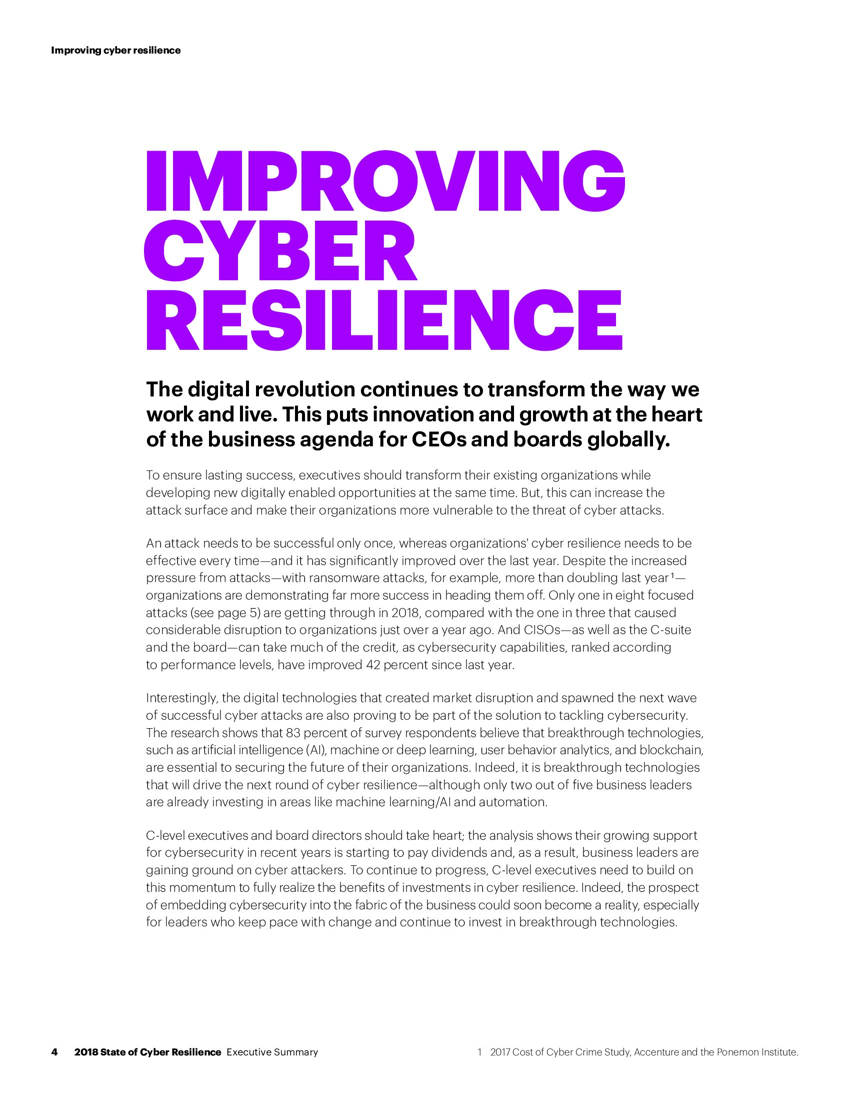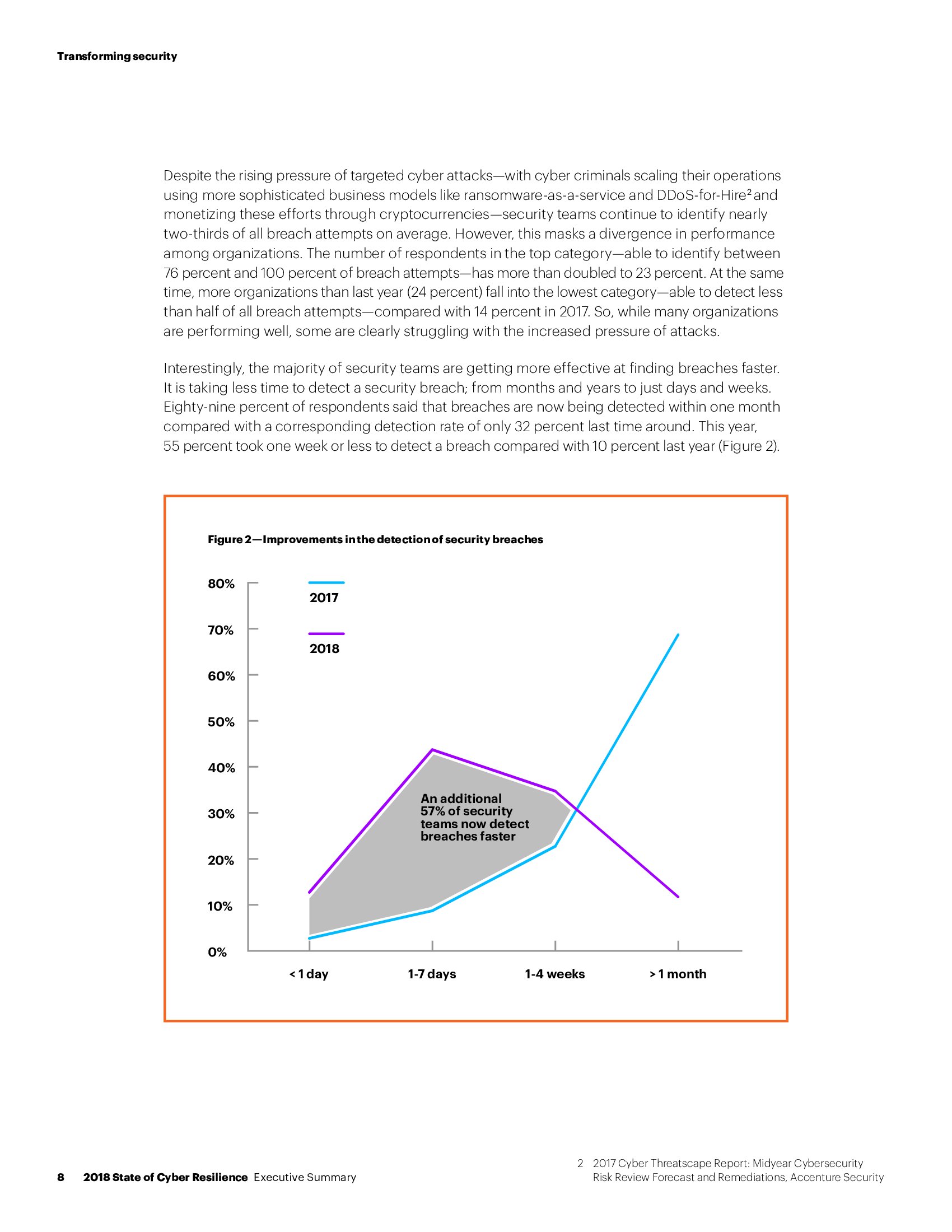 根据埃森哲发布的“2018年网络防卫报告”,企业正在防卫有针对性的网络攻击的破坏性影响方面取得进展,证明最近的安全投资取得成效。尽管去年有针对性的网络攻击数量翻了一番,但企业正在提高网络防卫,并证明它们在压力下可以表现更好。