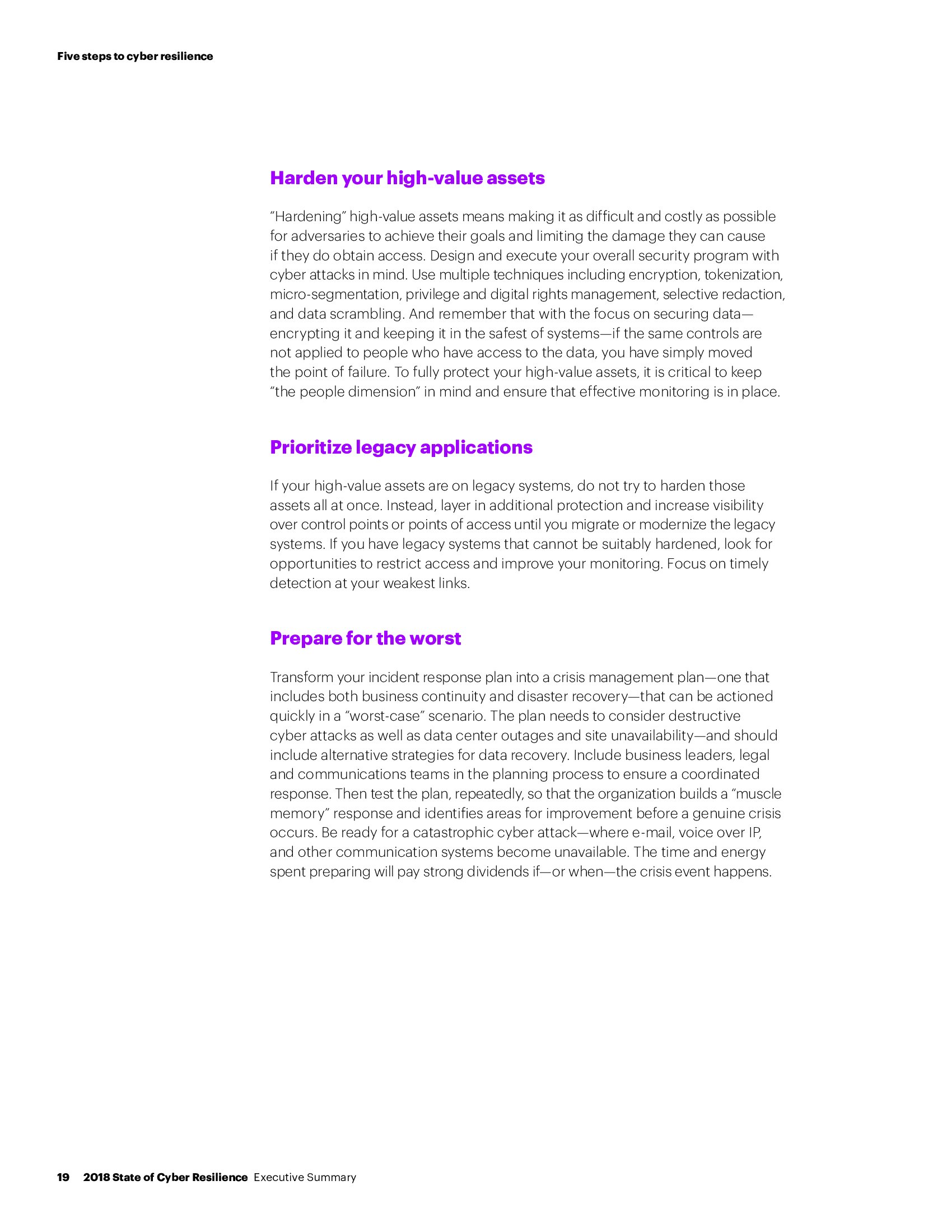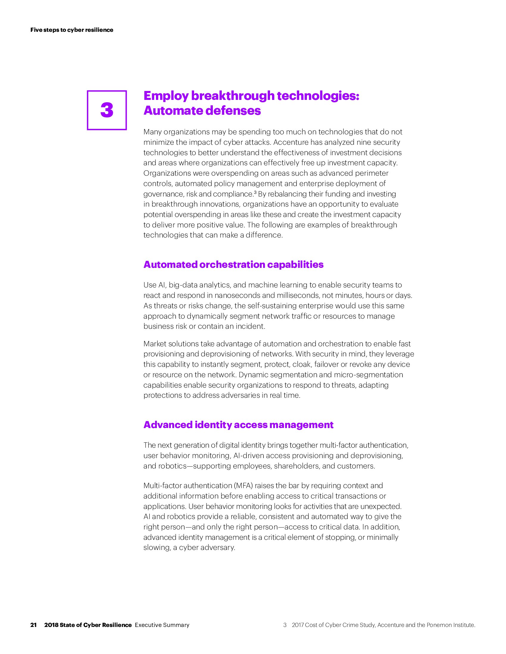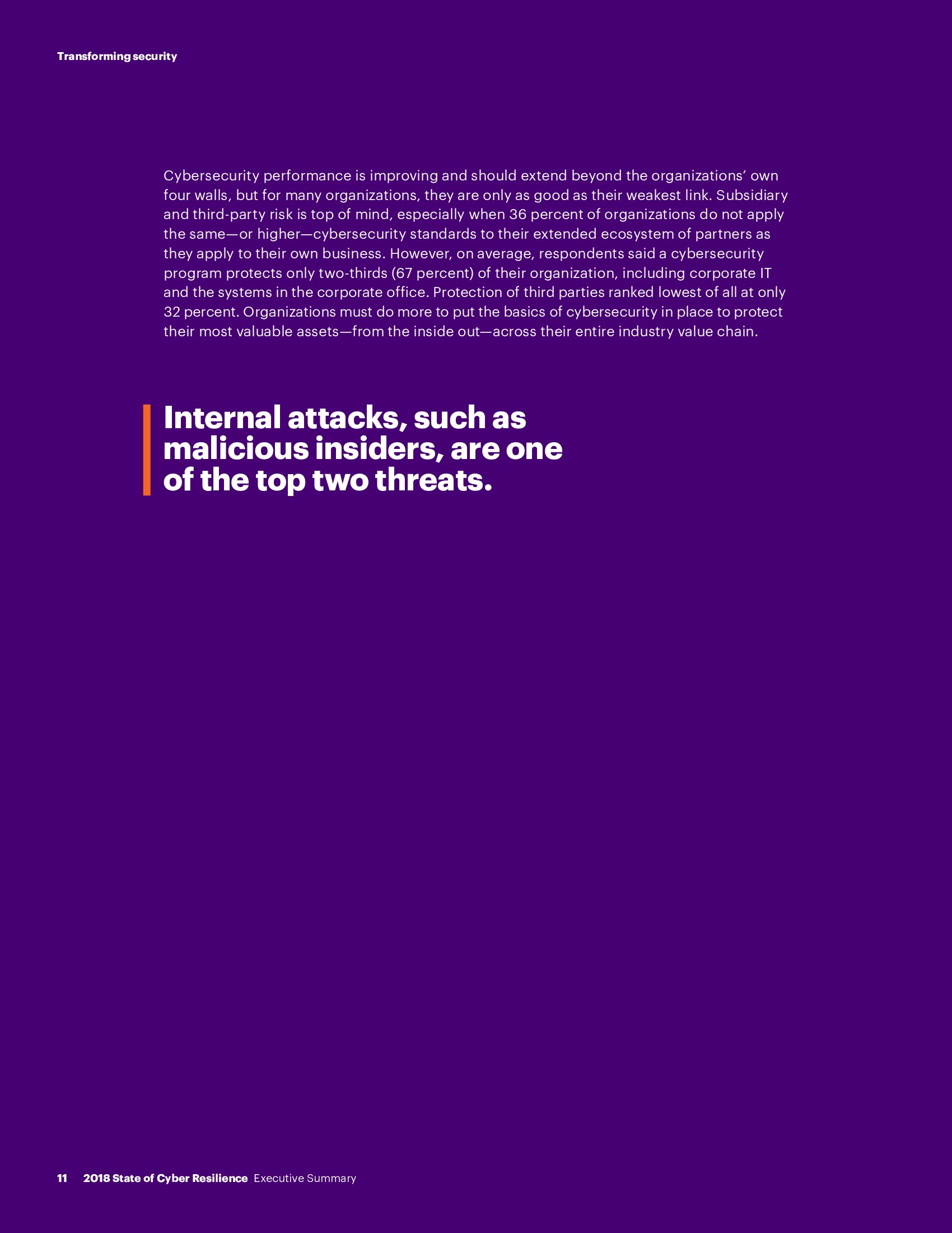 技术是解决方案的重要组成部分。 83%的受访者认为突破性技术,如人工智能、机器深度学习、用户行为分析和区块链,对于确保企业未来网络防卫至关重要。近年来,越来越多的支持和网络安全方面的投资开始带来收益。