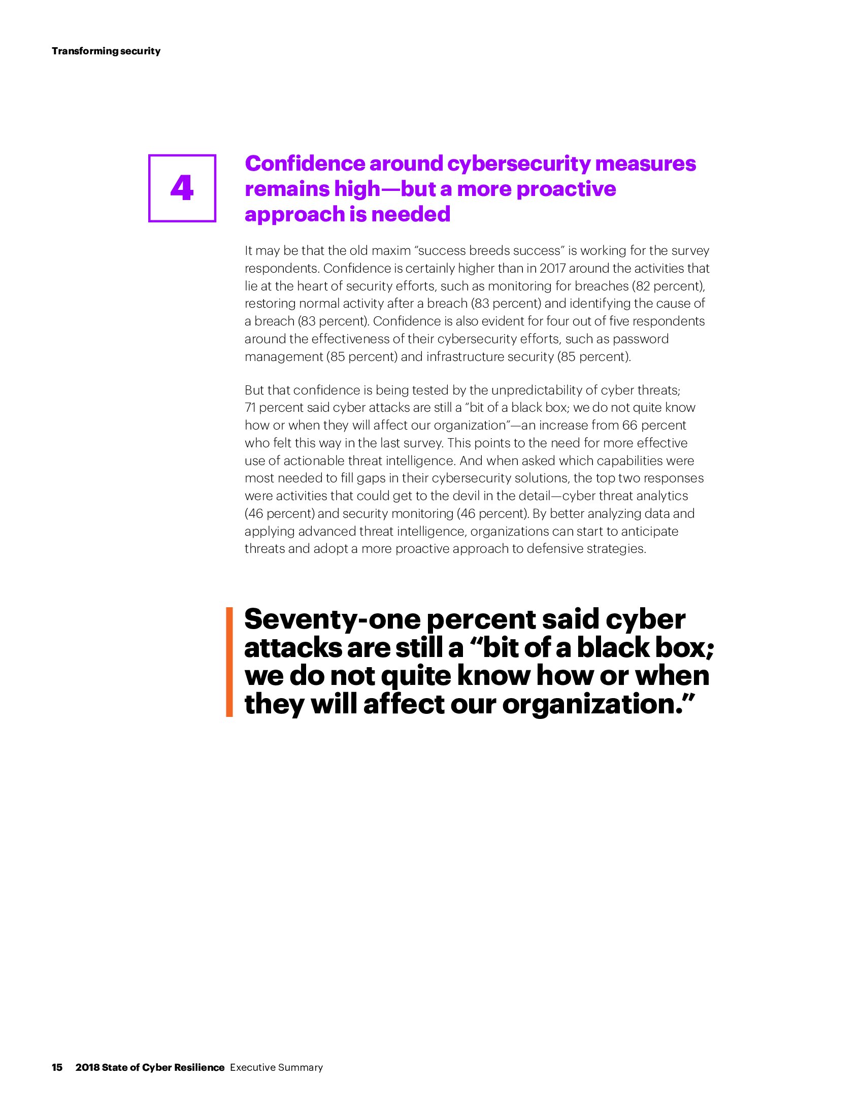 信心很高,但需要一种更积极主动的网络安全方法。超过80%的受访者对监控违规行为充满信心。但71%的受访者表示,网络攻击仍然是一个“黑盒子”,不知道他们何时或如何影响他们的企业。