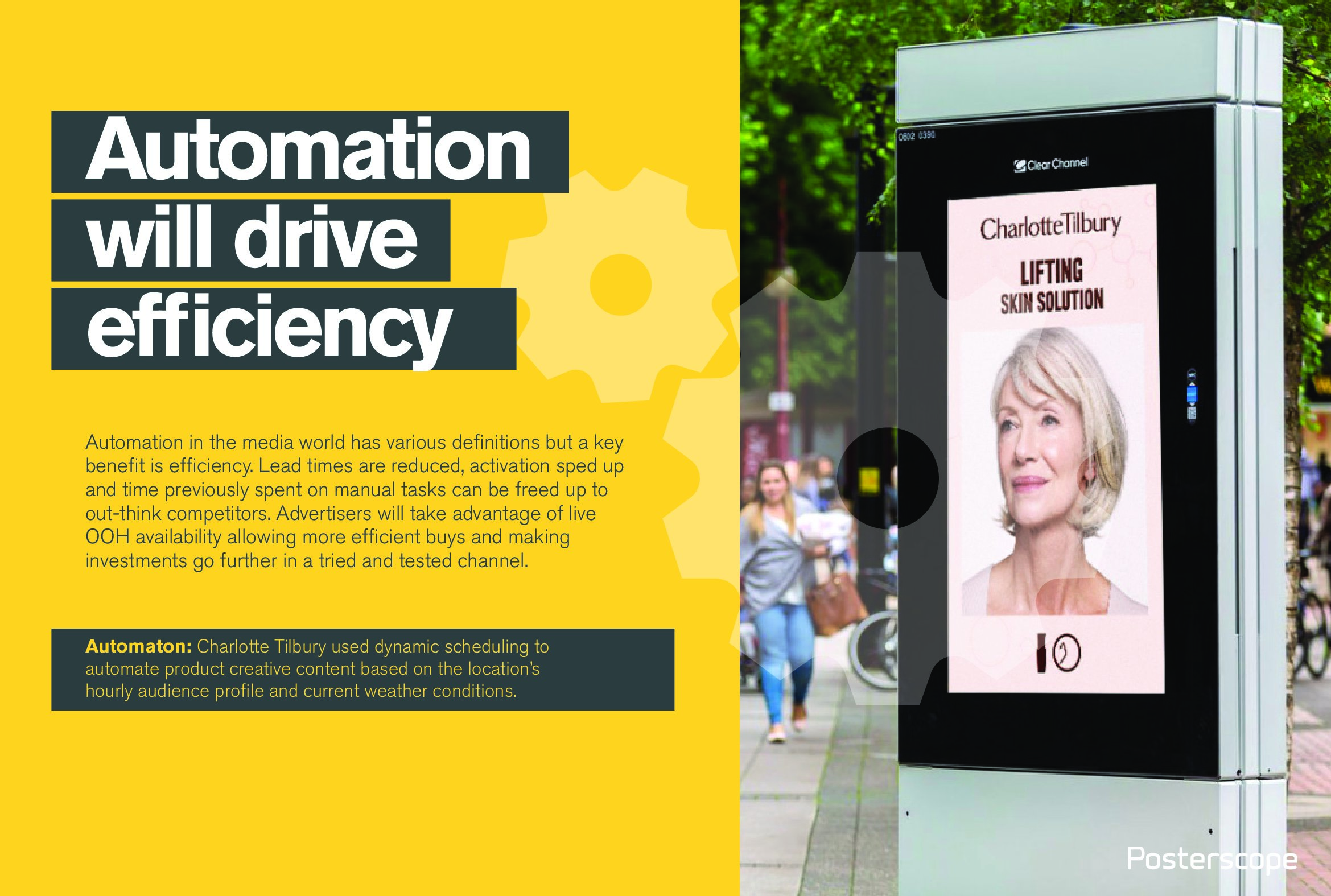 - 自动化提高效率。媒体世界对自动化的定义不同,但可以肯定的是效率。广告商利用直播式OOH将提高转化的效率。
