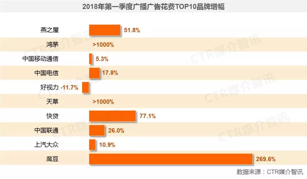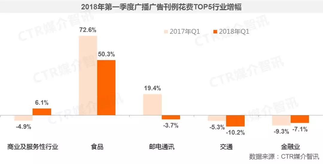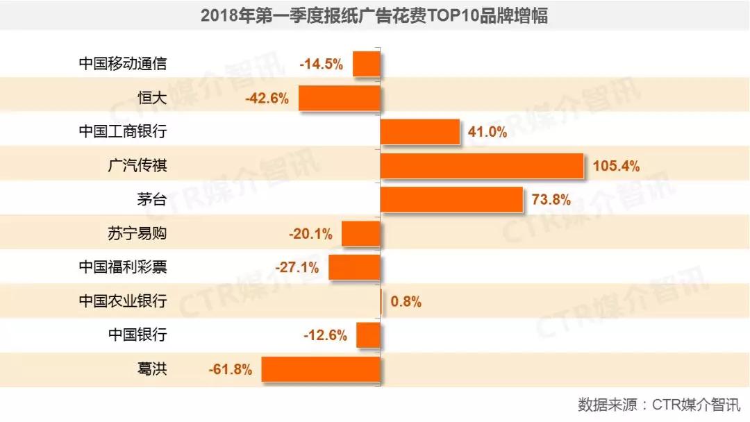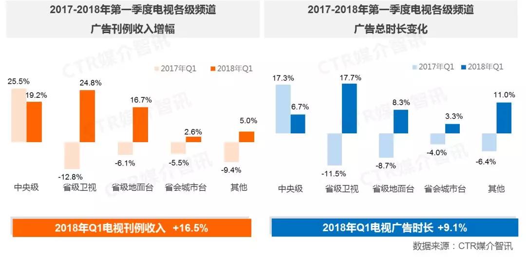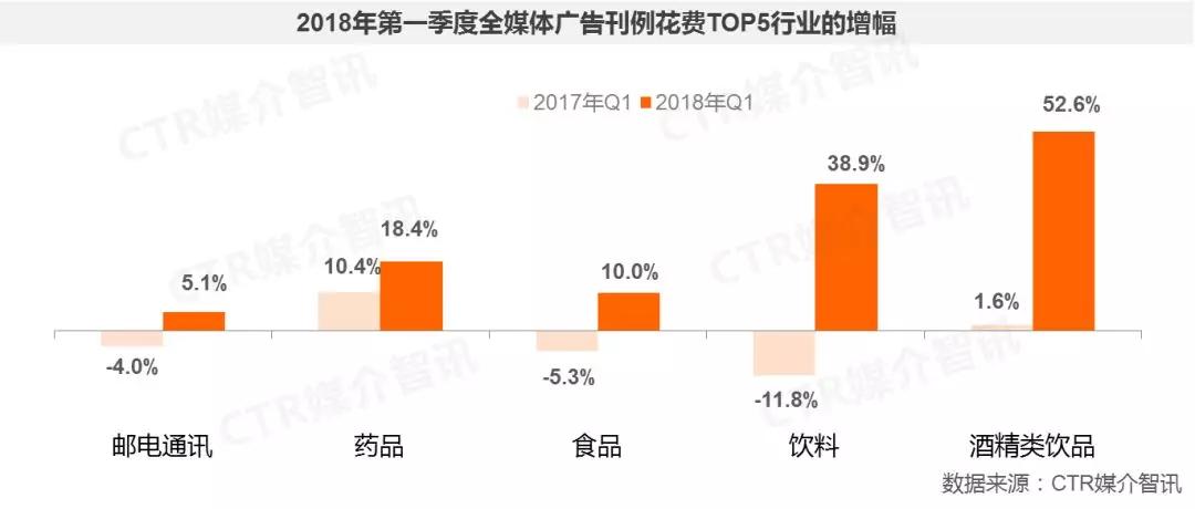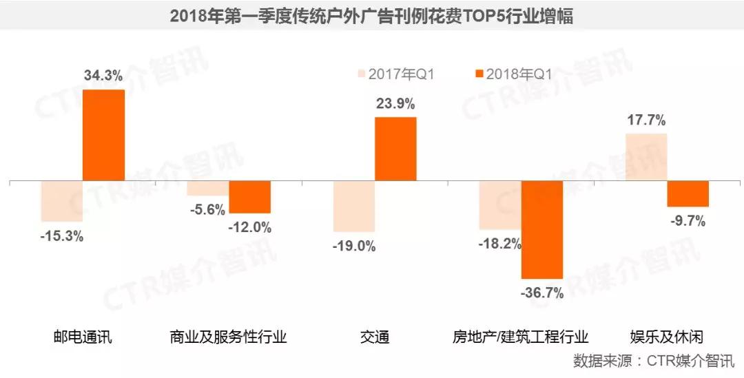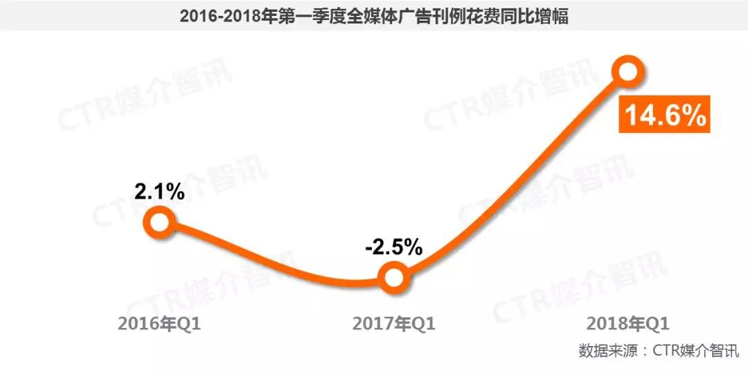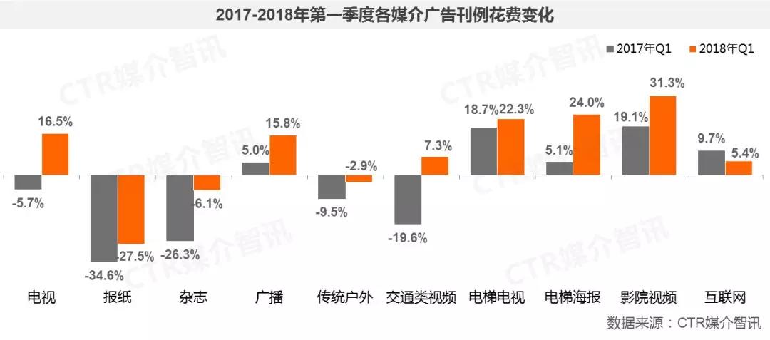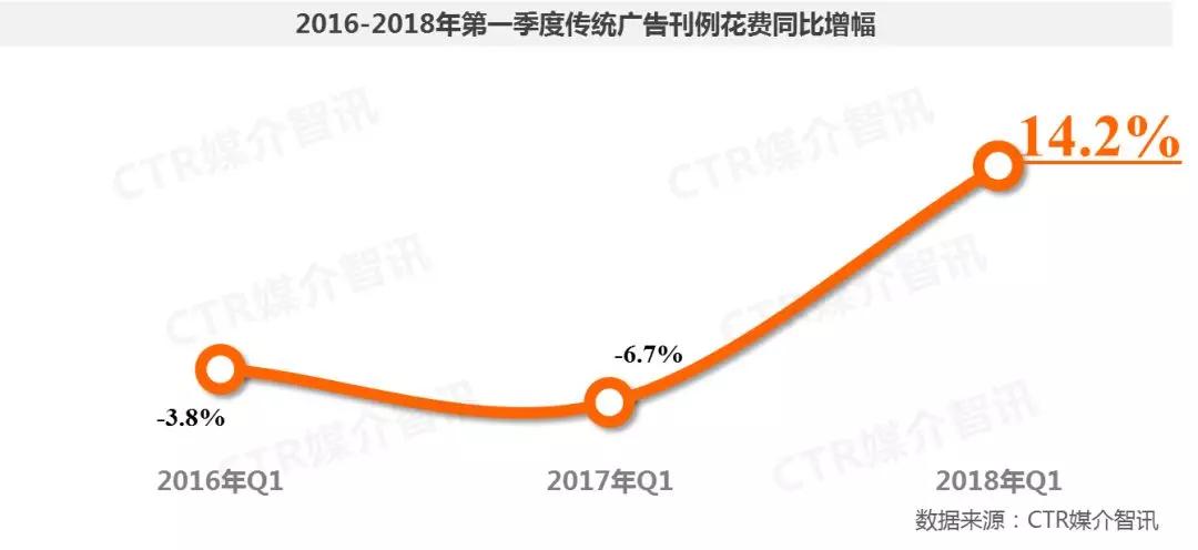 ↗ 2018年一季度,中国广告市场出现了低位反弹,传统媒体的止跌回升给予广告市场整体增长更大推动力。