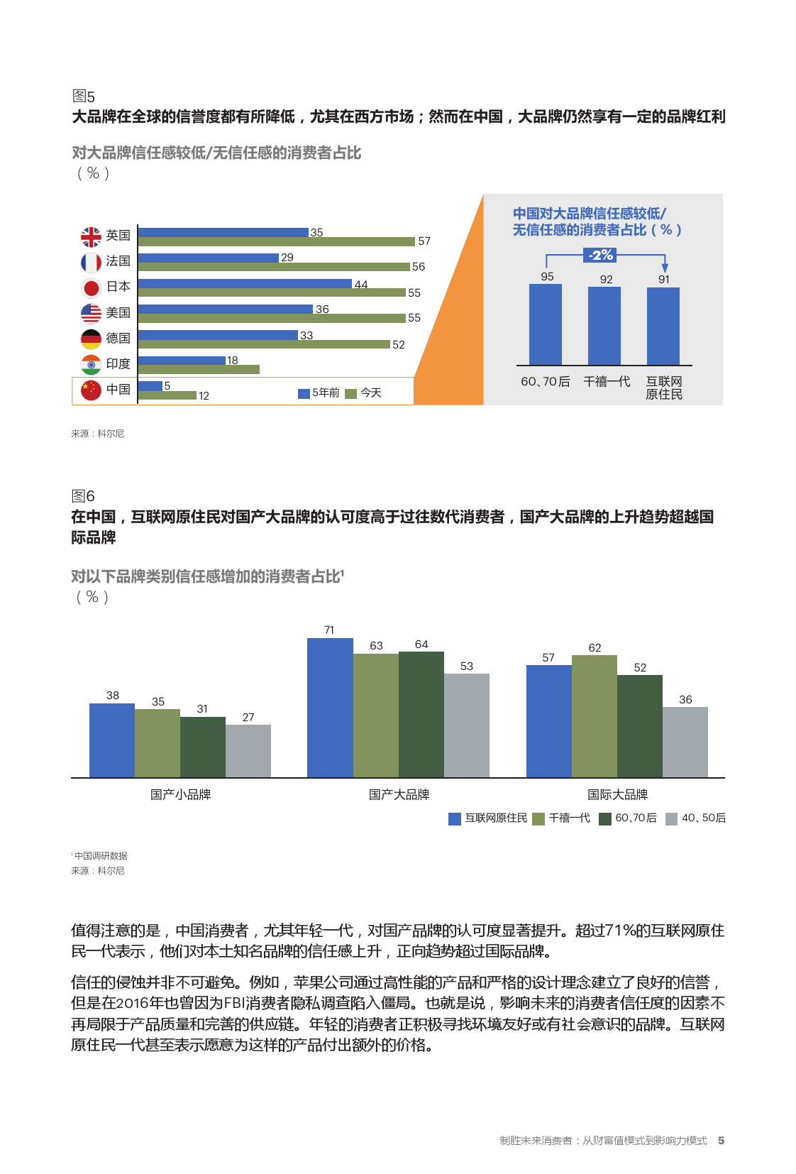 值得注意的是,中国消费者,尤其年轻一代,对国产品牌的认可度显著提升。超过71%的互联网原住民一代表示,他们对本土知名品牌的信任感上升,正向趋势超过国际品牌。
