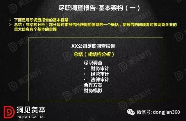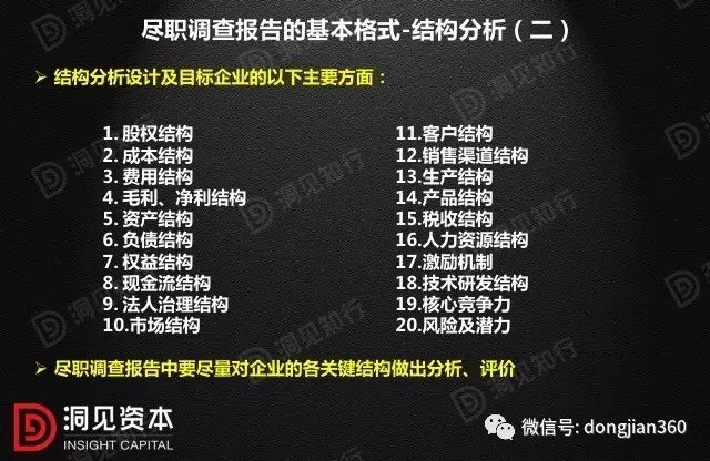 《尽职调查报告》是业务的基本功,是对前期工作的总结,是最终决策依据。至少应报告以下10个方面的主要内容。