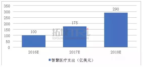 TrendForce旗下拓墣产业研究所测算2016-2018年全球智慧医疗服务支出年复合增长率约60%,至2018年全球智慧医疗服务支出,如远端监测、诊断设备、生活辅助、生理数据监测等,有望达290亿美元。